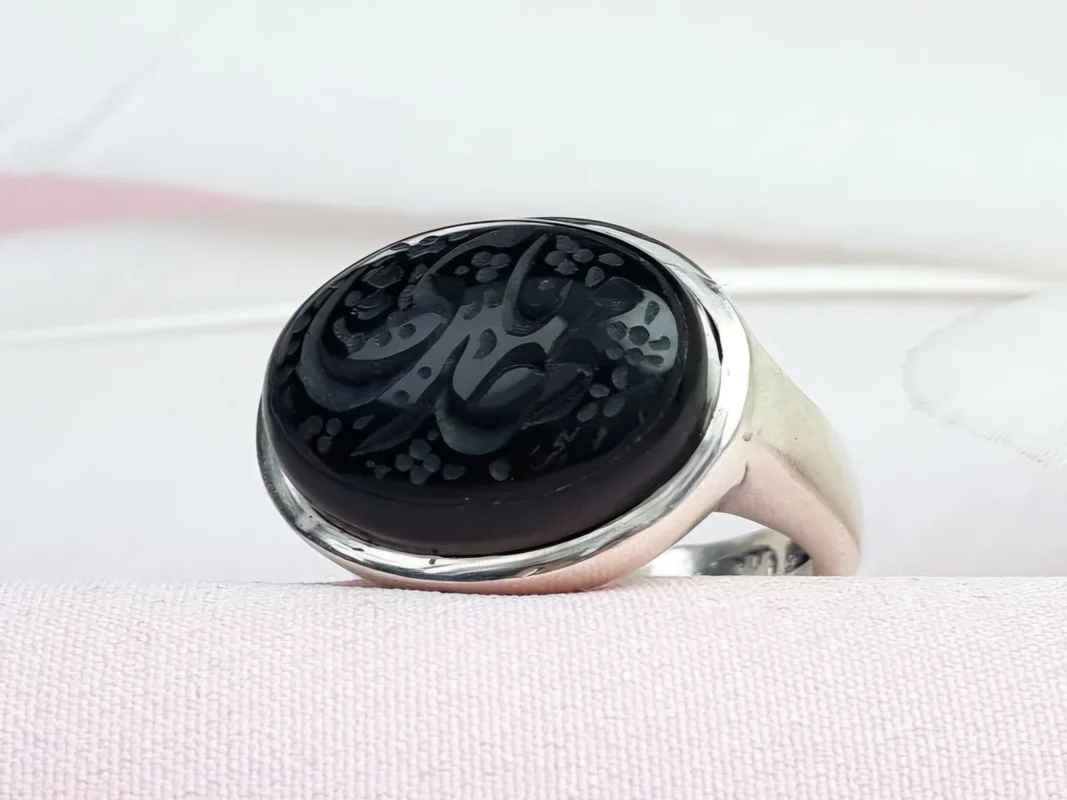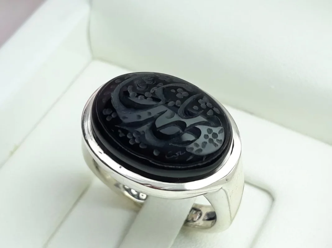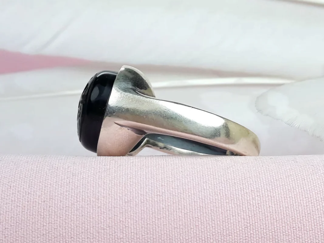 • نگین: عقیق مشکی خطی