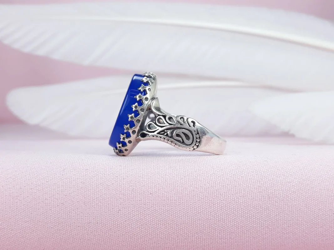 • نگین: عقیق آبی خطی