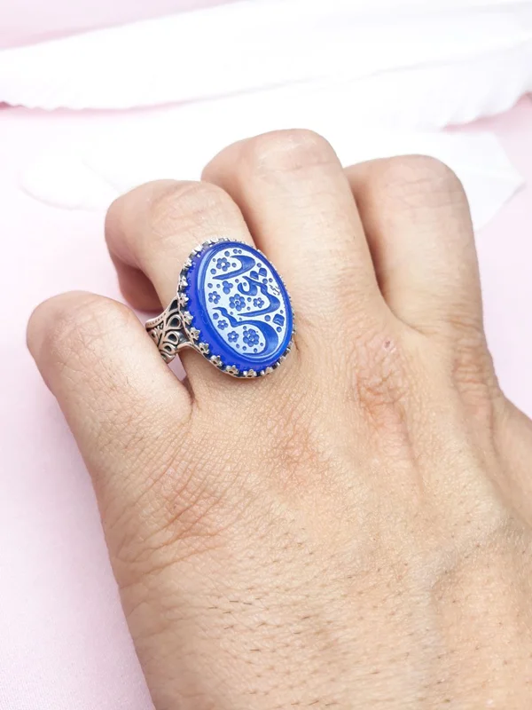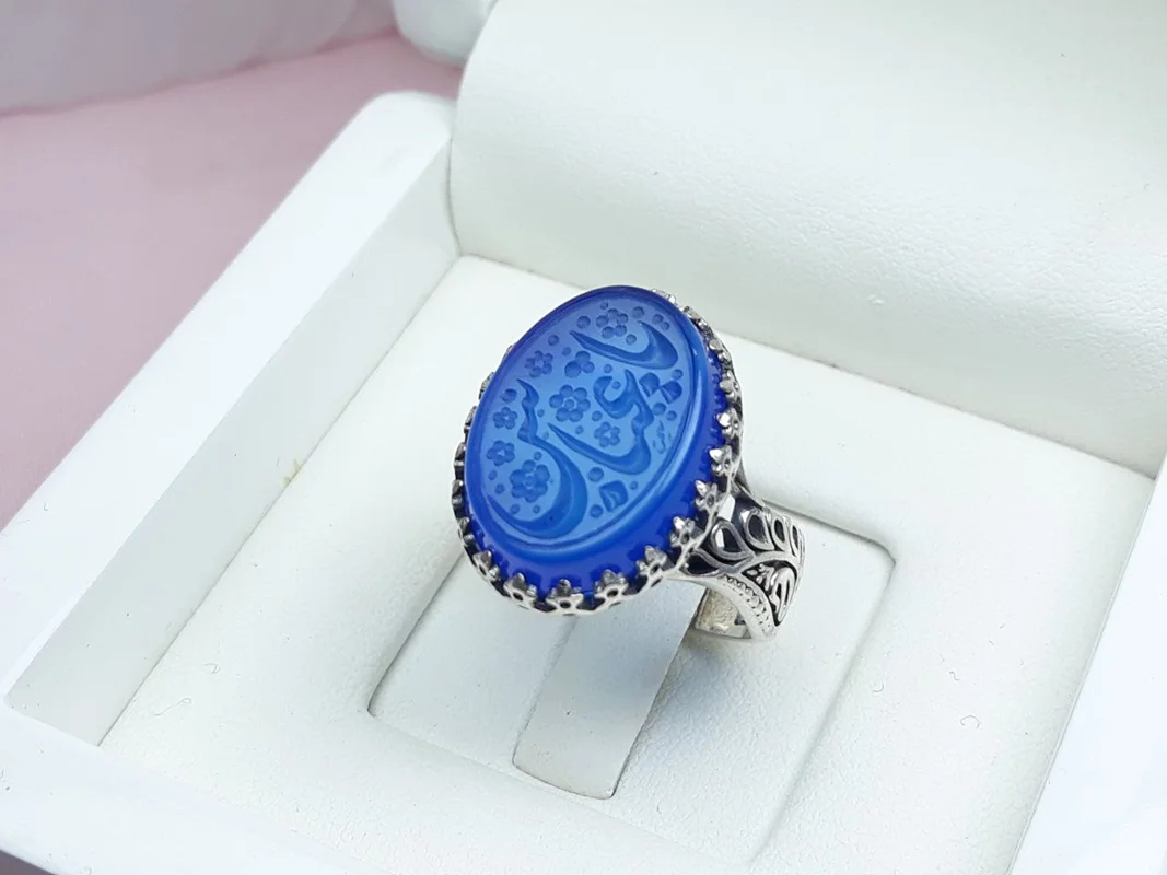 انگشتر نقره عقیق آبی خطی خط یا عباس