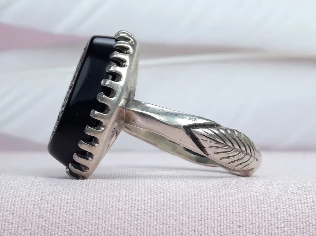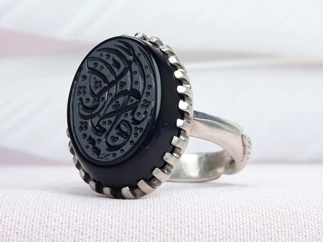 • نگین: عقیق مشکی خطی
