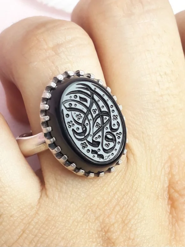 انگشتر نقره عقیق مشکی خطی خط یا فاطمه الزهرا