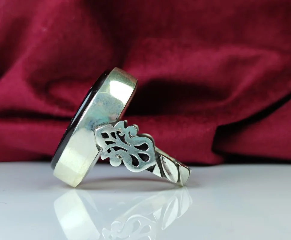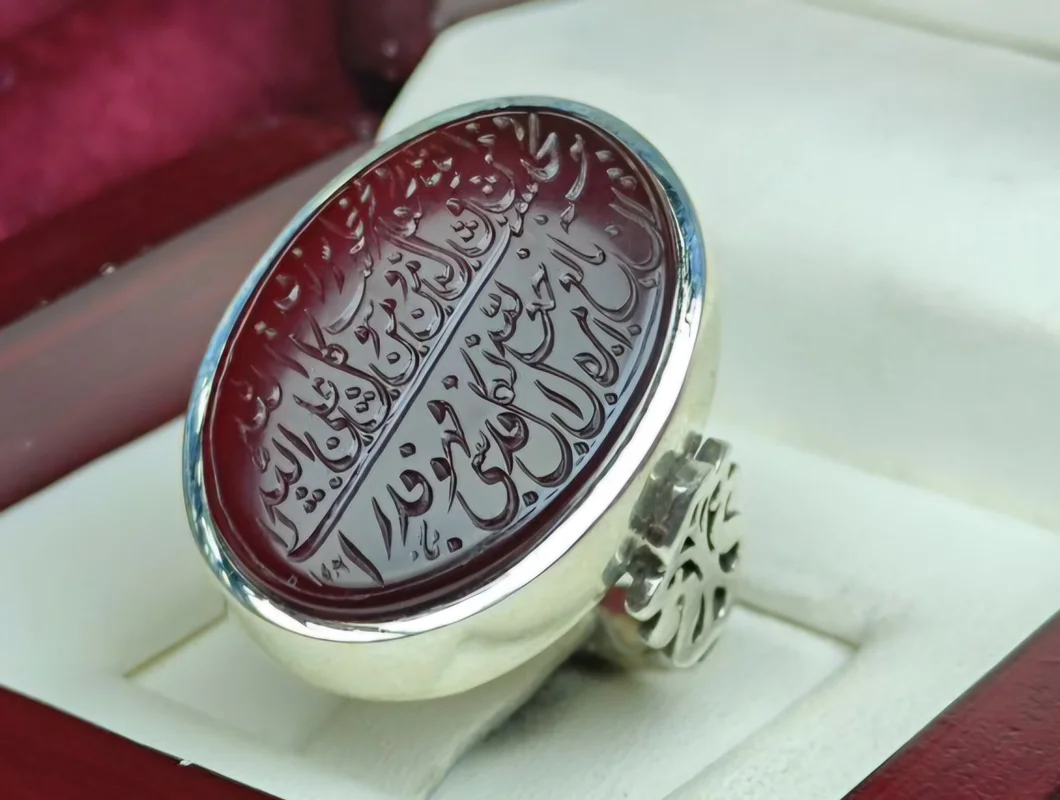 انگشتر نقره عقیق قرمز خراسانی حکاکی و من یتق ا...دعای رزق و روزی رکاب دست ساز پشت بسته