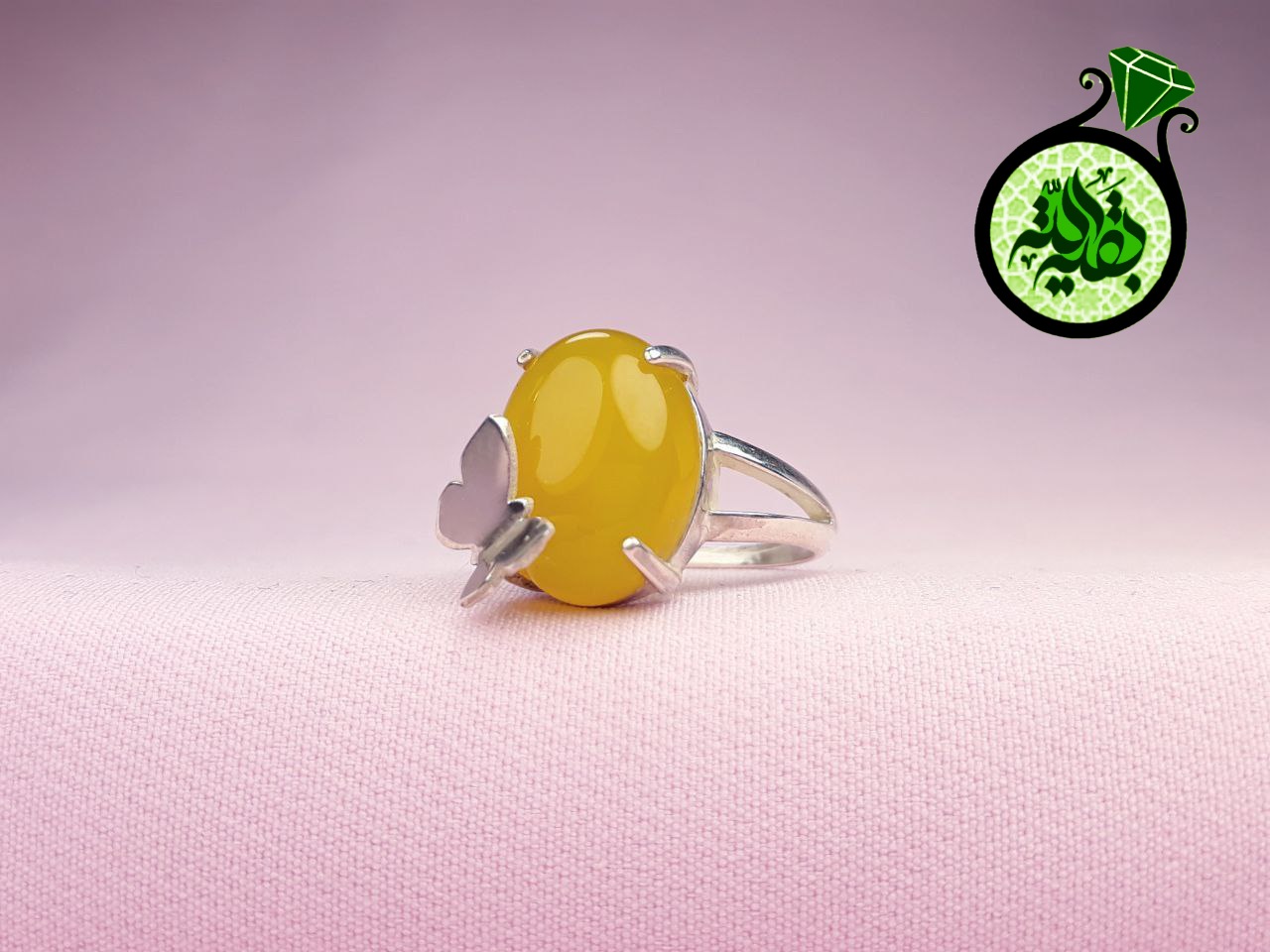 انگشترنقره عقیق زرد شرف الشمس اصل زنانه (دعای شرف الشمس) طرح پروانه ای بازو دو شاخه