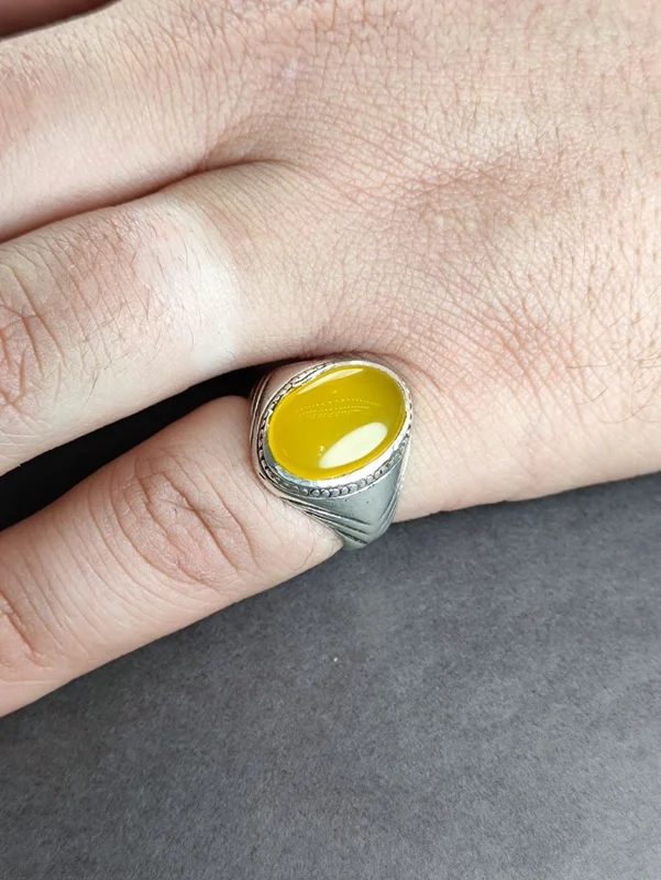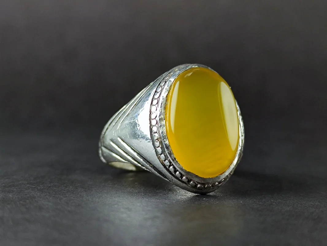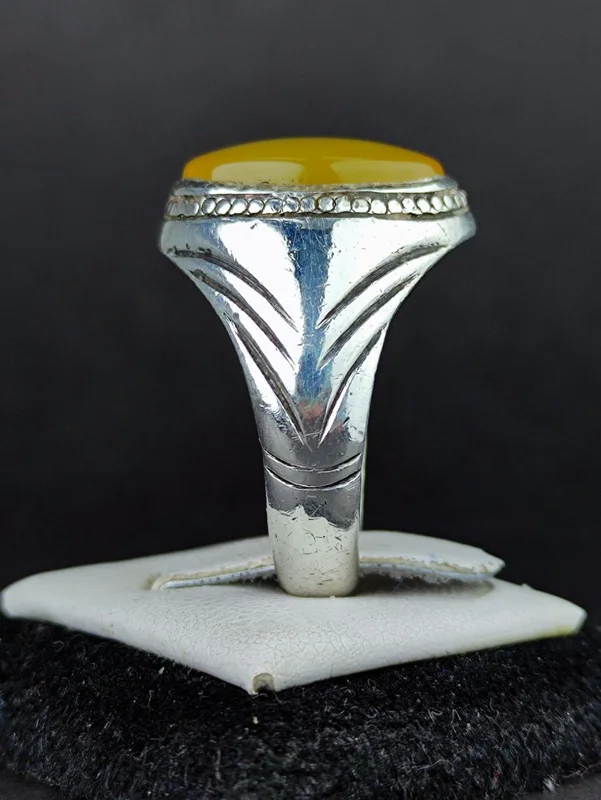با انگشتر نقره عقیق زرد شرف الشمس، به دنیای زیبایی و انرژی وارد شوید! این رکاب فیلی دستساز، جلوهای از هنر و ظرافت را به دستان شما هدیه میدهد. سنگ عقیق زرد، نمادی از انرژی و شادابی، همراه همیشگی شماست. این انگشتر فوقالعاده را به مجموعه جواهرات خود اضافه کنید و تغییر شگفتانگیزی را احساس کنید!