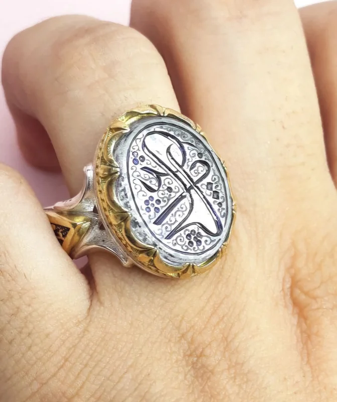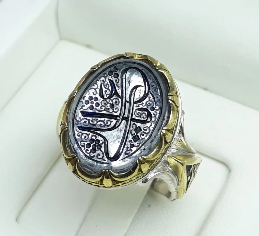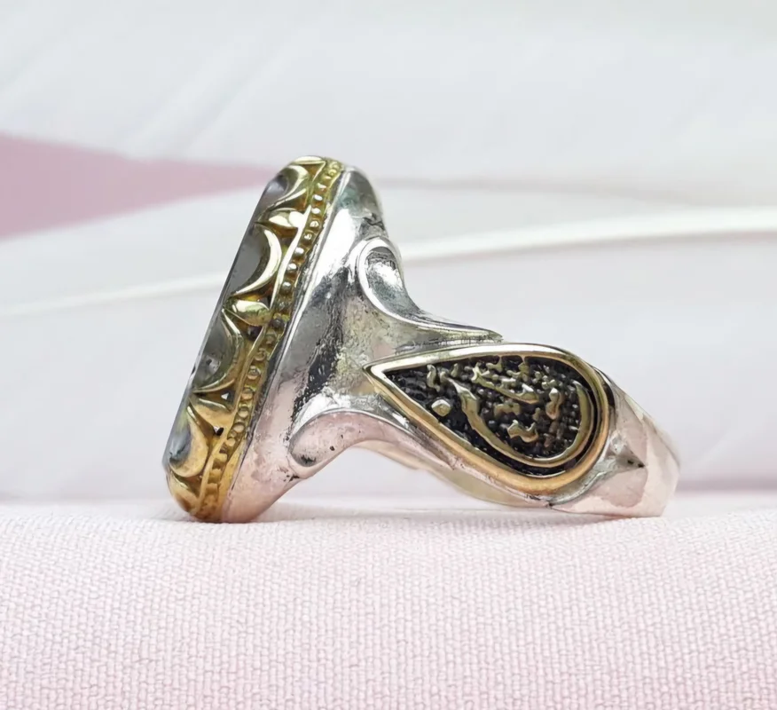 انگشتر نقره درنجف اصل خطی حکاکی یا علی رکاب تاج برنجی
