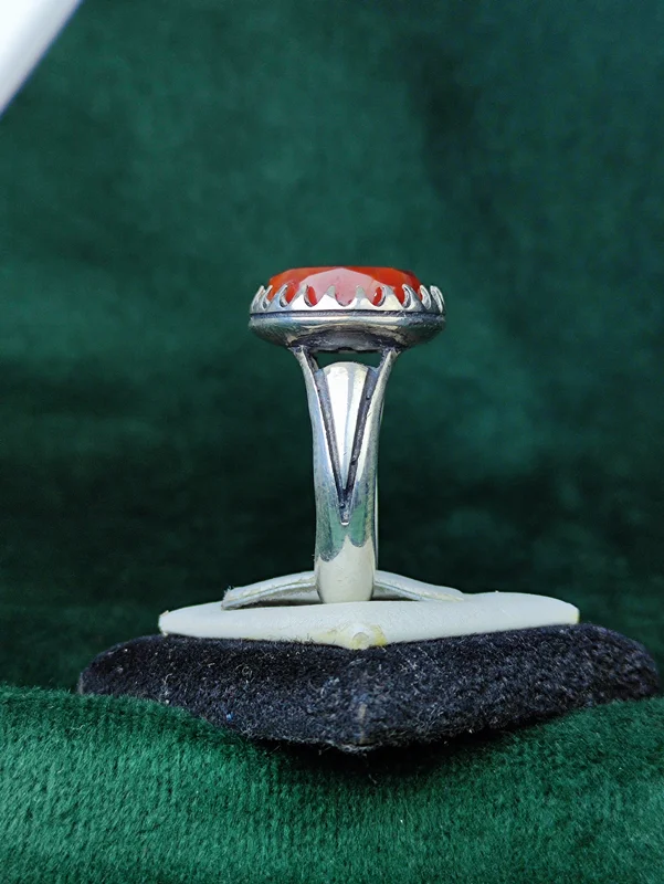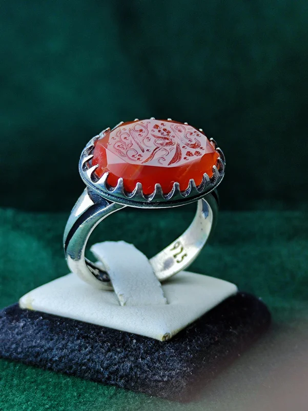 با انگشتر نقره عقیق سرخ یمنی اصل، جواهری بینظیر و منحصربهفرد را تجربه کنید. این انگشتر با الماس تراش و حکاکی زیبای "یا زهرا(س)"، جلوهای متمایز و معنوی به دستان شما میبخشد. با خرید این انگشتر، شکوه و اصالت را به استایل خود اضافه کنید و همواره در جمع بدرخشید!