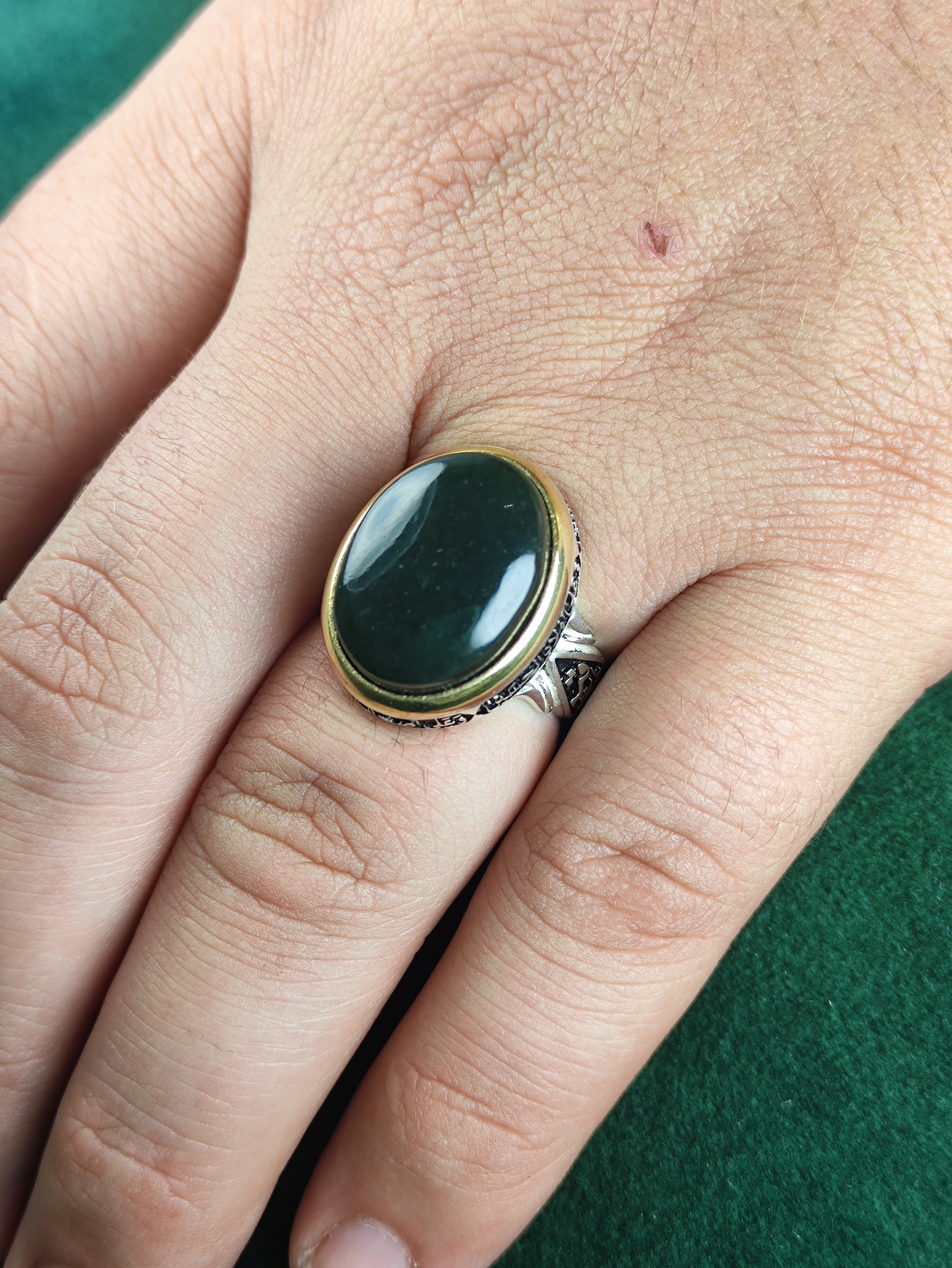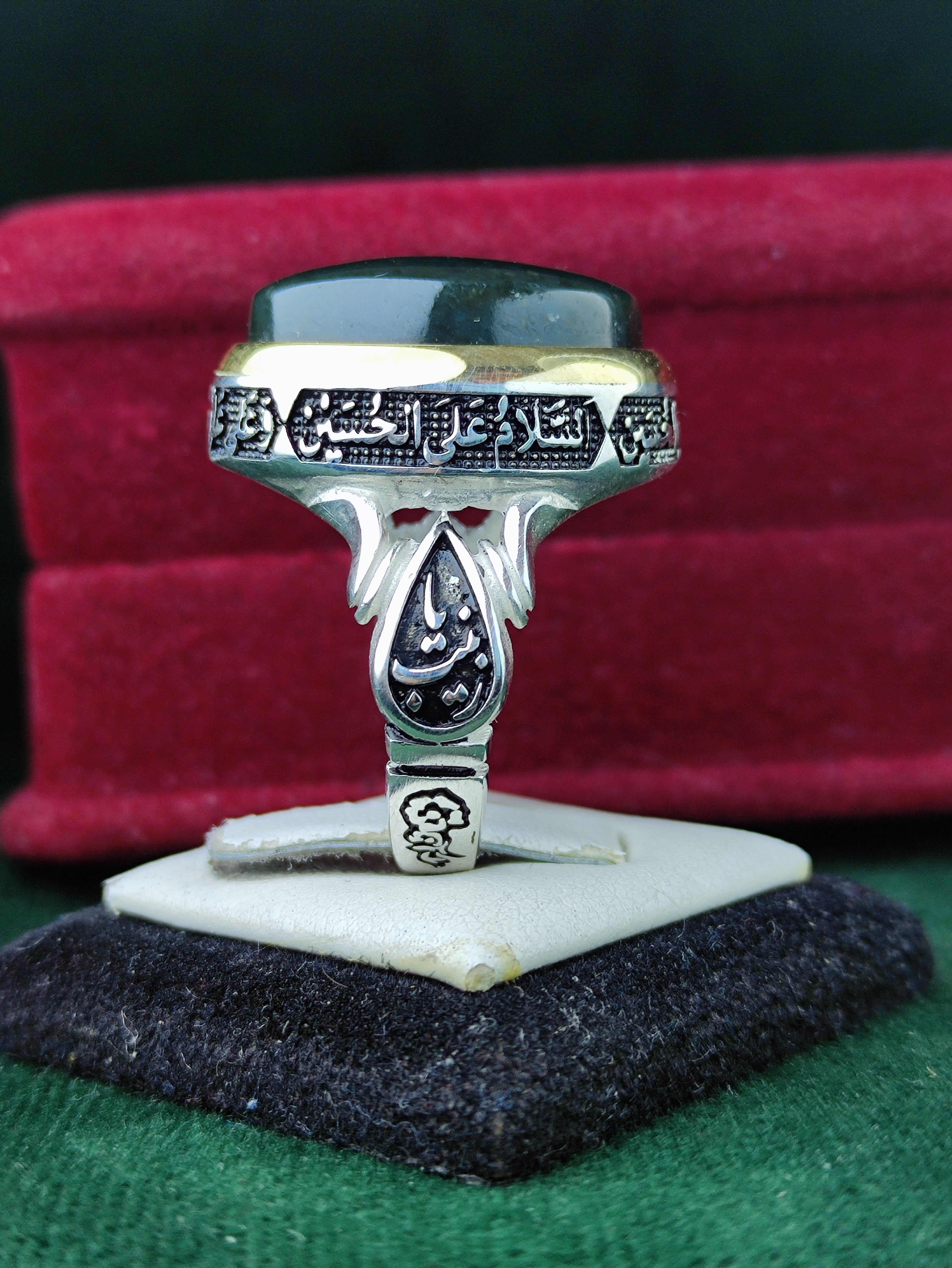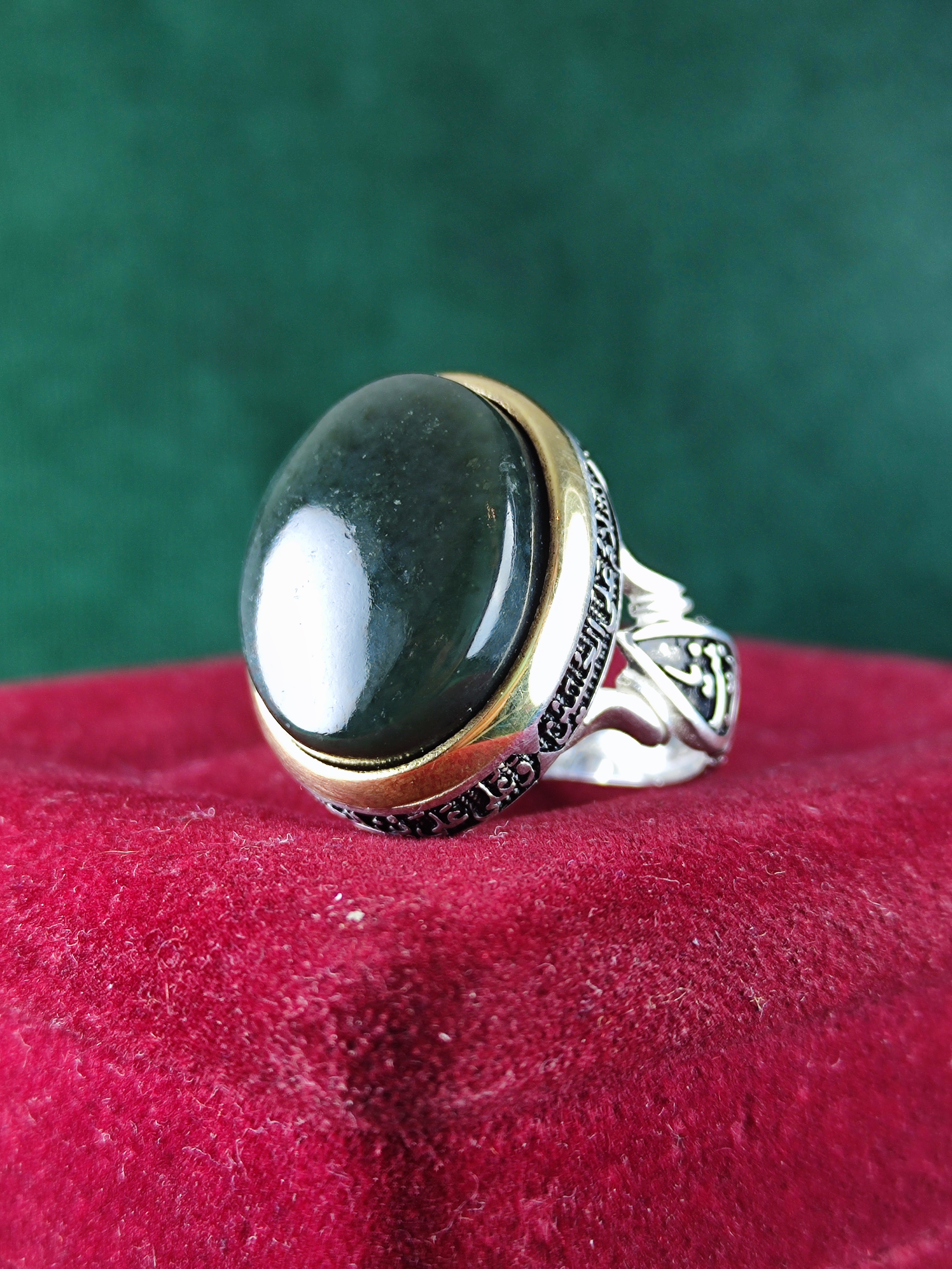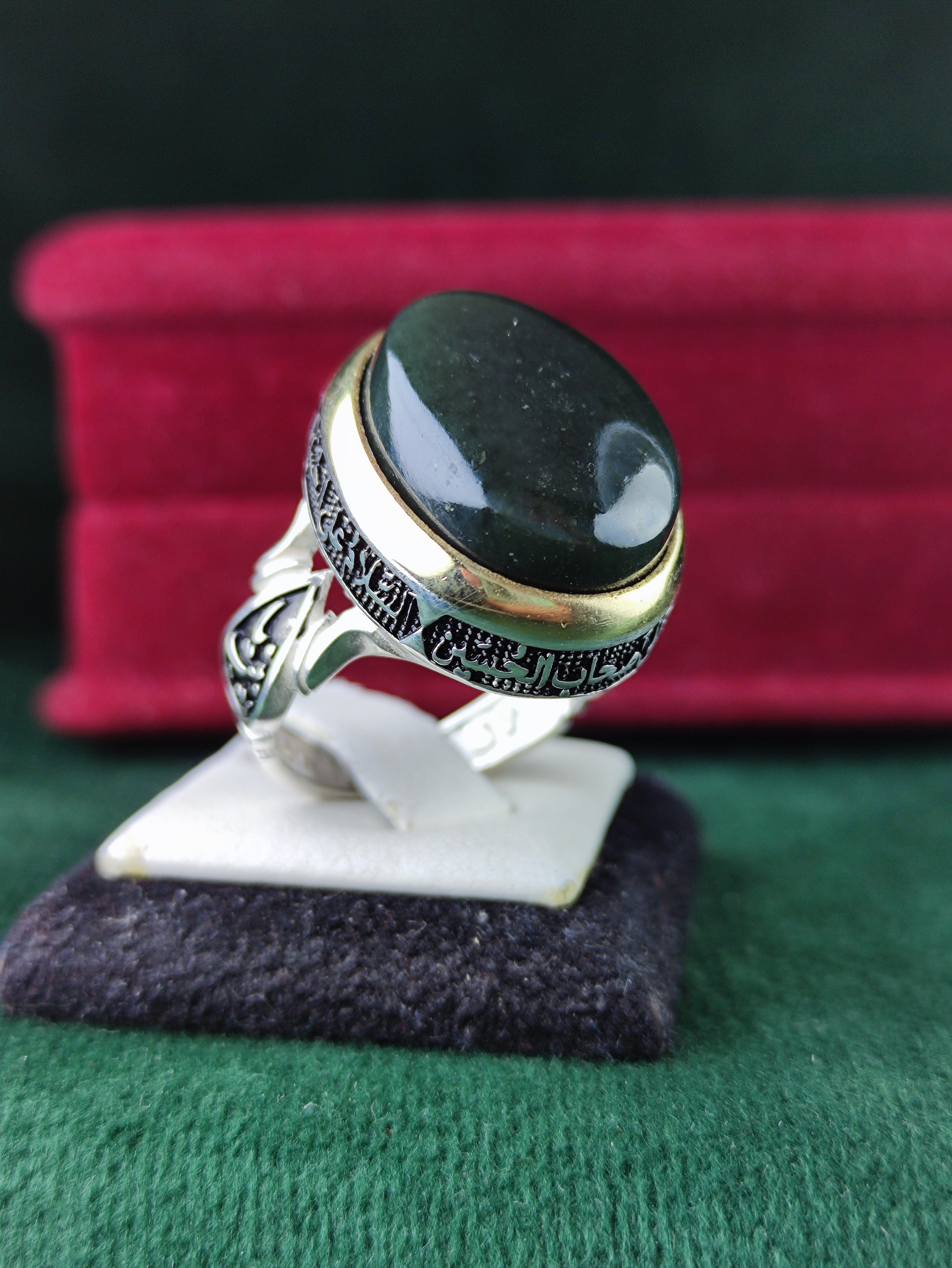با انگشتر نقره یشم یمنی اصل، زیبایی و اصالت را به دستان خود بیافزایید. این انگشتر با رکاب صفوی و طرح قلم زنی حرفهای، نمادی از هنر دست و ذوق ایرانی است. با خرید این جواهر بینظیر، نه تنها به استایل خود جلوهای خاص میبخشید، بلکه در جمعها بدرخشید و متمایز شوید. اکنون سفارش دهید و خاص باشید!