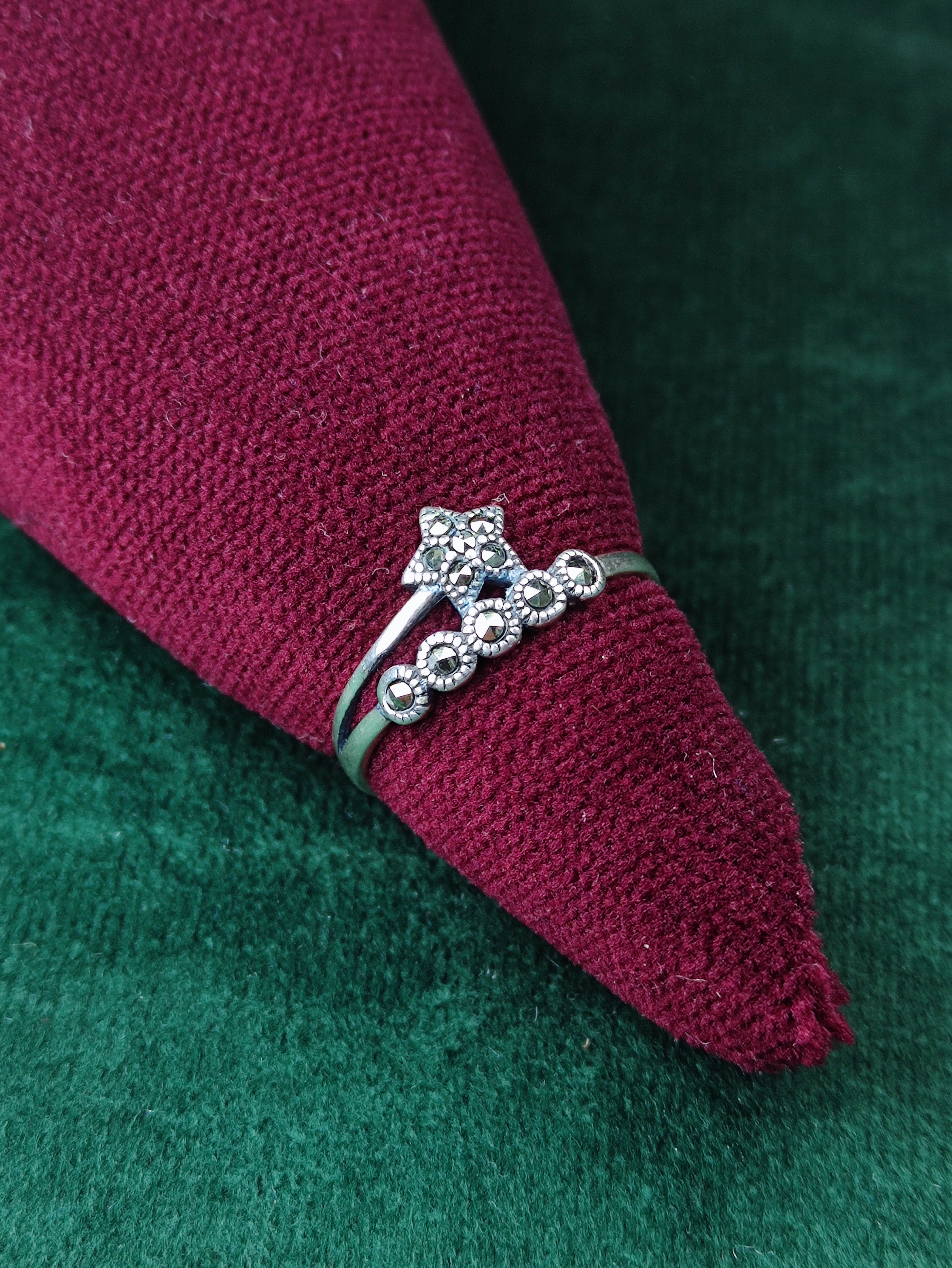 با انگشتر نقره طرح مارکازیت طرح ستاره زنانه، به درخشش خود بیفزایید! این انگشتر زیبا با طراحی منحصر به فرد و درخشش خاص مارکازیت، کاملکننده استایل شیک شماست. جذابیت و سادگی در قالب یک محصول، مناسب برای هر مناسبت و سلیقه. همین حالا این جواهر خاص را به مجموعه خود اضافه کنید!