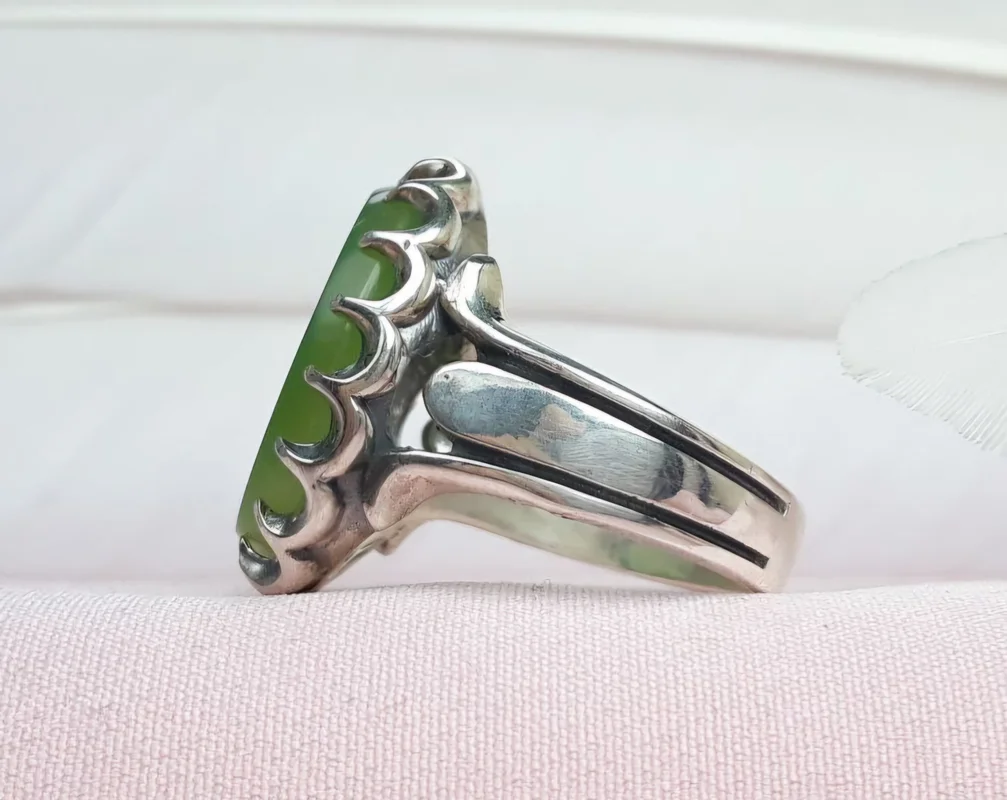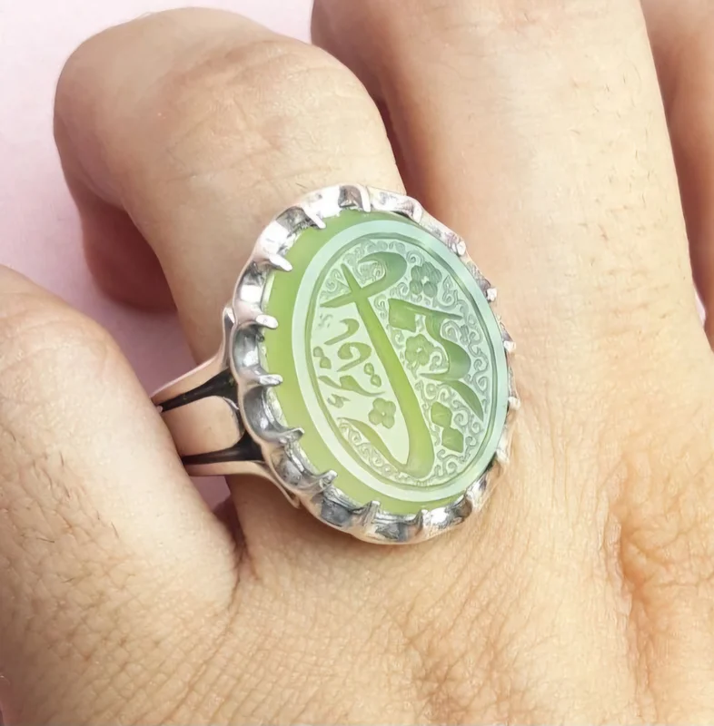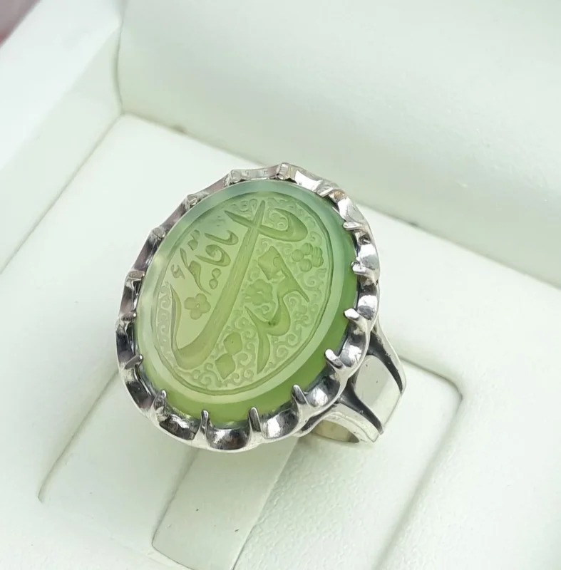 انگشتر نقره عقیق سبز خطی حکاکی یا قائم یا مهدی