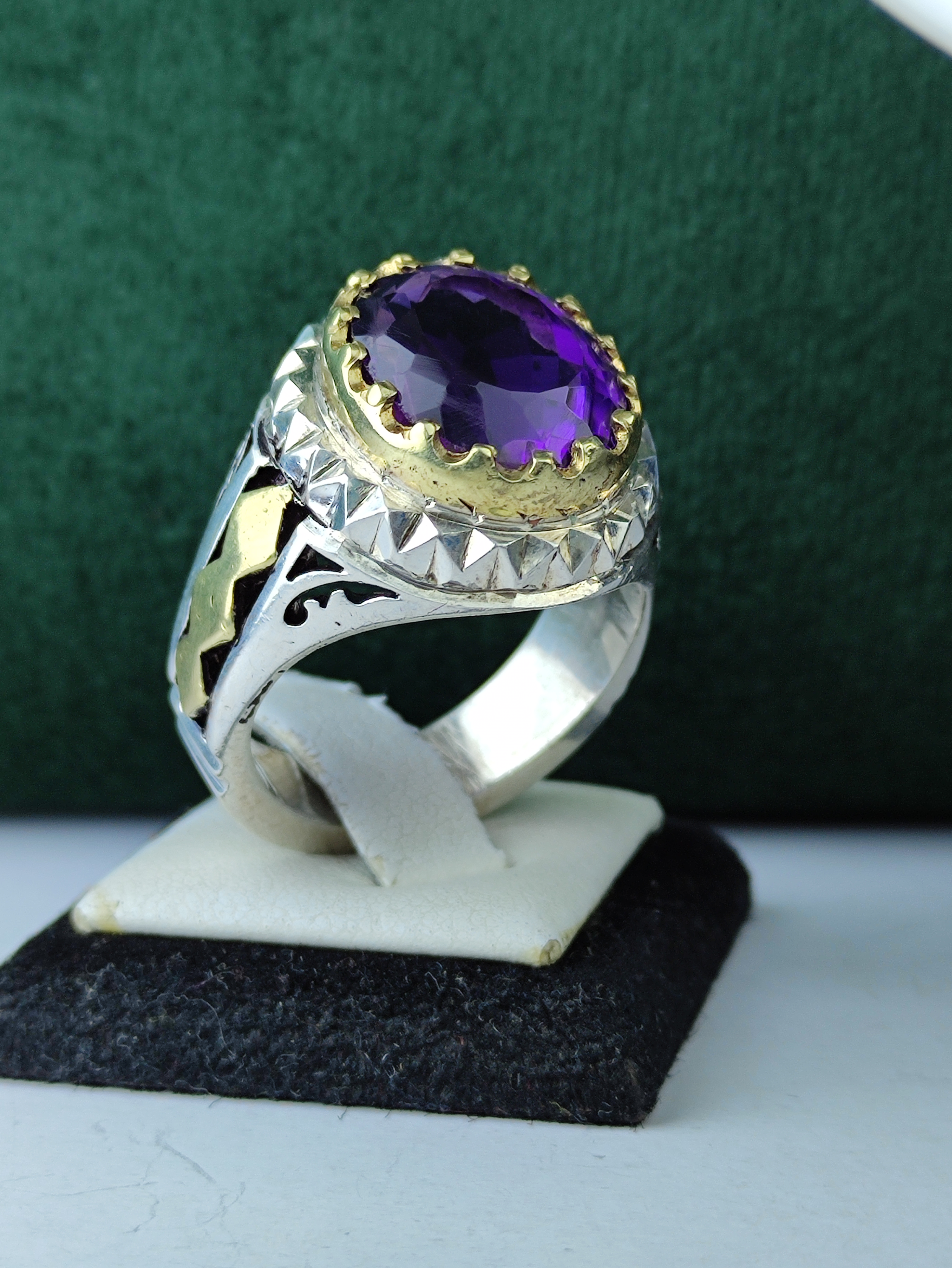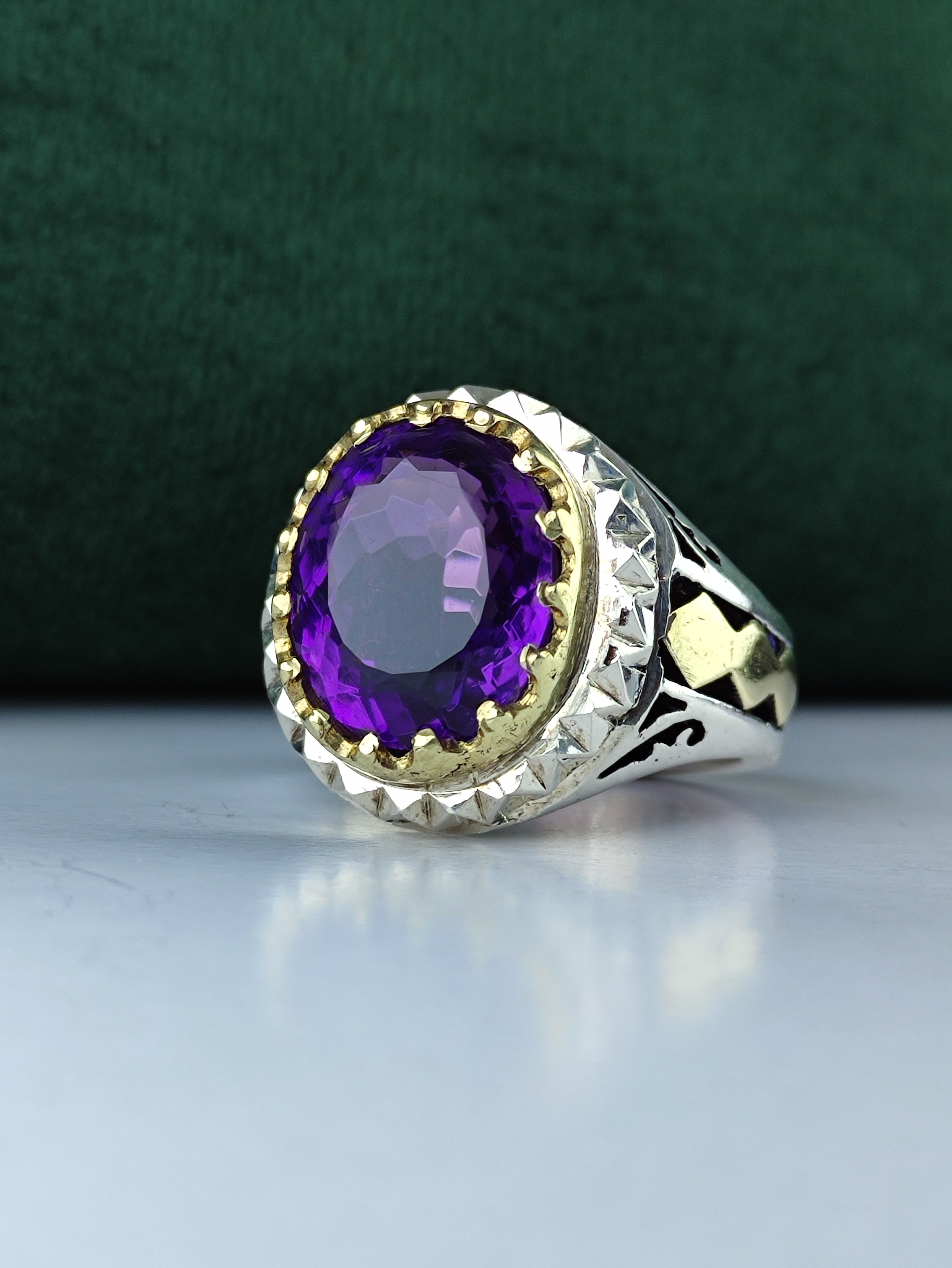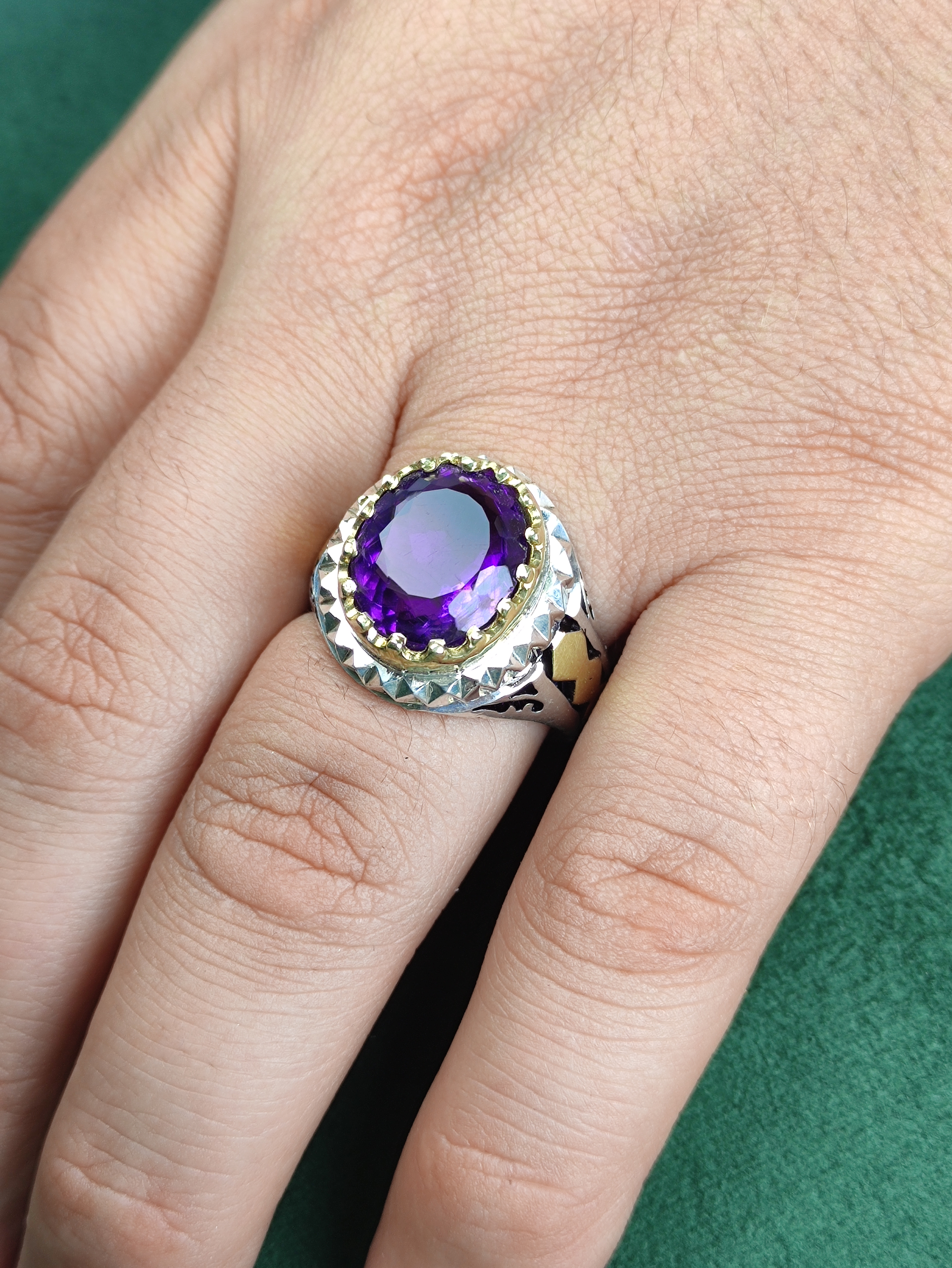 درخشش و زیبایی را با انگشتر نقره آماتیس اصل تجربه کنید! این انگشتر با رکاب فیلی چنگی، ترکیبی از هنر دستساز و دقت ماشین است که به هر استایلی جلوهای خاص میبخشد. سنگ آماتیس طبیعی، انرژی مثبت و آرامش را به همراه دارد. همین حالا به استایل خود عمق و جذابیت ببخشید!