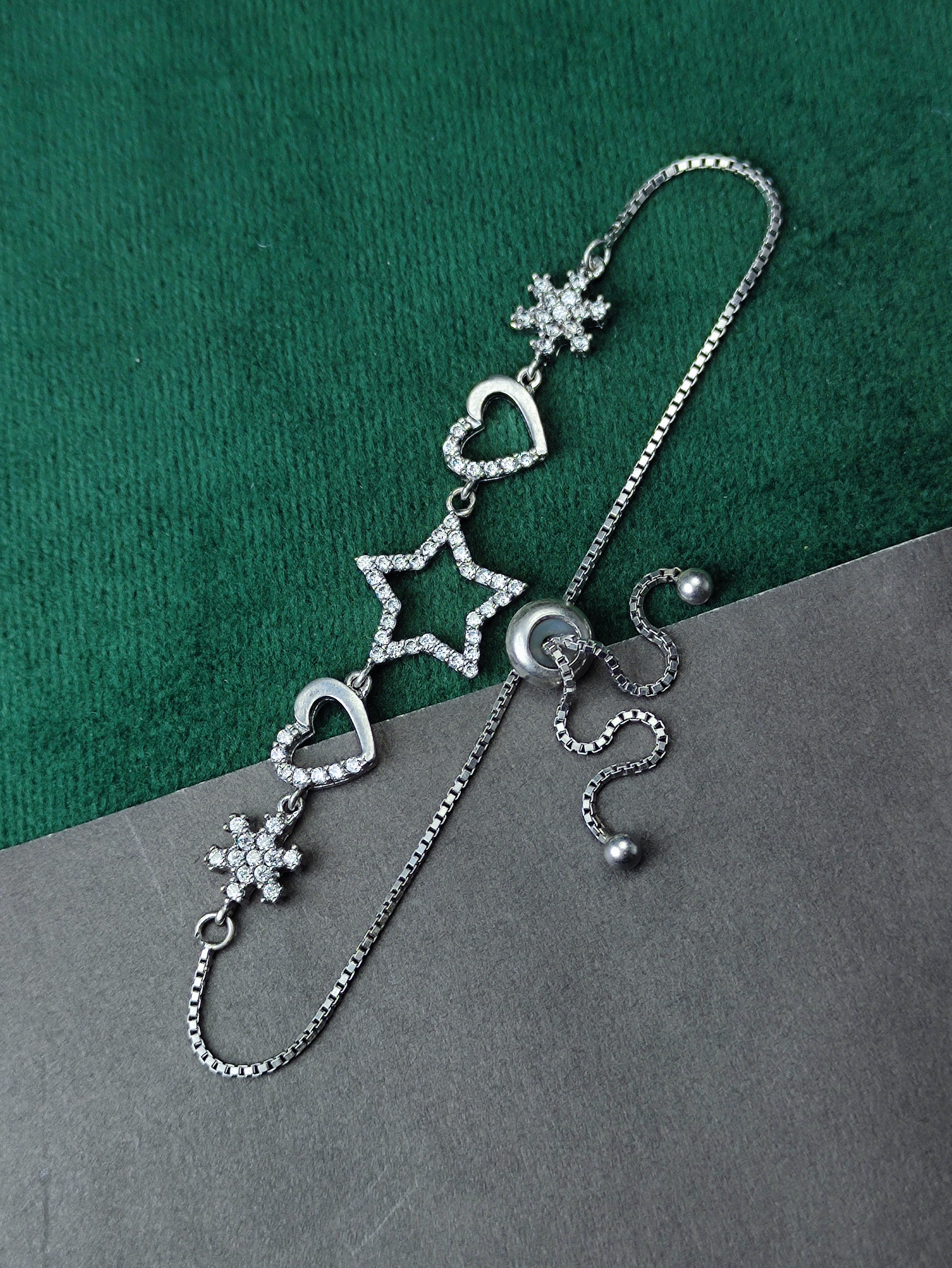با دستبند آسانسوری جواهری میکرو طرح ستاره و قلب، درخششی بینظیر به استایل خود ببخشید! طراحی ظریف و چشمنواز این دستبند، با تلفیقی از ستاره و قلب، جلوهای از عشق و زیبایی را به شما هدیه میدهد. جنس باکیفیت و مکانیزم آسانسوری، تجربهای راحت و لوکس را ارائه میدهد. همین حالا جذابیت را به خود هدیه دهید!