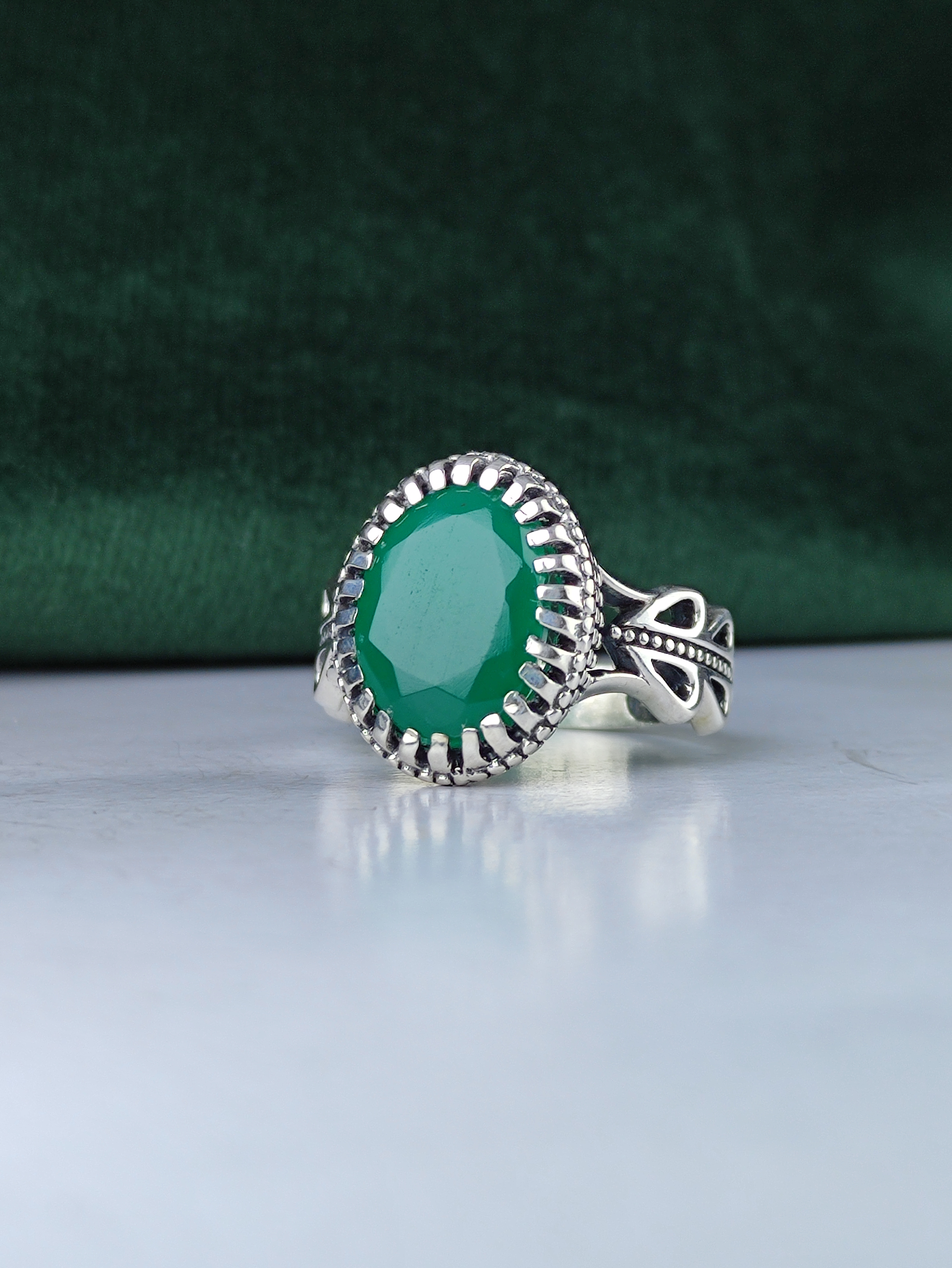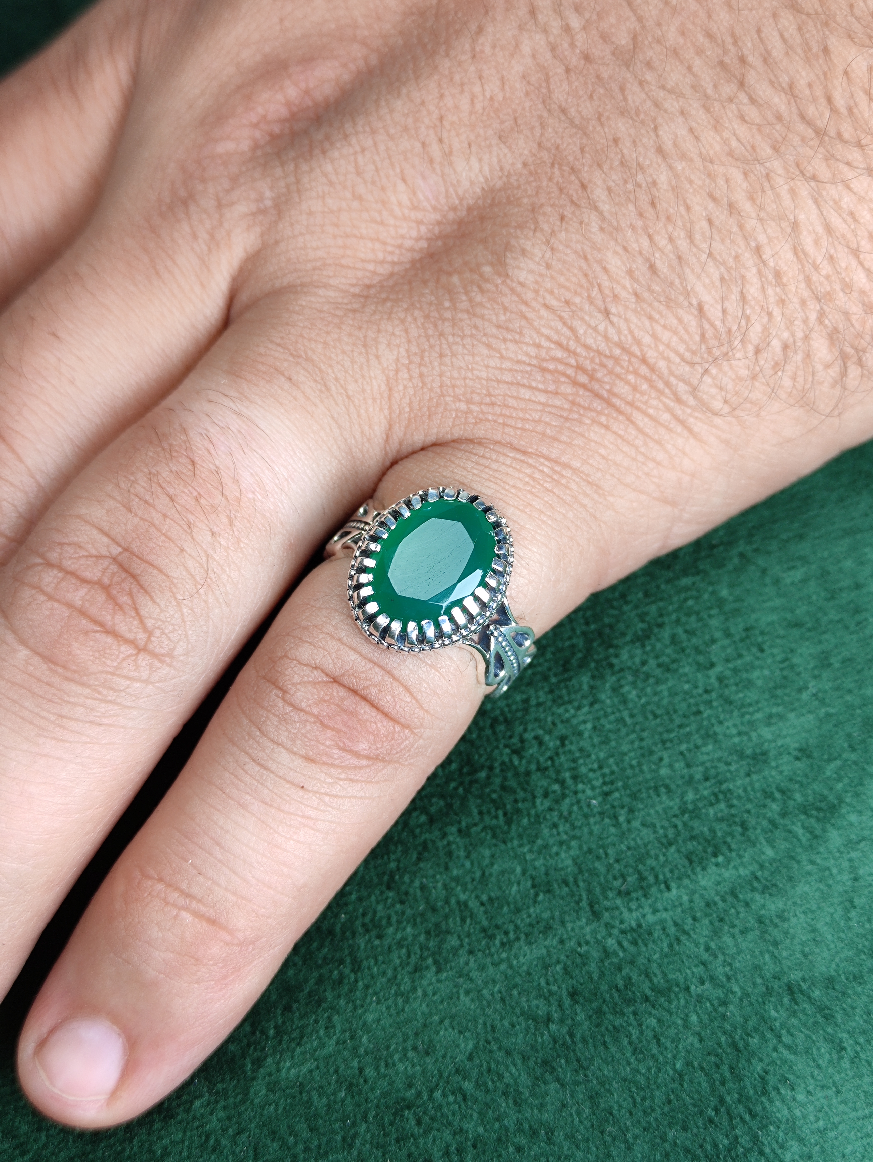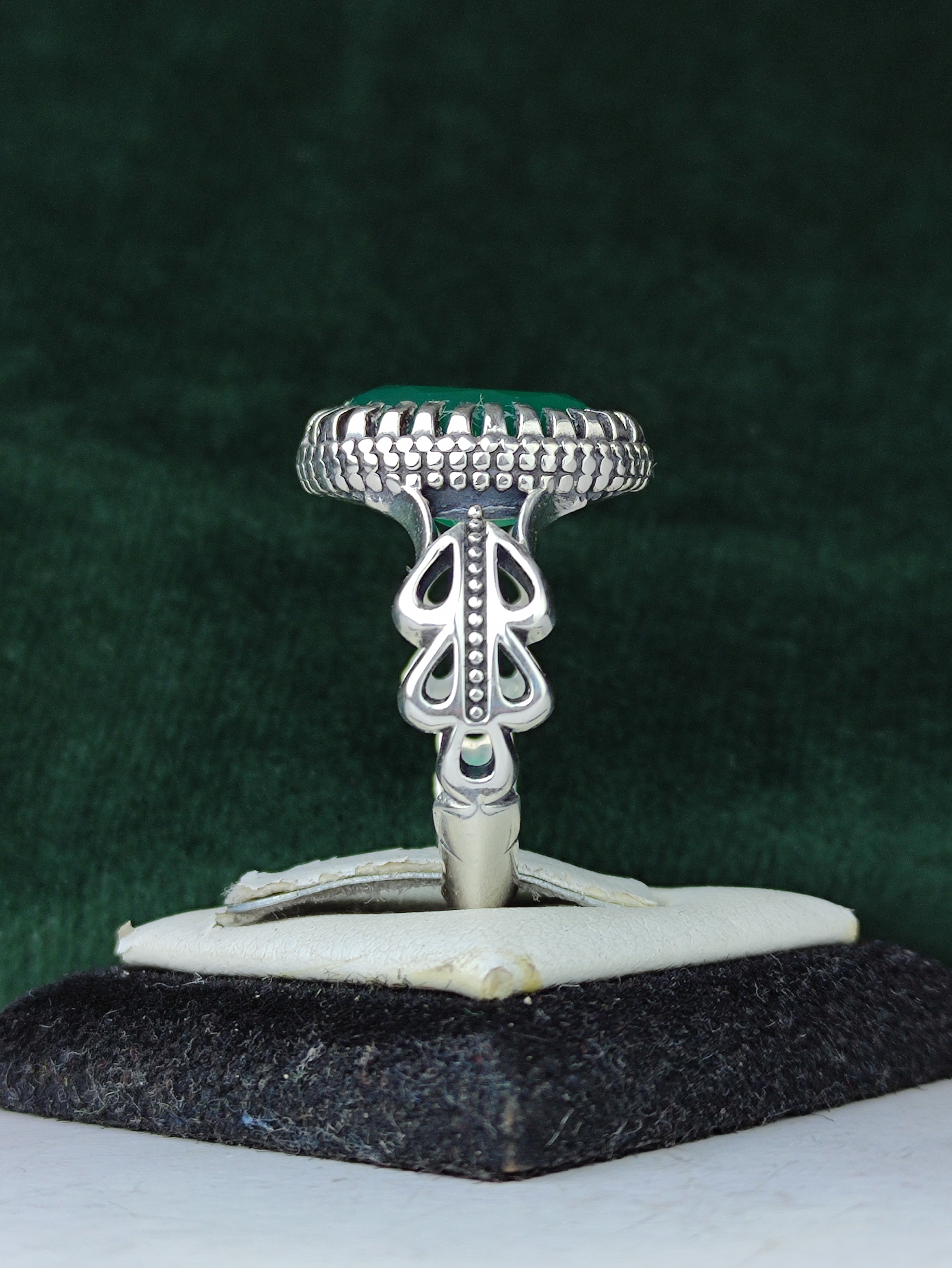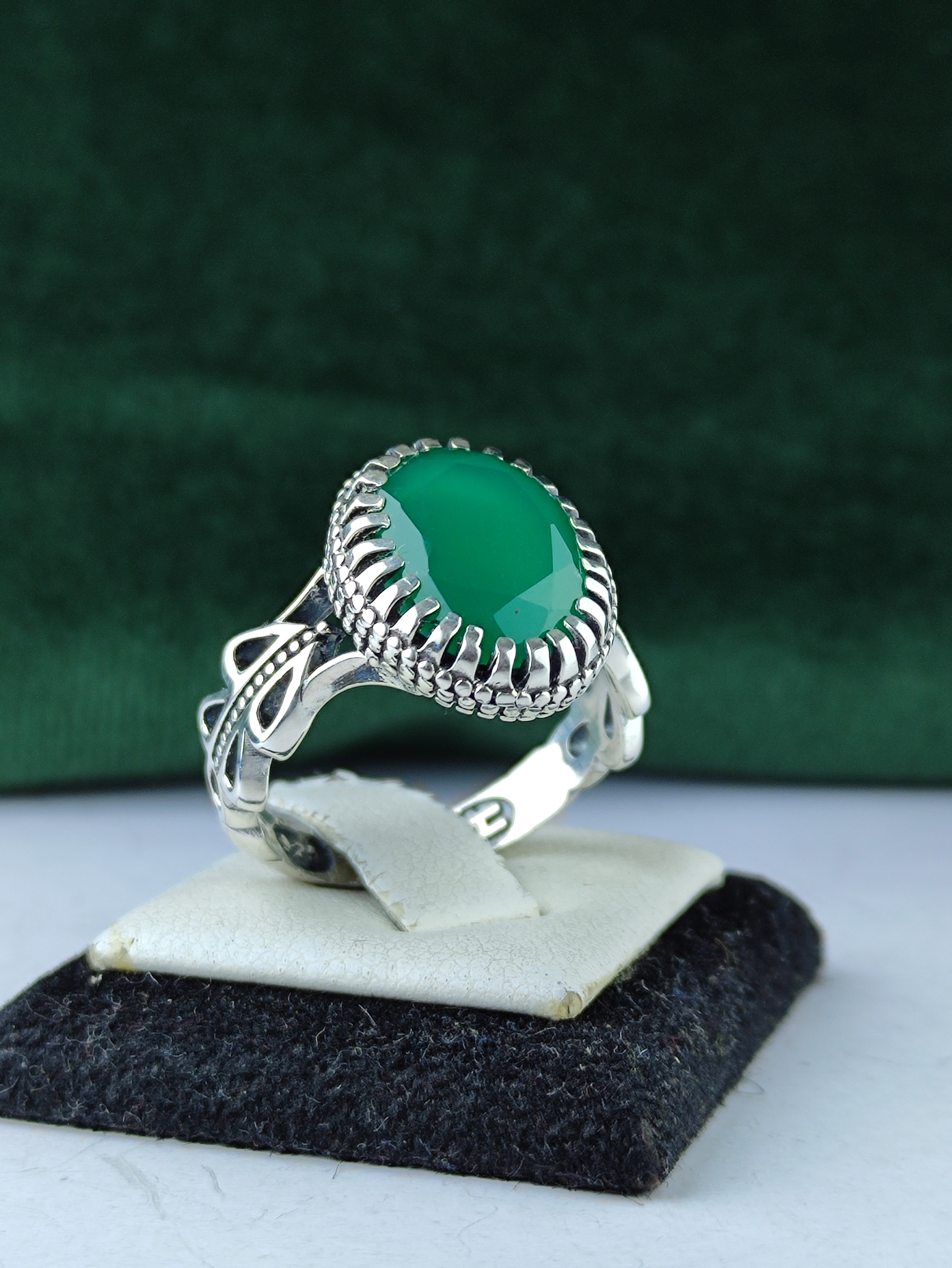 درخشش خاص انگشتر نقره عقیق سبز با الماس تراش و رکاب صفوی، جلوهای بینظیر و شیک به دستان شما میبخشد. این انگشتر با طراحی اصیل و کیفیت بالای ساخت، گزینهای ایدهآل برای کسانی است که به دنبال زیبایی و خاص بودن هستند. تلفیق هنر و زیبایی را با این جواهرات تجربه کنید.