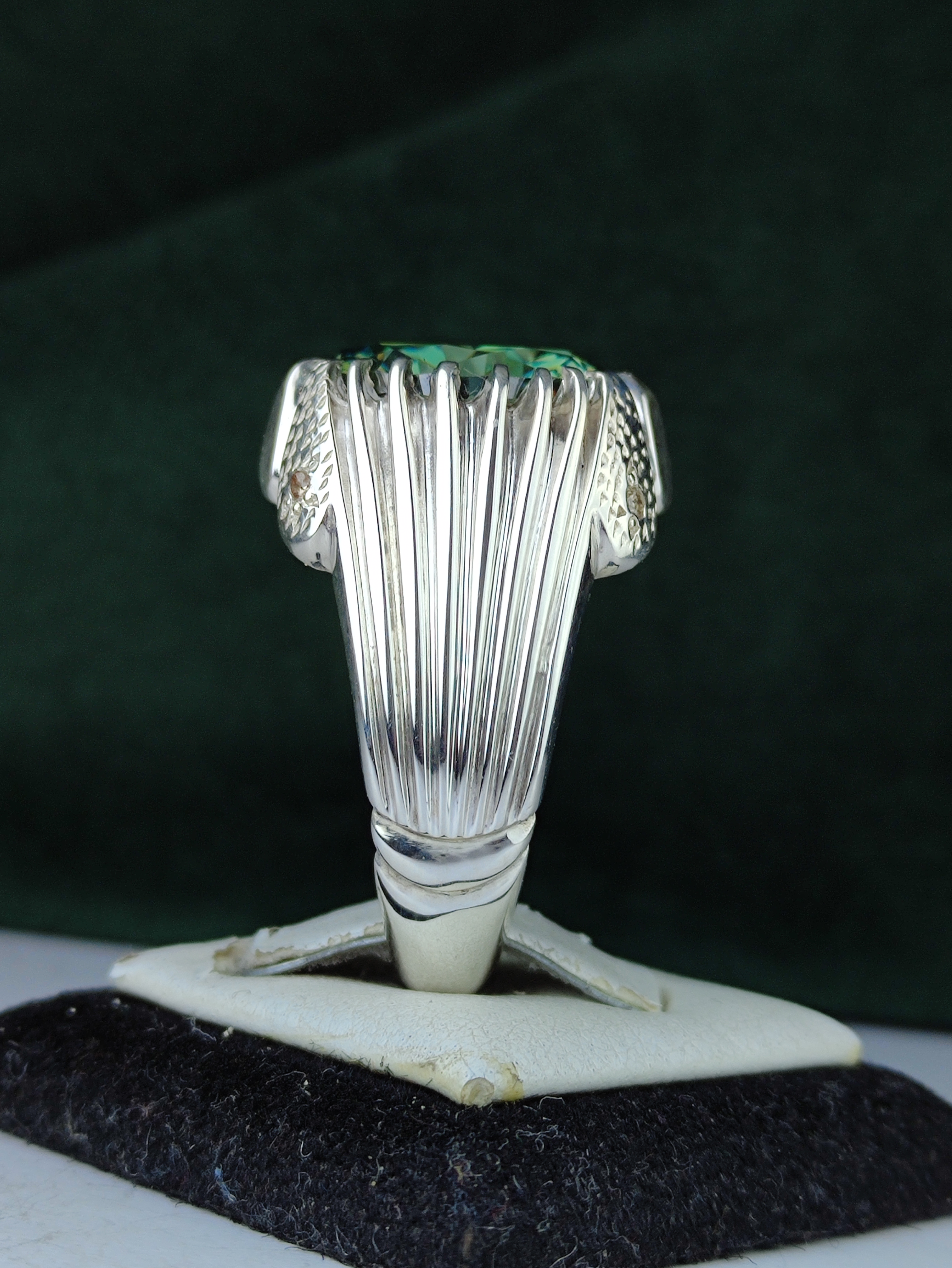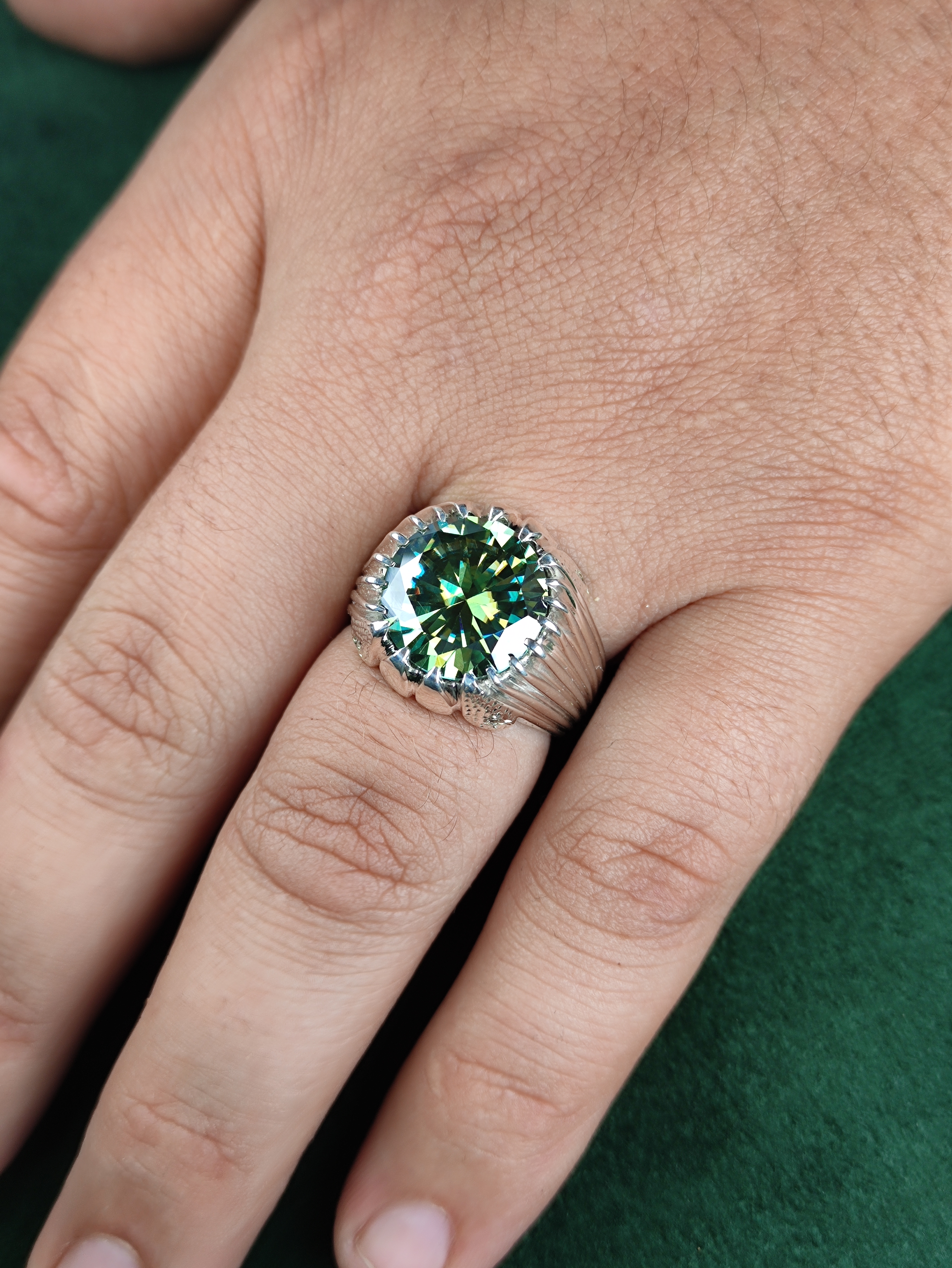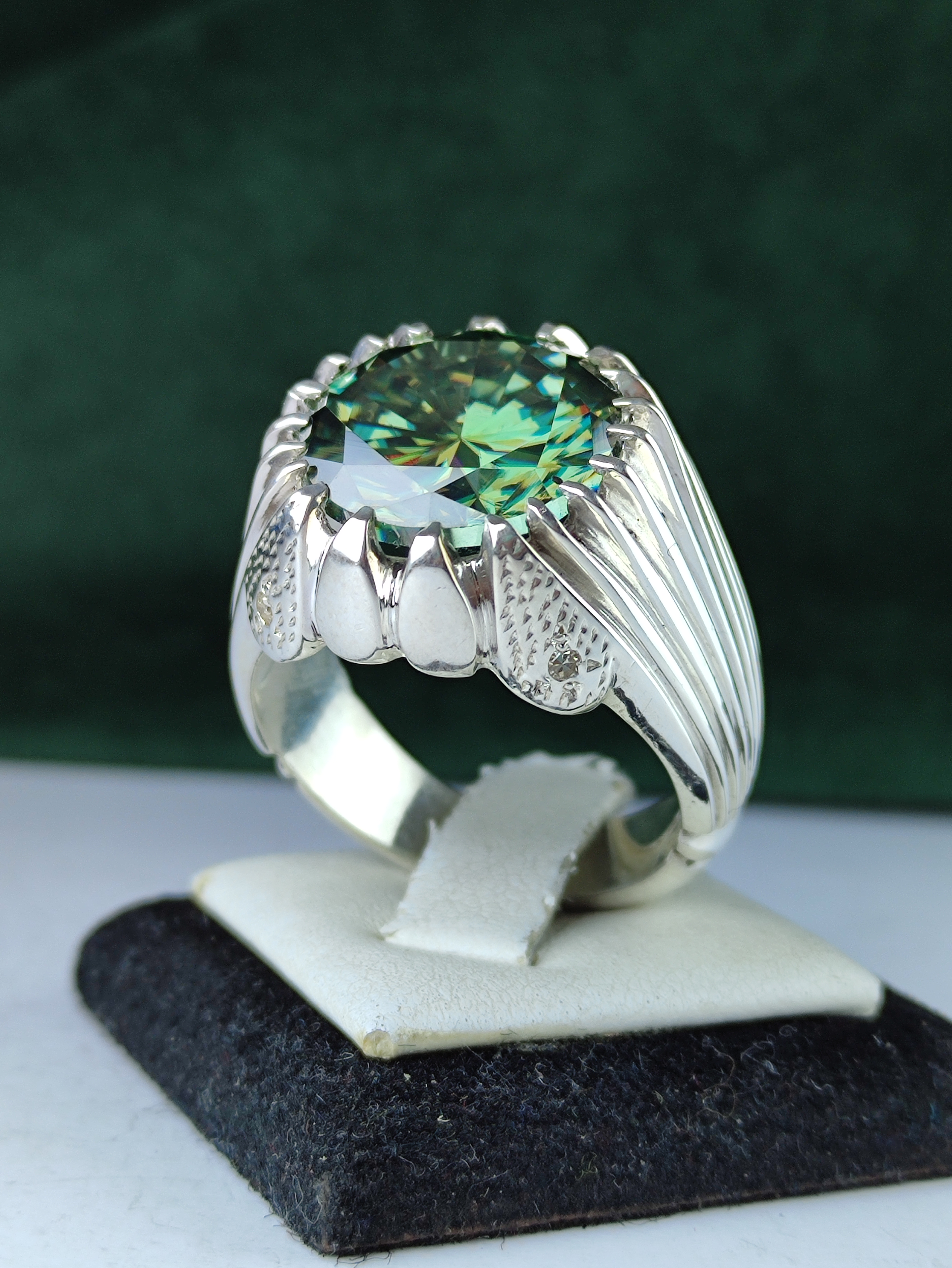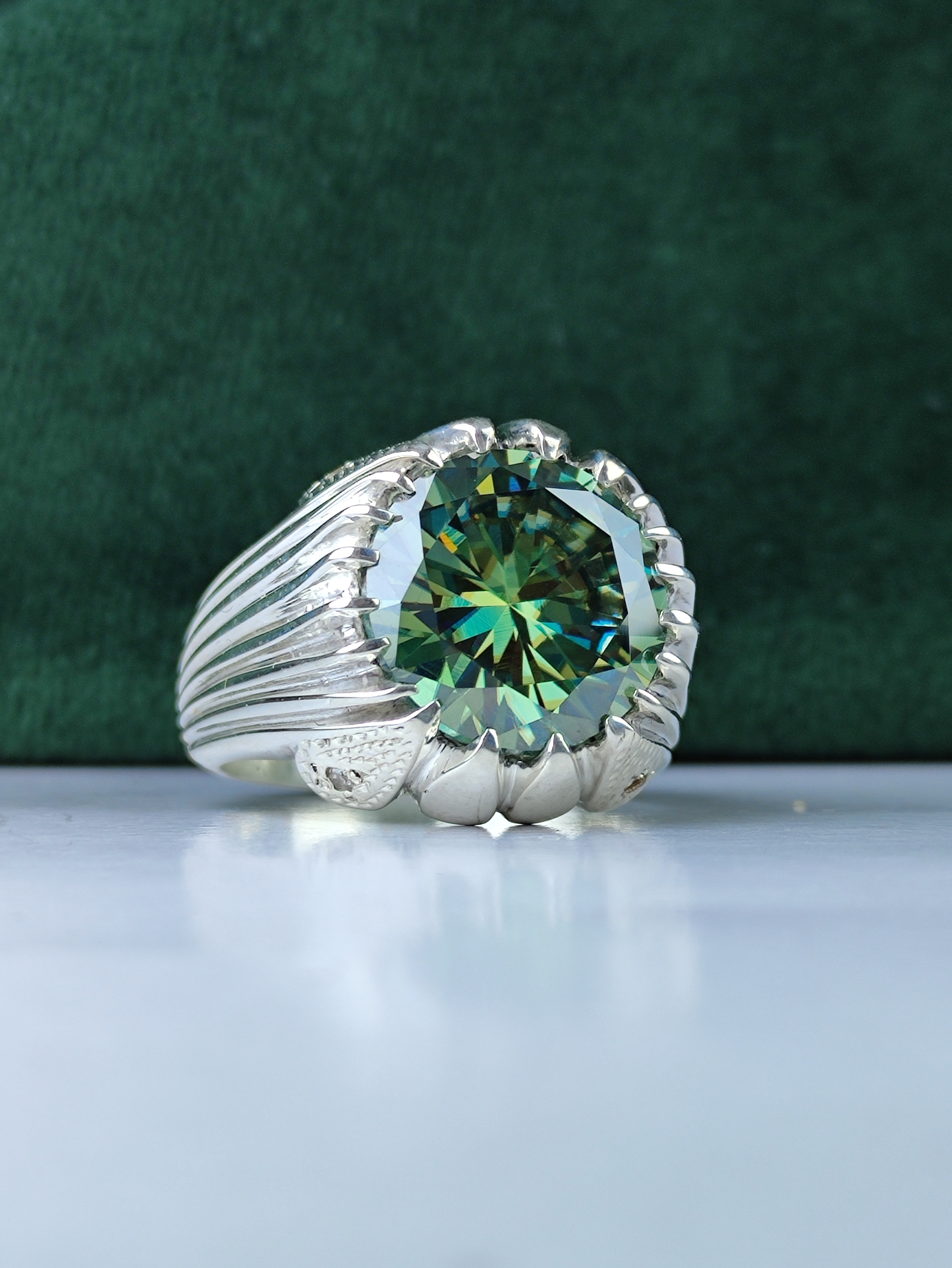 با این انگشتر نقره موزانایت سبز، درخشش و شکوه را به دستان خود بیاورید! سنگ موزانایت سبز اصلی با مخراج برلیان اصل، جذابیت و اصالت را تضمین میکند. رکاب فیلی چنگی دست ساز به دقت و هنر ایرانی اشاره دارد. این انتخاب بینظیر، شما را در مرکز توجه قرار میدهد. همین حالا خرید کنید و بدرخشید!