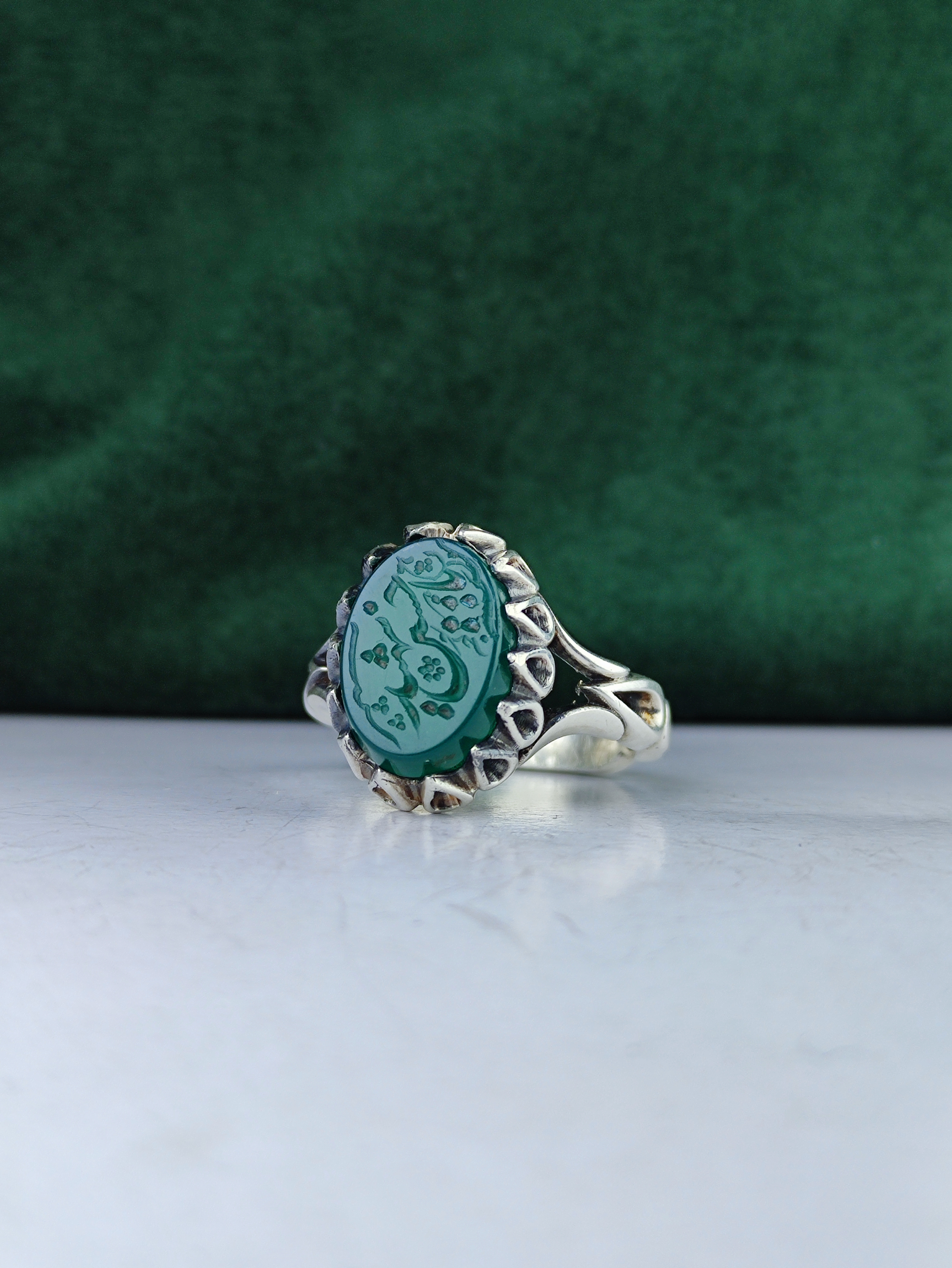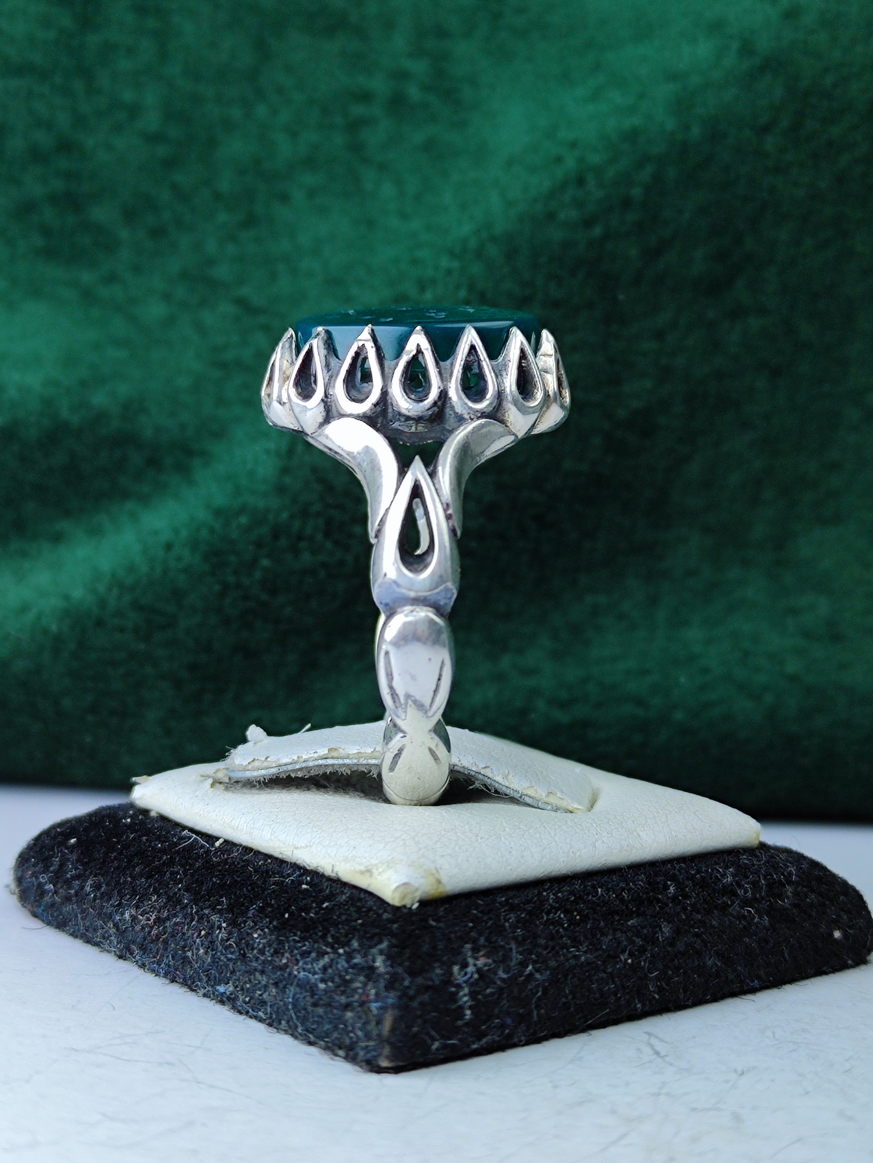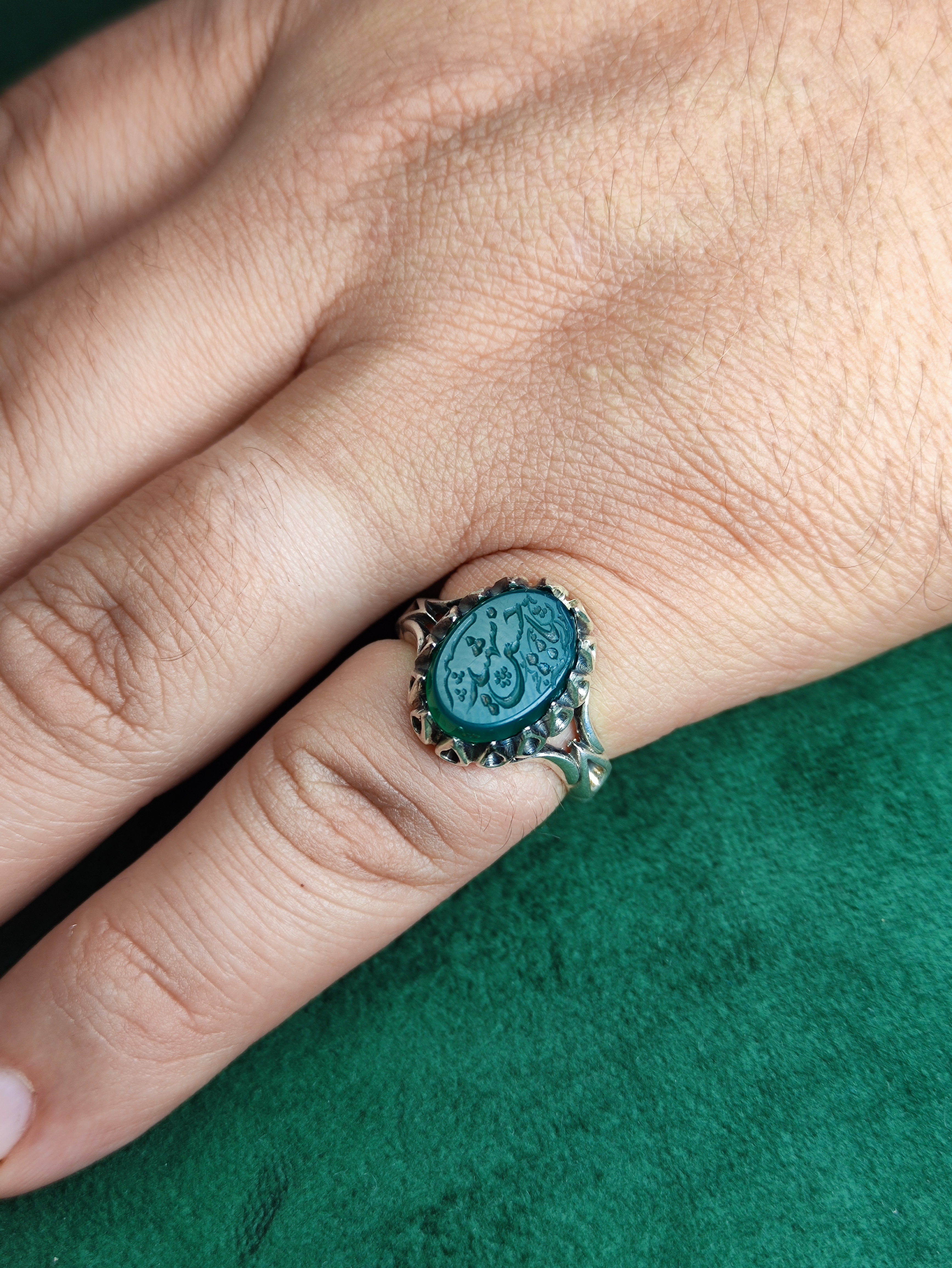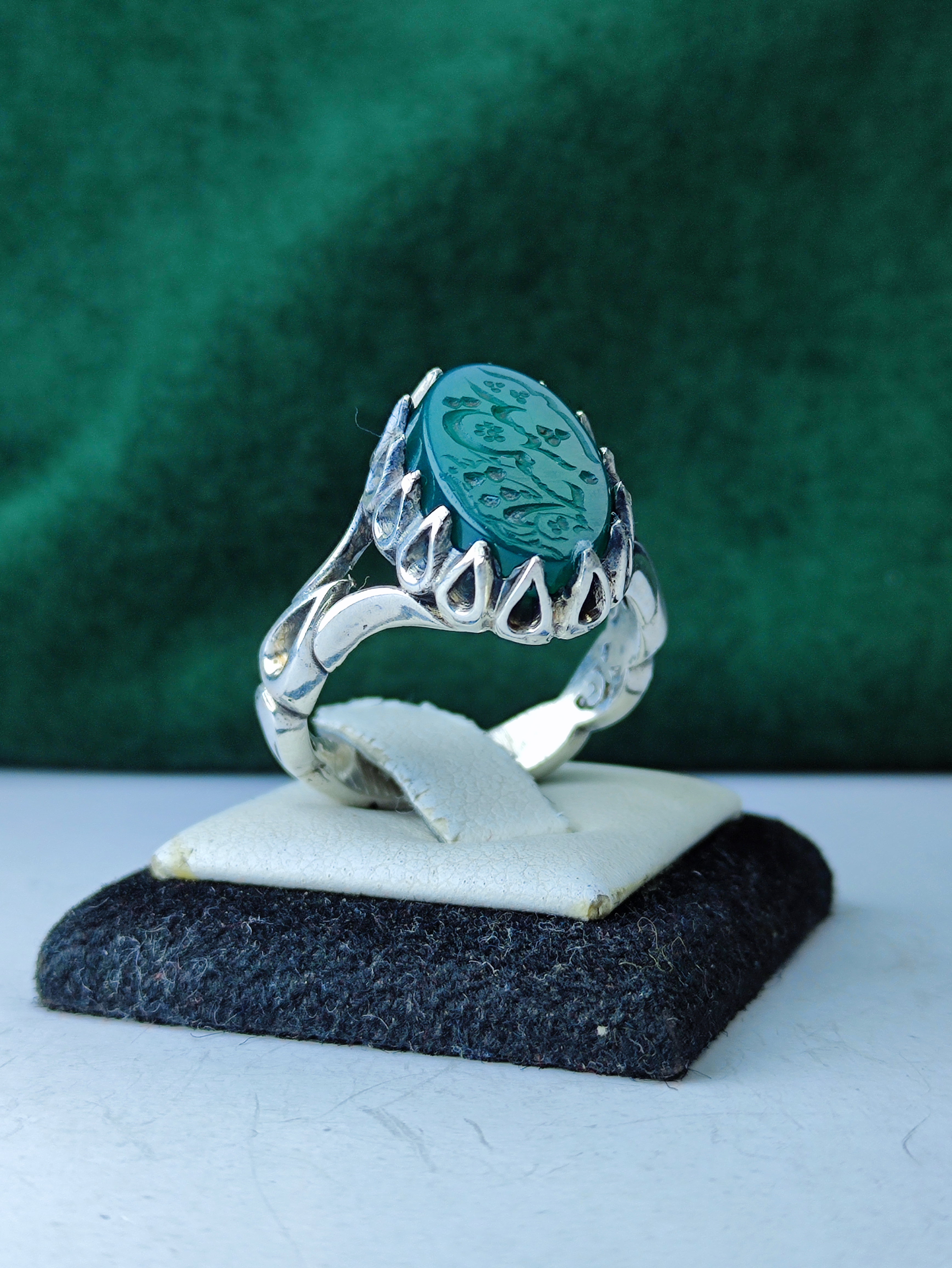 با انگشتر نقره عقیق سبز حکاکی "یا حسین شهید (ع)"، شکوه و معنویت را به دستانتان بیاورید. این انگشتر با رکاب صفوی چنگ اشکی، ترکیبی از هنر و ایمان است که زیبایی شما را دوچندان میکند. هدیهای بینظیر برای عاشقان اهل بیت و هنرهای سنتی. هماکنون خرید کنید و درخشش را تجربه کنید!