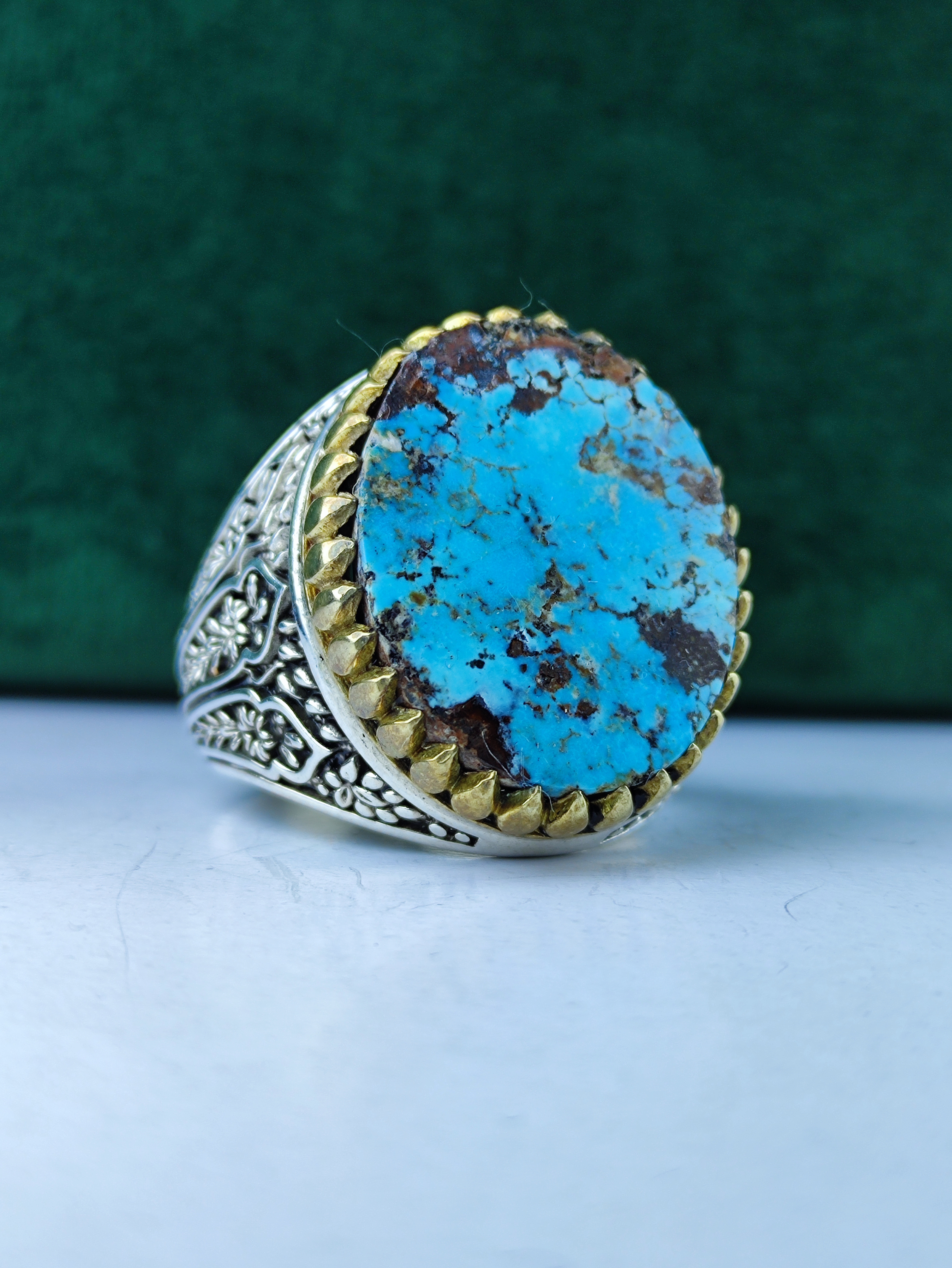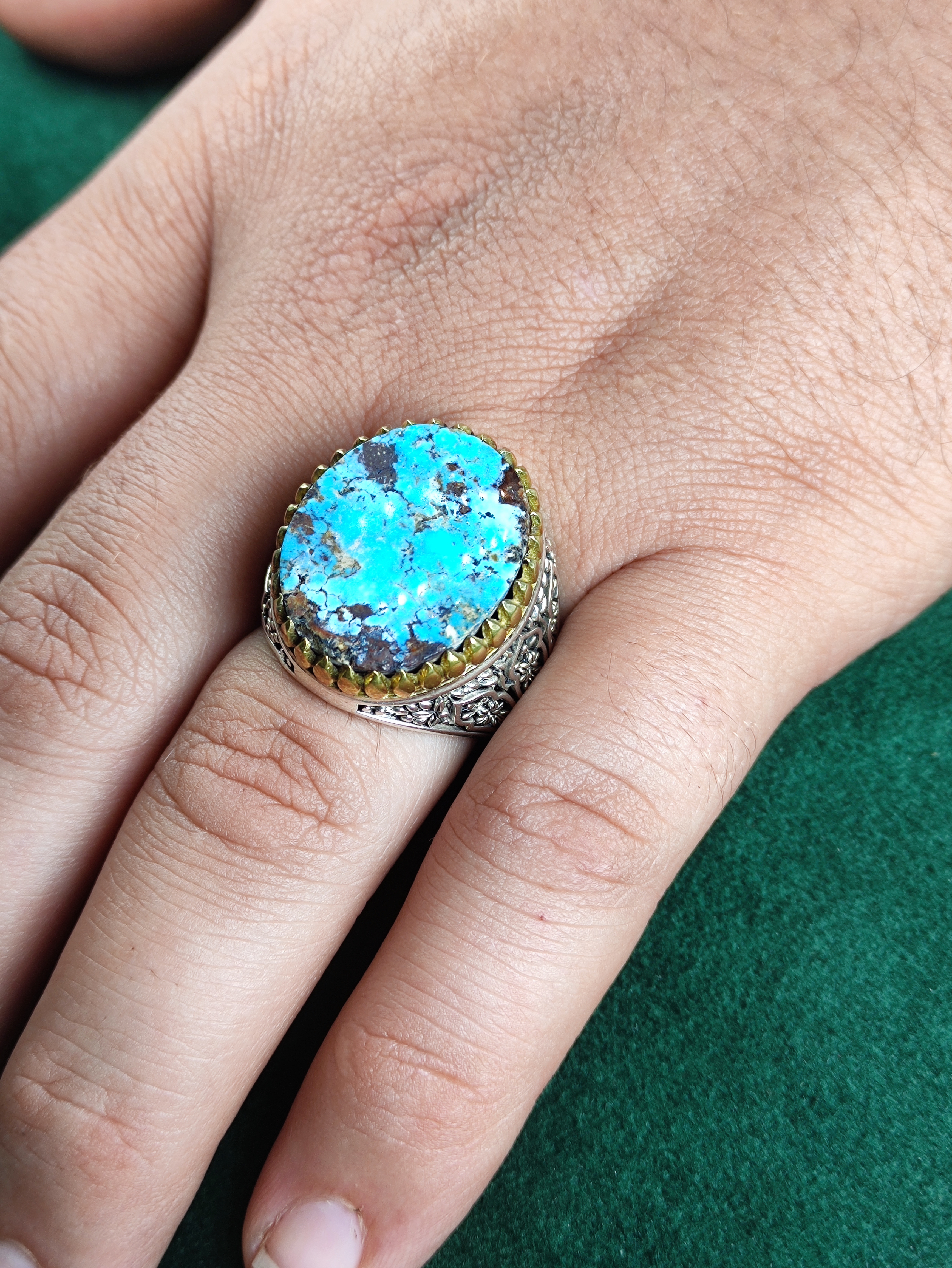 با انگشتر نقره فیروزه نیشابور اصل، زیبایی و اصالت را به دستان خود بیاورید. این انگشتر با رکاب فیلی چنگی و طرح قلمزنی ظریف، نمادی از هنر دست ایرانی است. سنگ فیروزه نیشابور با درخشندگی خاصش، جذابیت شما را دوچندان میکند. فرصت را از دست ندهید و این جواهر منحصر به فرد را به مجموعه خود اضافه کنید!
