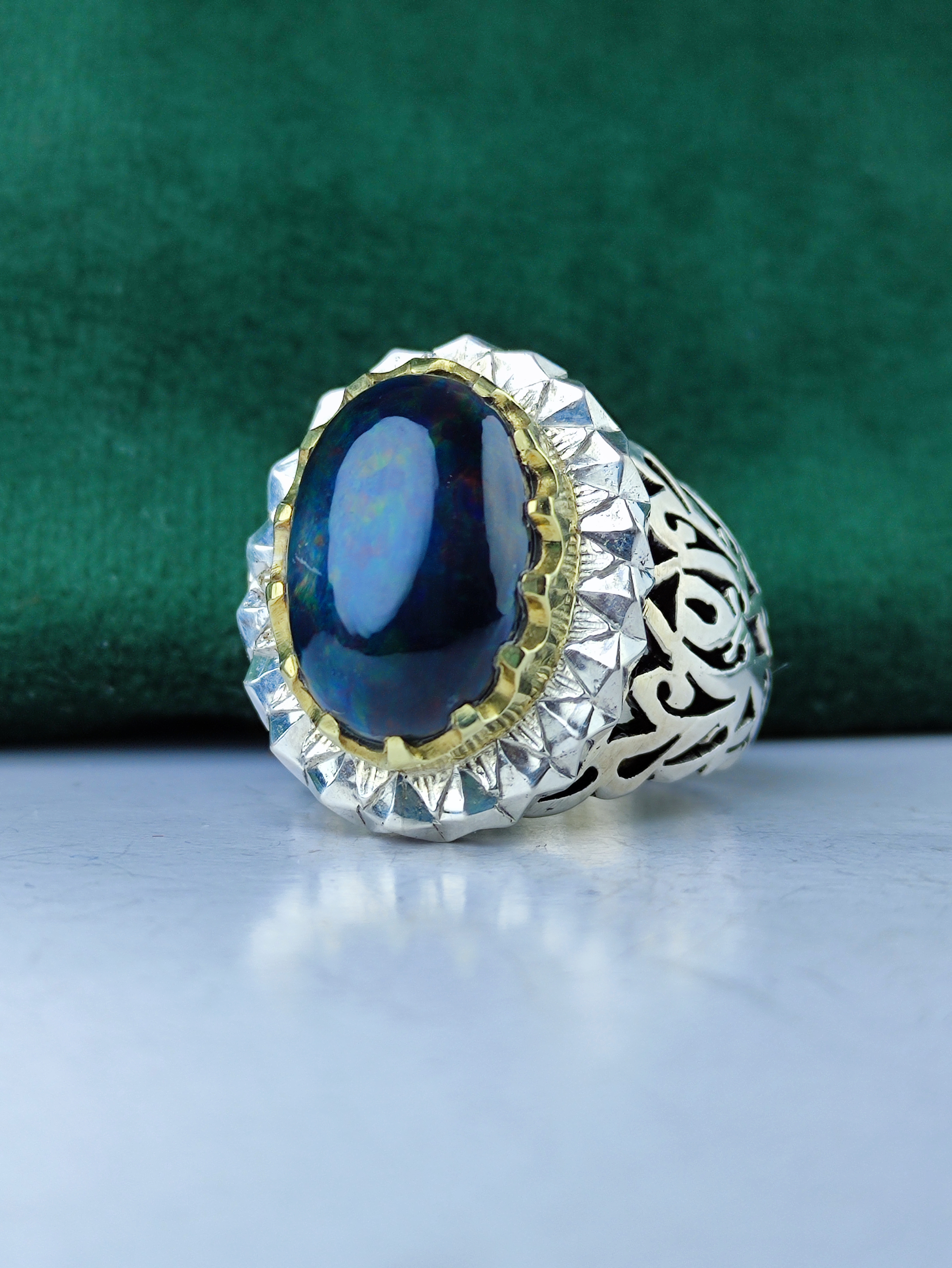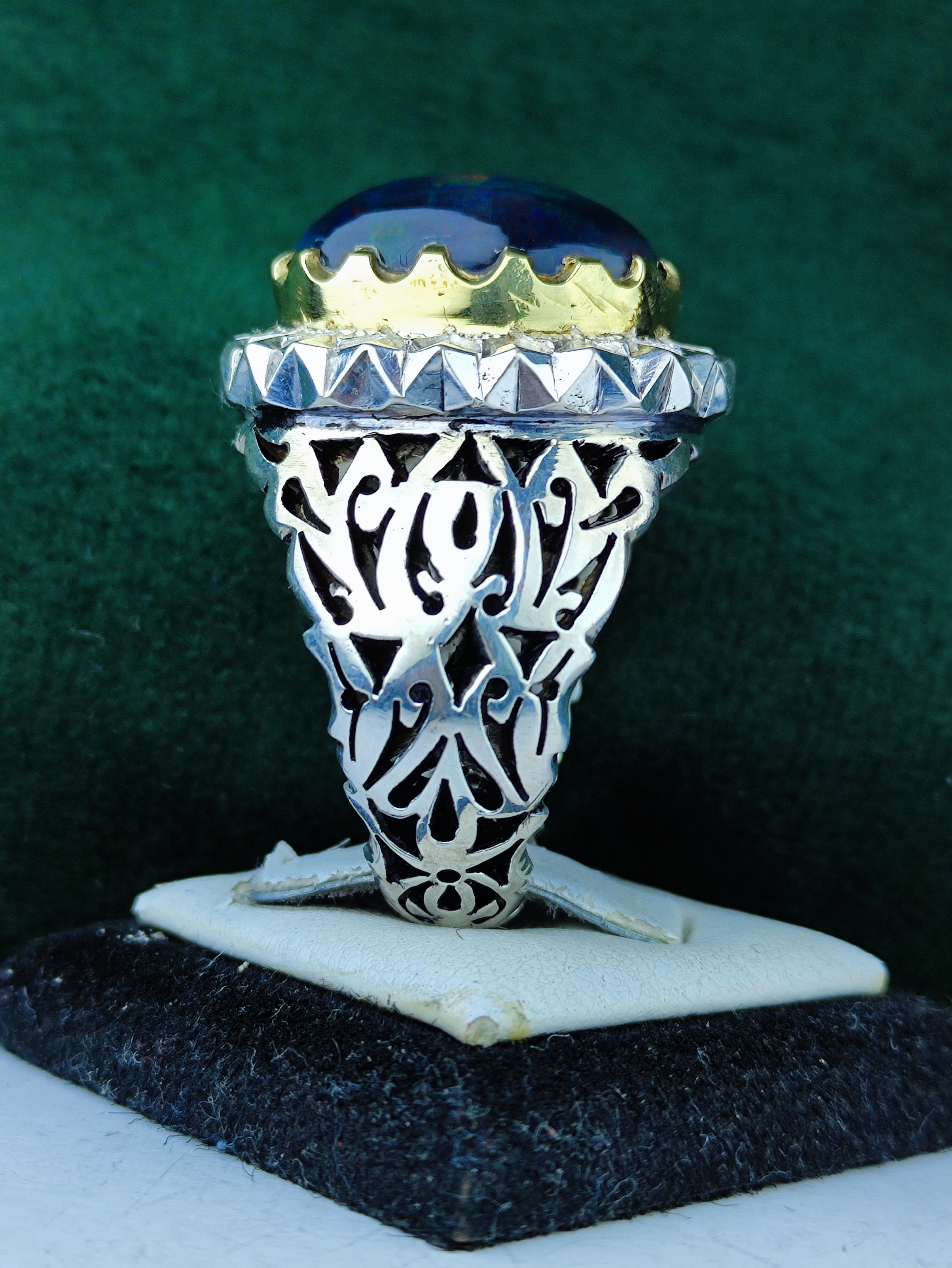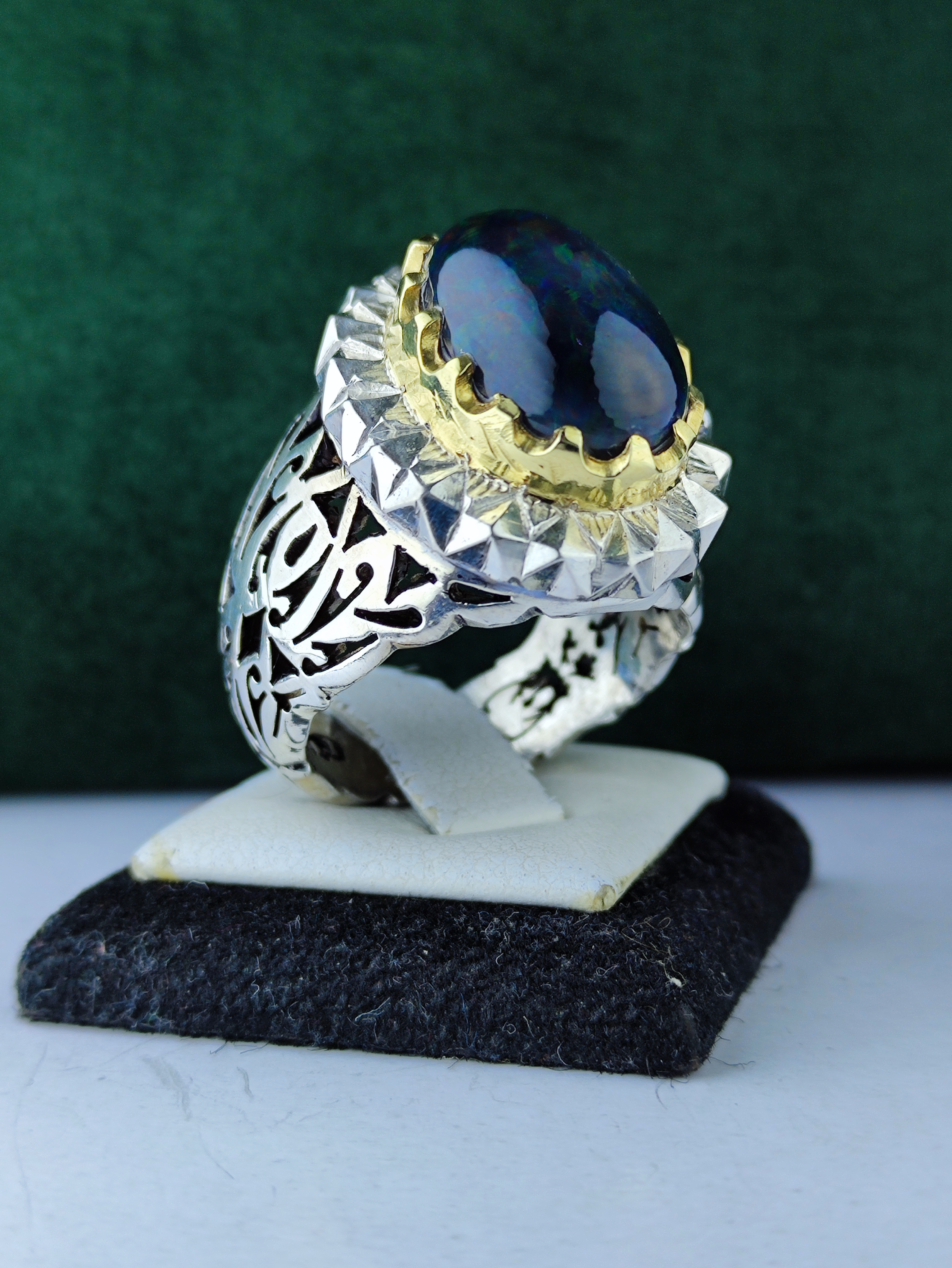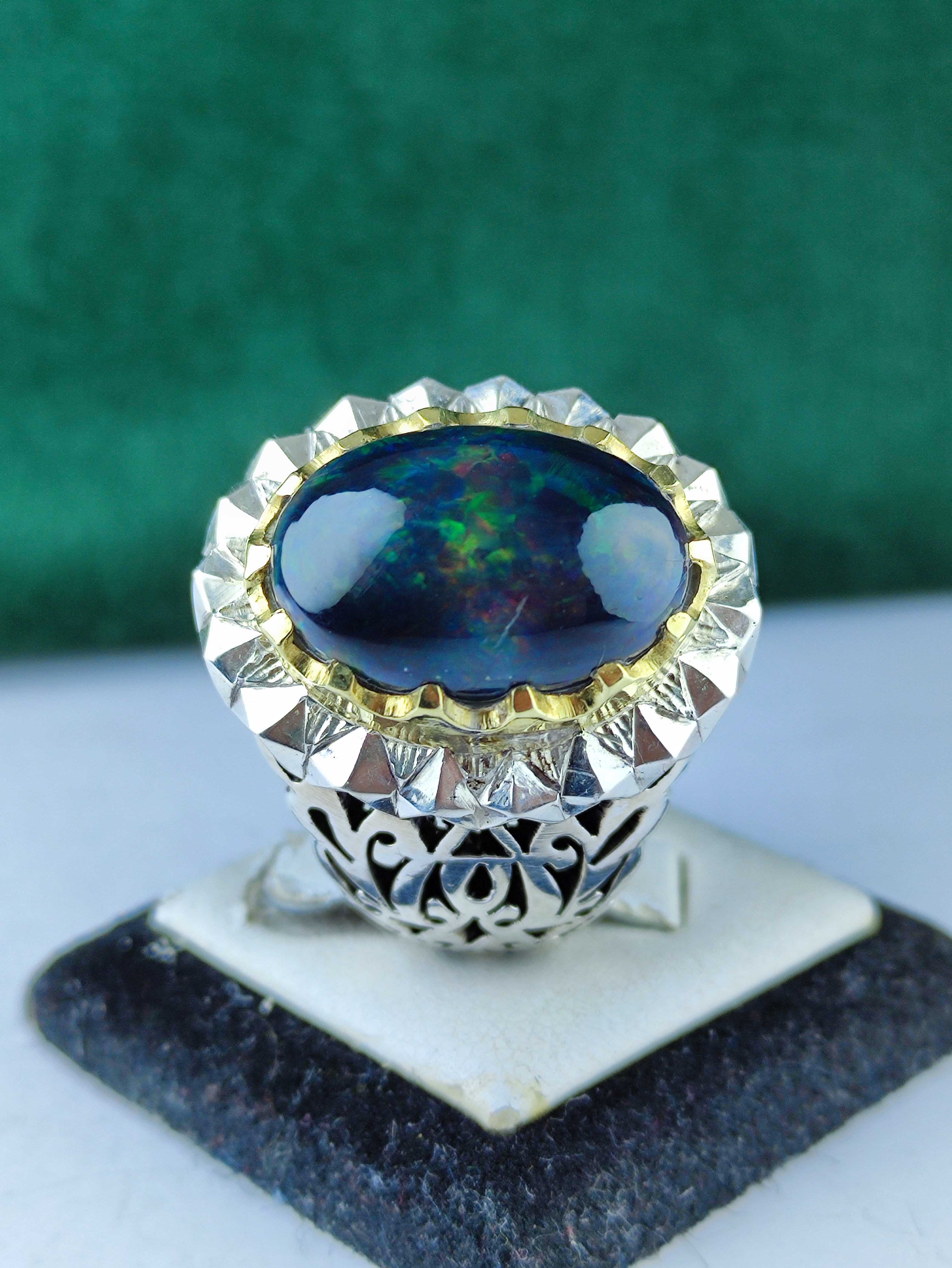 انگشتر نقره اپال اتیوپی اصل مخراج شش قطعه برلیان اصلی رکاب فیلی چنگی دست ساز
