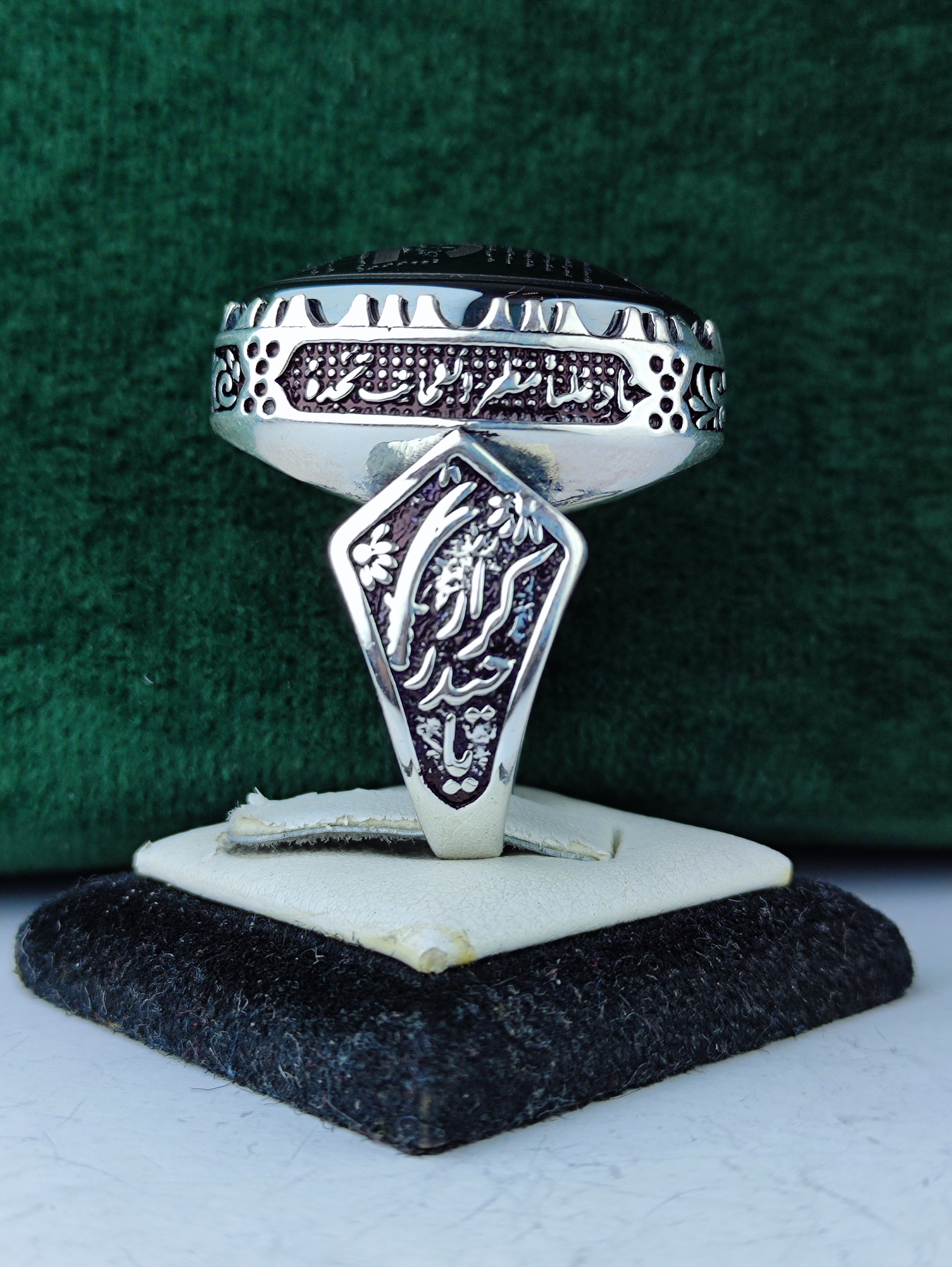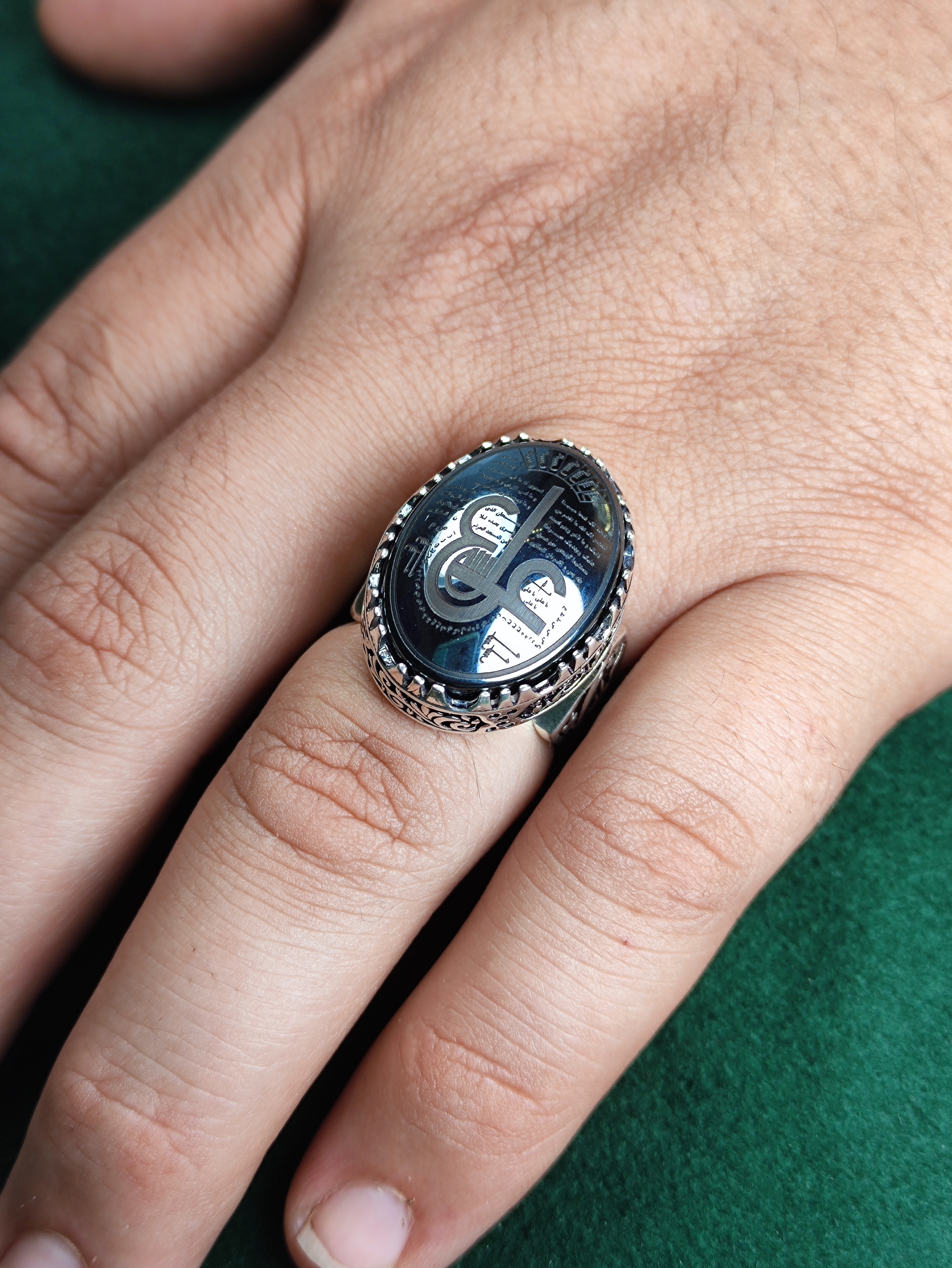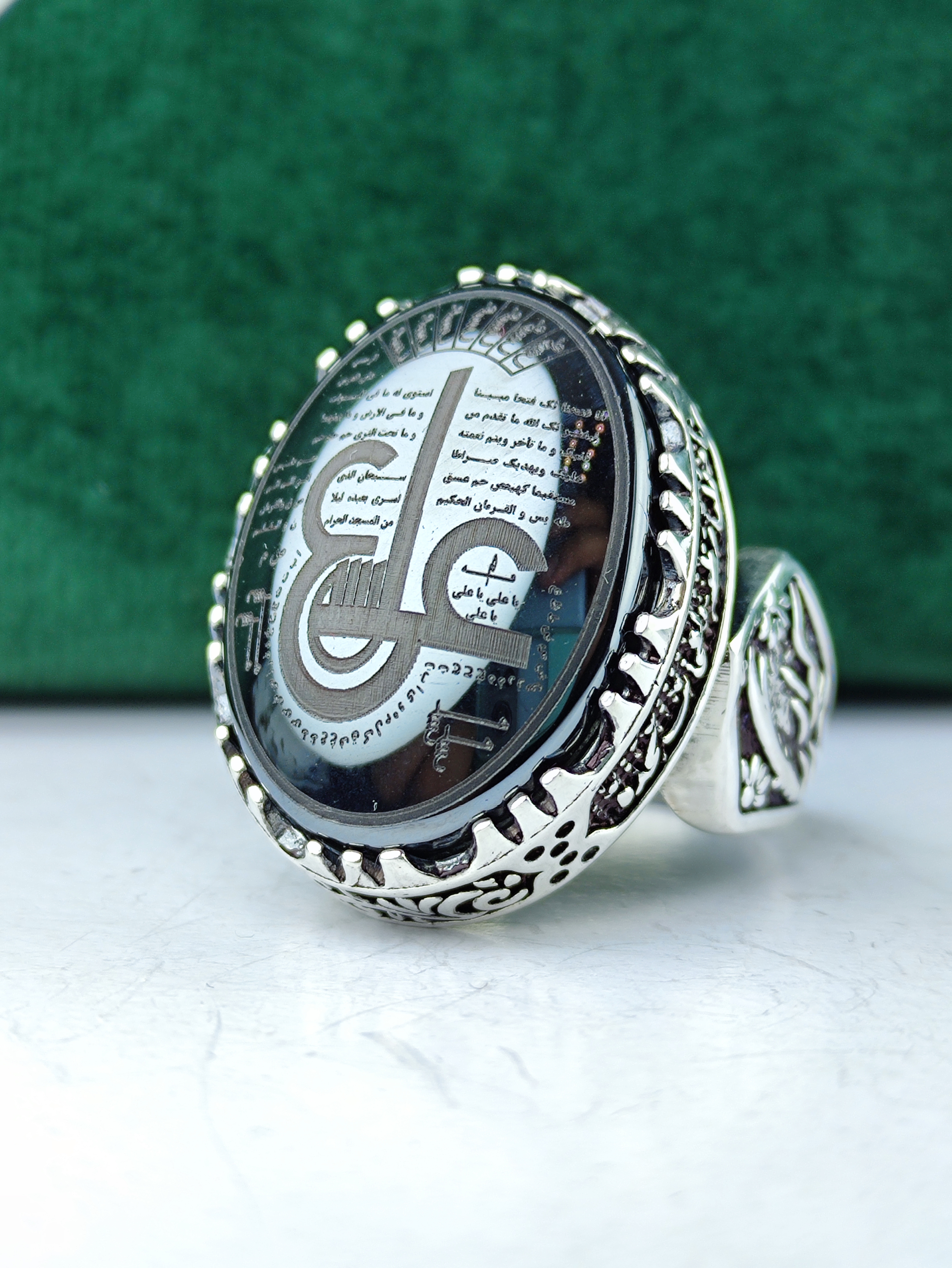 با این انگشتر نقره حدید اصل، زیبایی و معنویت را به دستتان بیاورید. حکاکی حرز عین علی(ع) با رکاب صفوی چنگی و طرح قلمزنی منحصر به فرد، این انگشتر را به یک جواهر خاص و ارزشمند تبدیل کرده است. این محصول ویژه، انتخابی ایدهآل برای عاشقان هنر و اصالت است. اکنون خرید کنید و درخشندگی بینظیری را تجربه کنید!