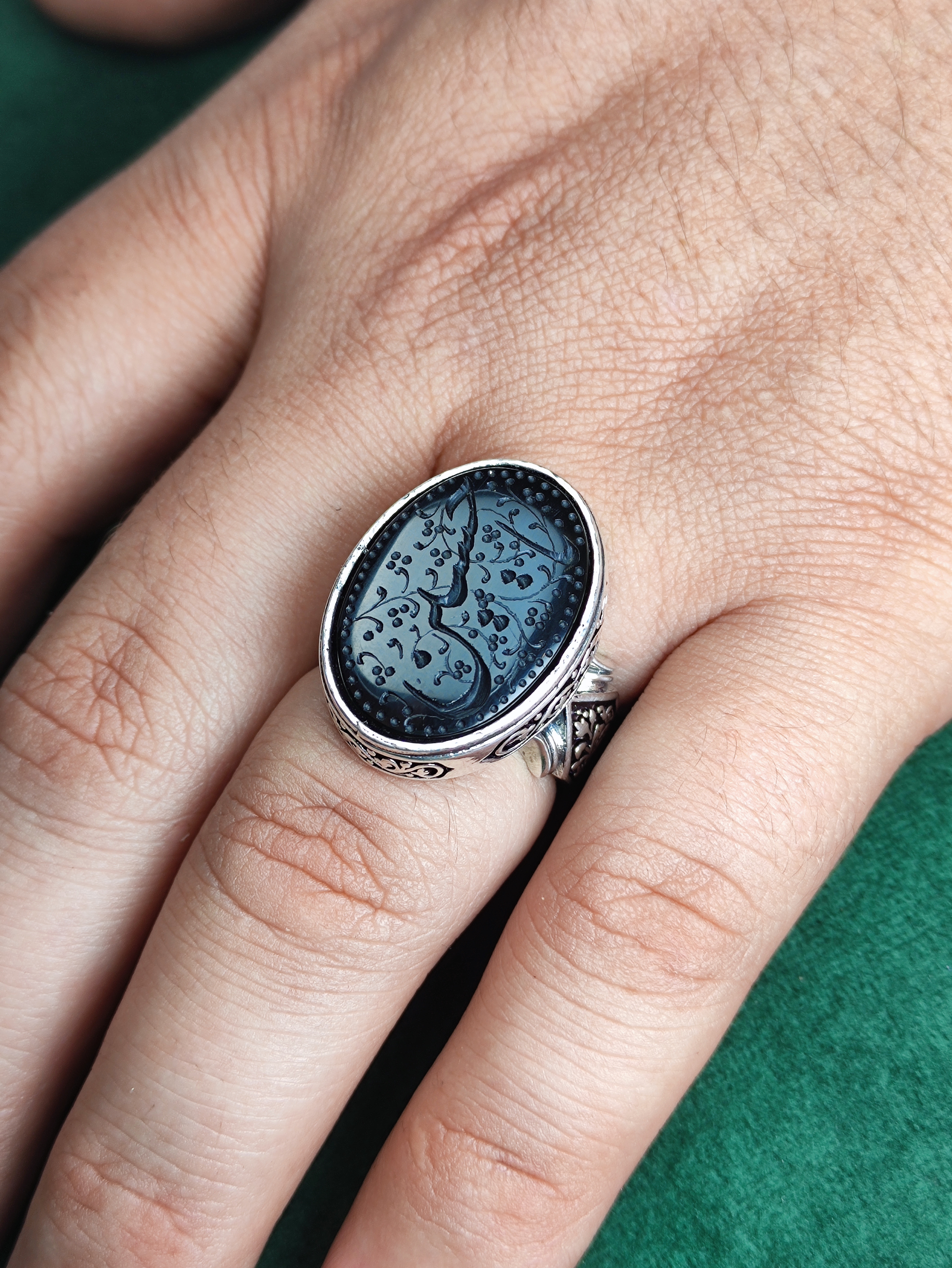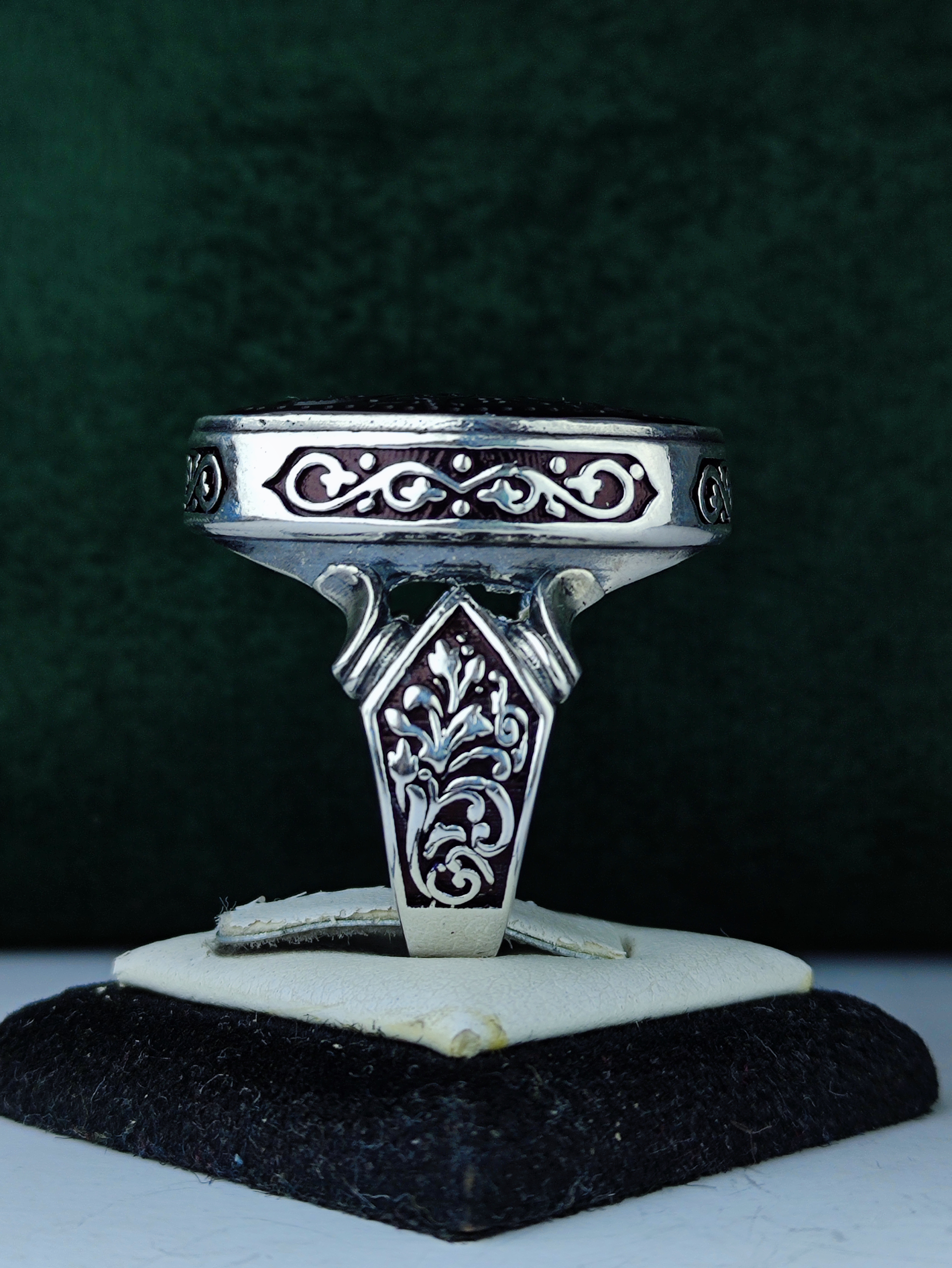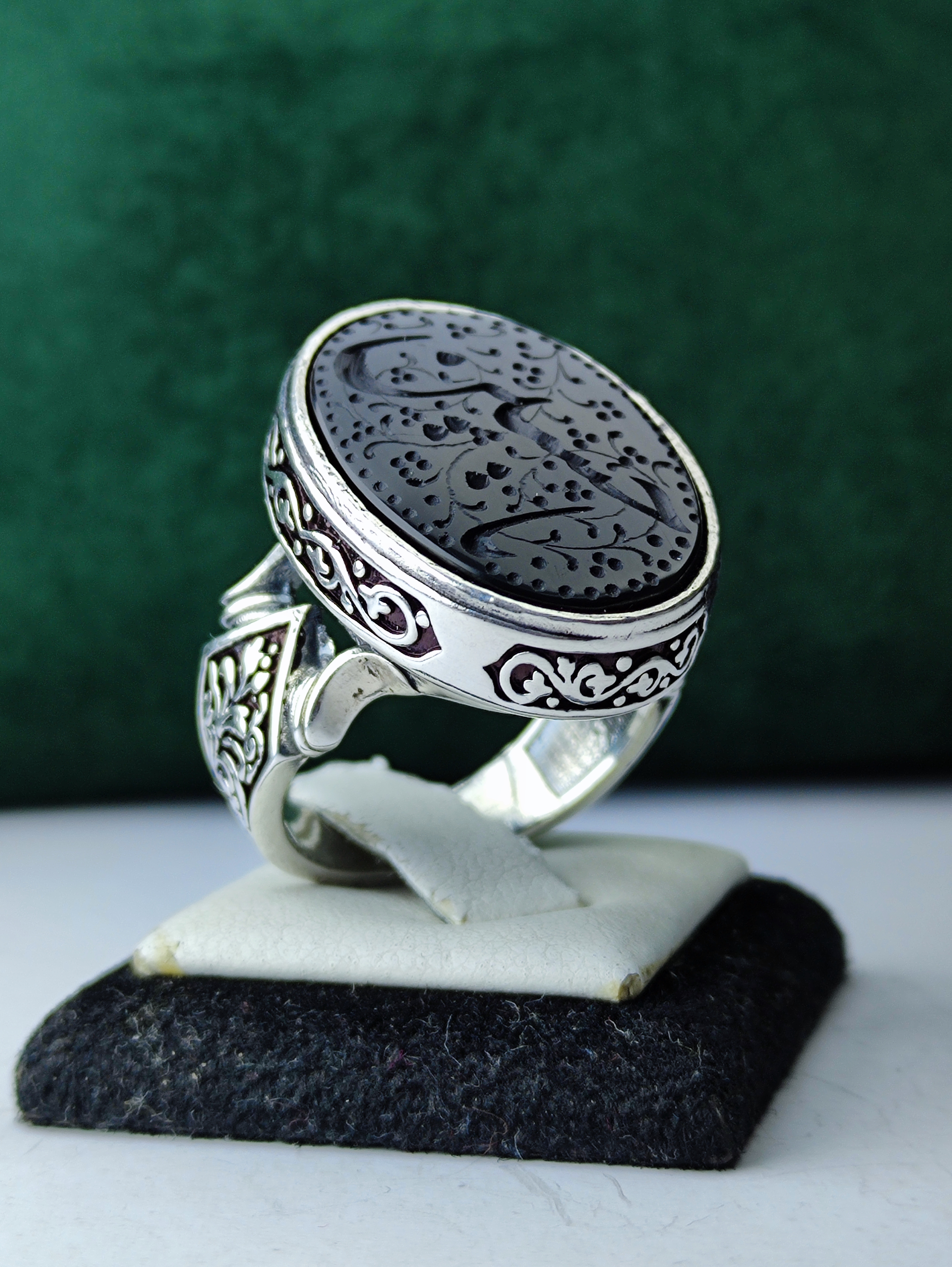 انگشتر نقره عقیق مشکی با حکاکی زیبا و معنوی "یا حسین (ع)"، ترکیبی از هنر اصیل و معنویت است. رکاب صفوی با طرح قلمزنی دقیق، این انگشتر را به یک اثر هنری تبدیل کرده است. این زیور منحصر به فرد نه تنها زیبایی و استایل شما را ارتقا میبخشد، بلکه نمادی از ایمان و وفاداری نیز است. فرصت را از دست ندهید و این اثر هنری ارزشمند را به مجموعه خود اضافه کنید!
