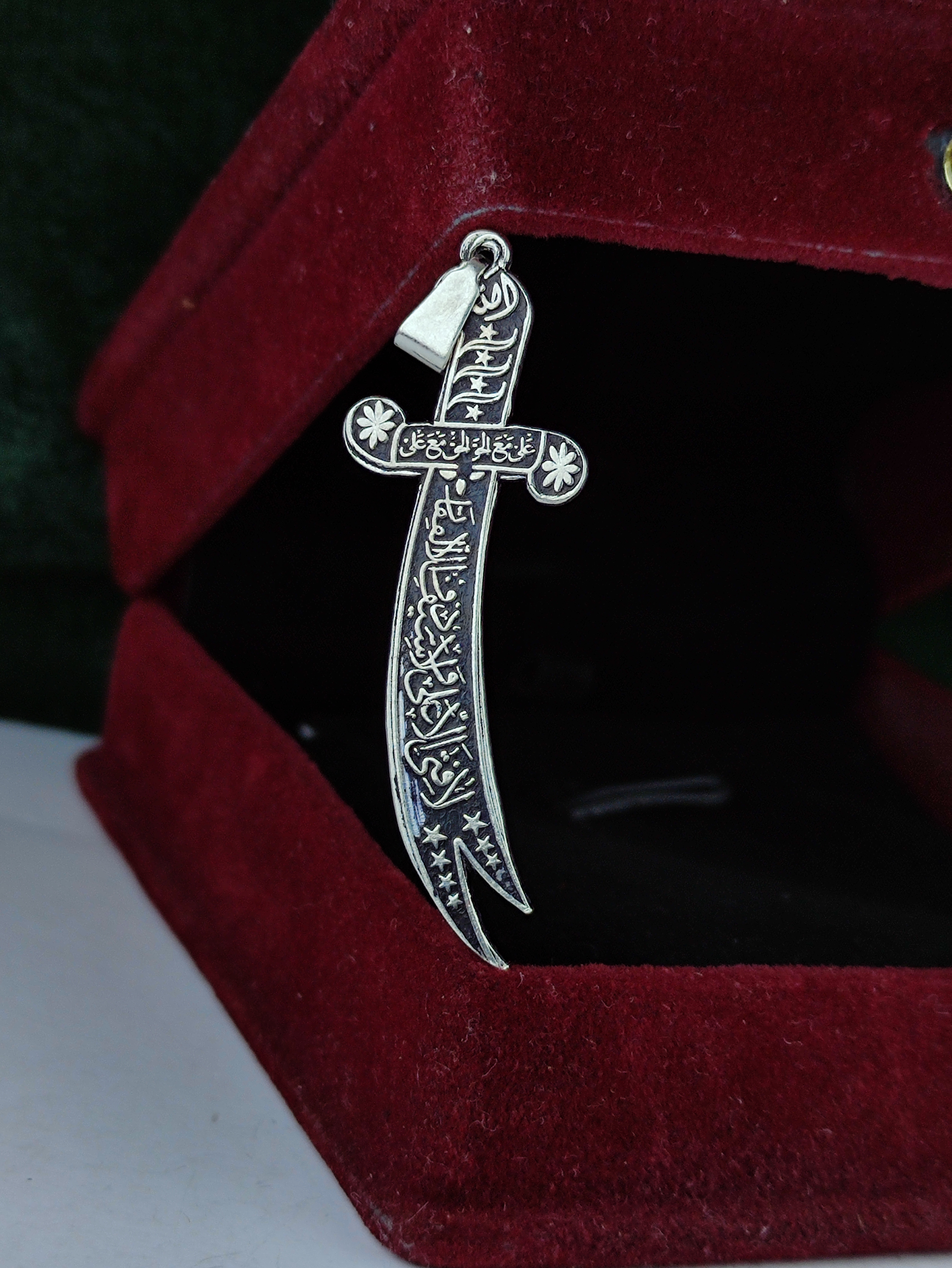 با افتخار، مدال نقره مردانه ذوالفقار با ذکر قدرتمند "لا فتی الا علی" ارائه میشود. با طول ۴.۸ سانتیمتر، این اثر هنری زیبا نمادی از شجاعت و ایمان است. به سبک و استایل خود روحی تازه ببخشید و با این جواهر خاص و منحصر به فرد، در هر جمعی بدرخشید. یک انتخاب بینظیر برای آقایان خاص پسند!
