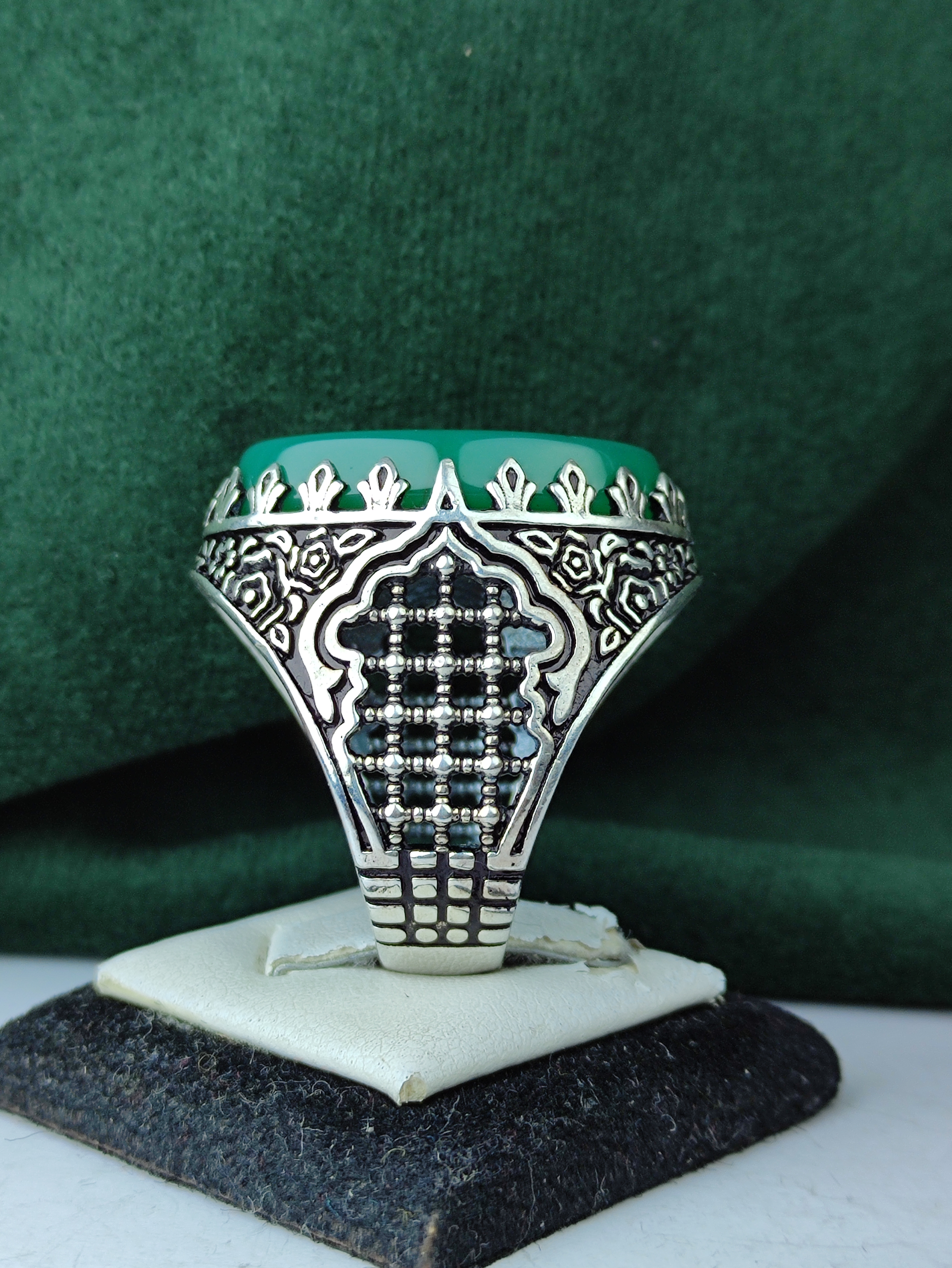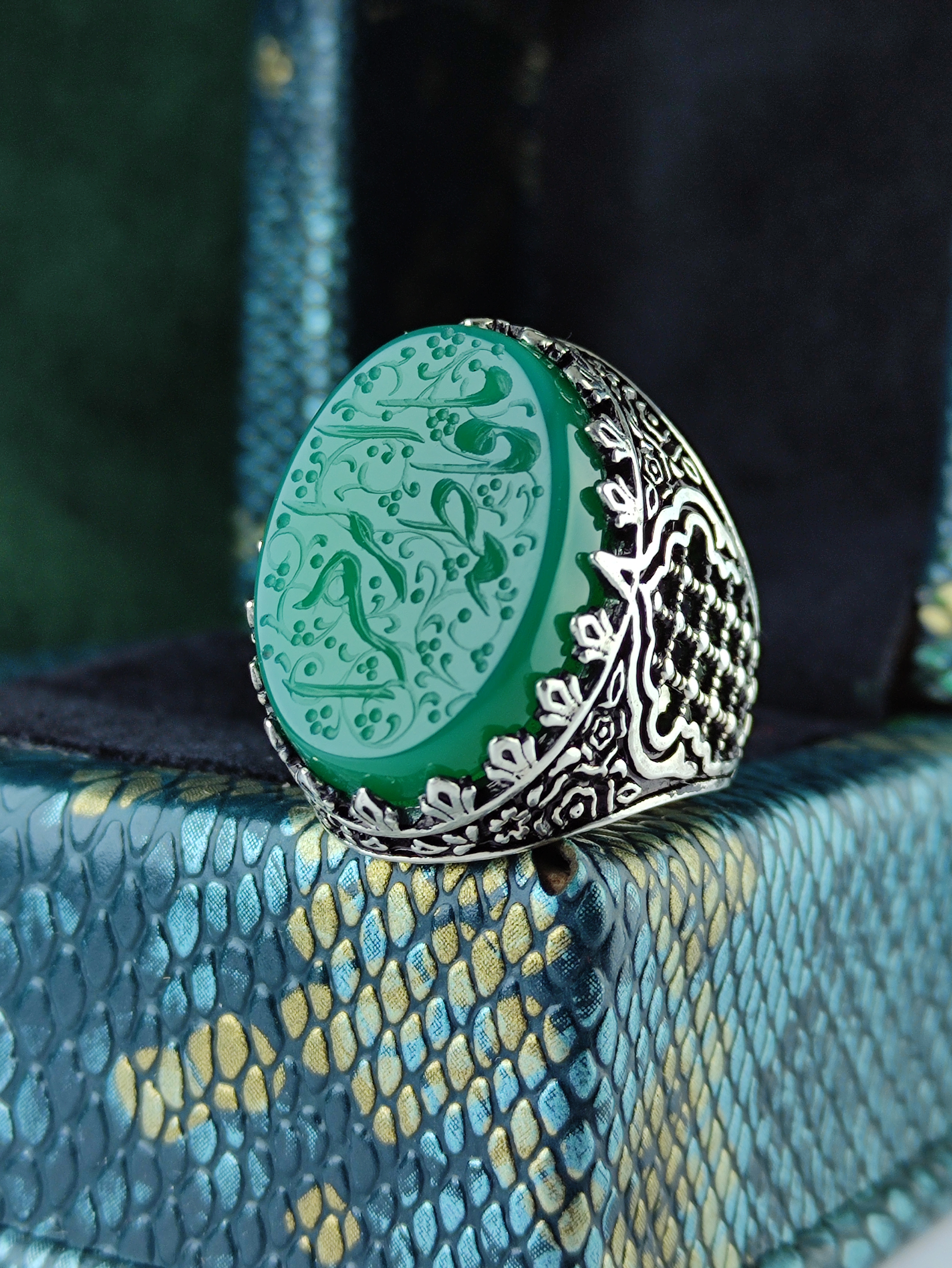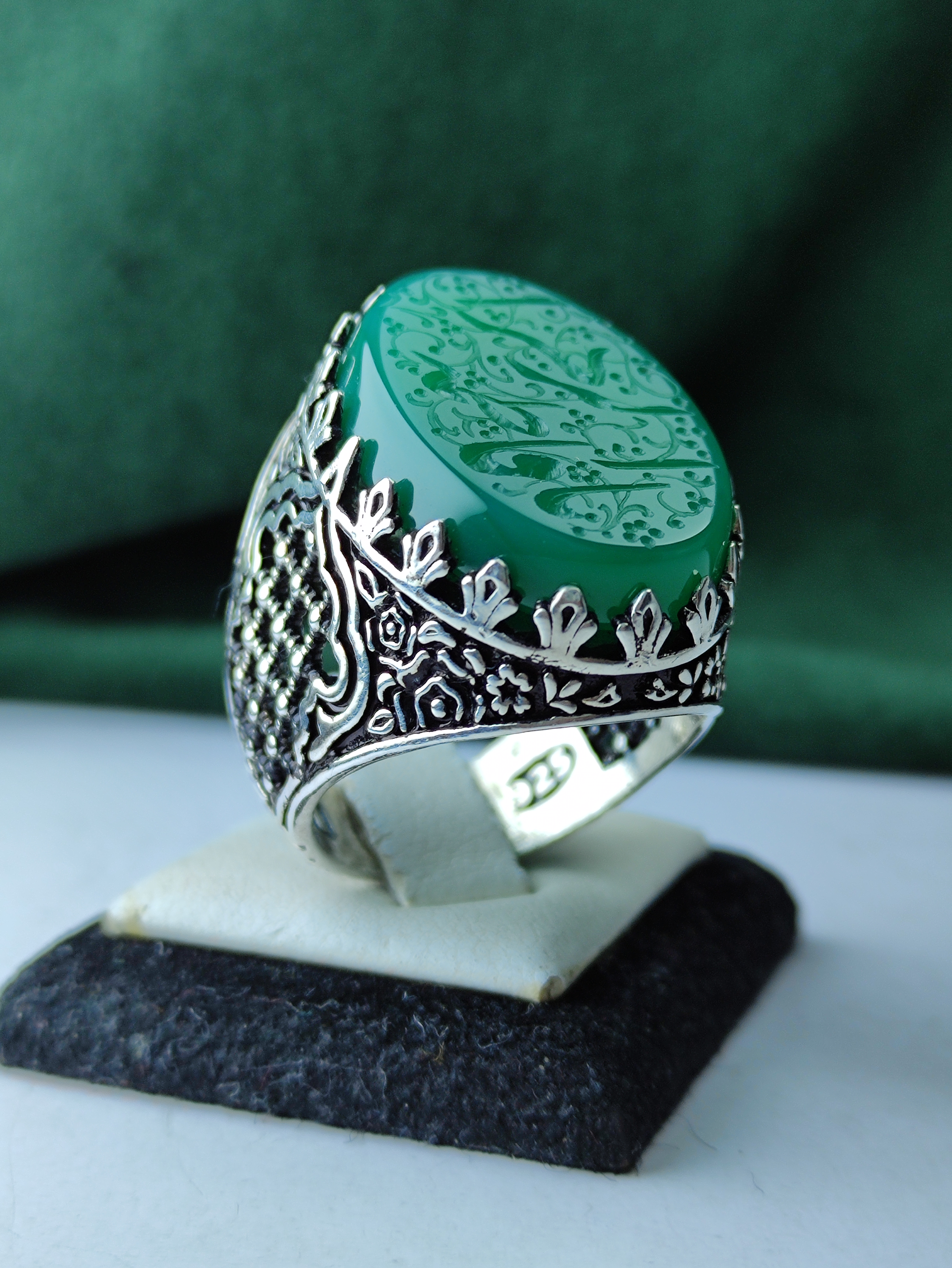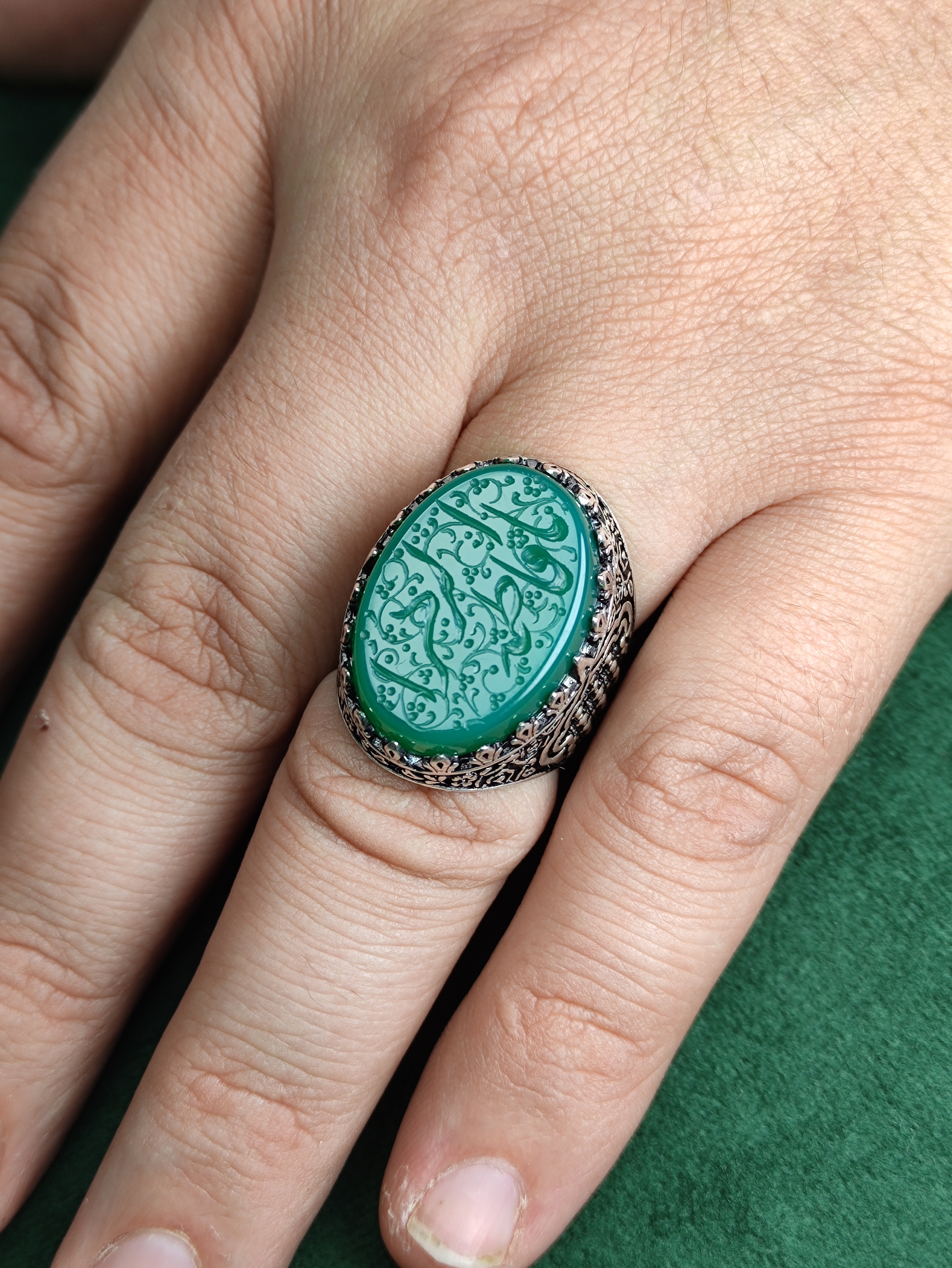با این انگشتر نقره عقیق سبز، زیبایی و معنویت را همزمان تجربه کنید. حکاکی یا فاطمة الزهرا (س) به این جواهر ارزش معنوی خاصی بخشیده است. رکاب فیلی چنگی با طراحی ضریح، جذابیتی بینظیر به این انگشتر میبخشد. هدیهای ایدهآل برای عزیزانتان یا تکمیلکنندهای خاص برای استایل شما.