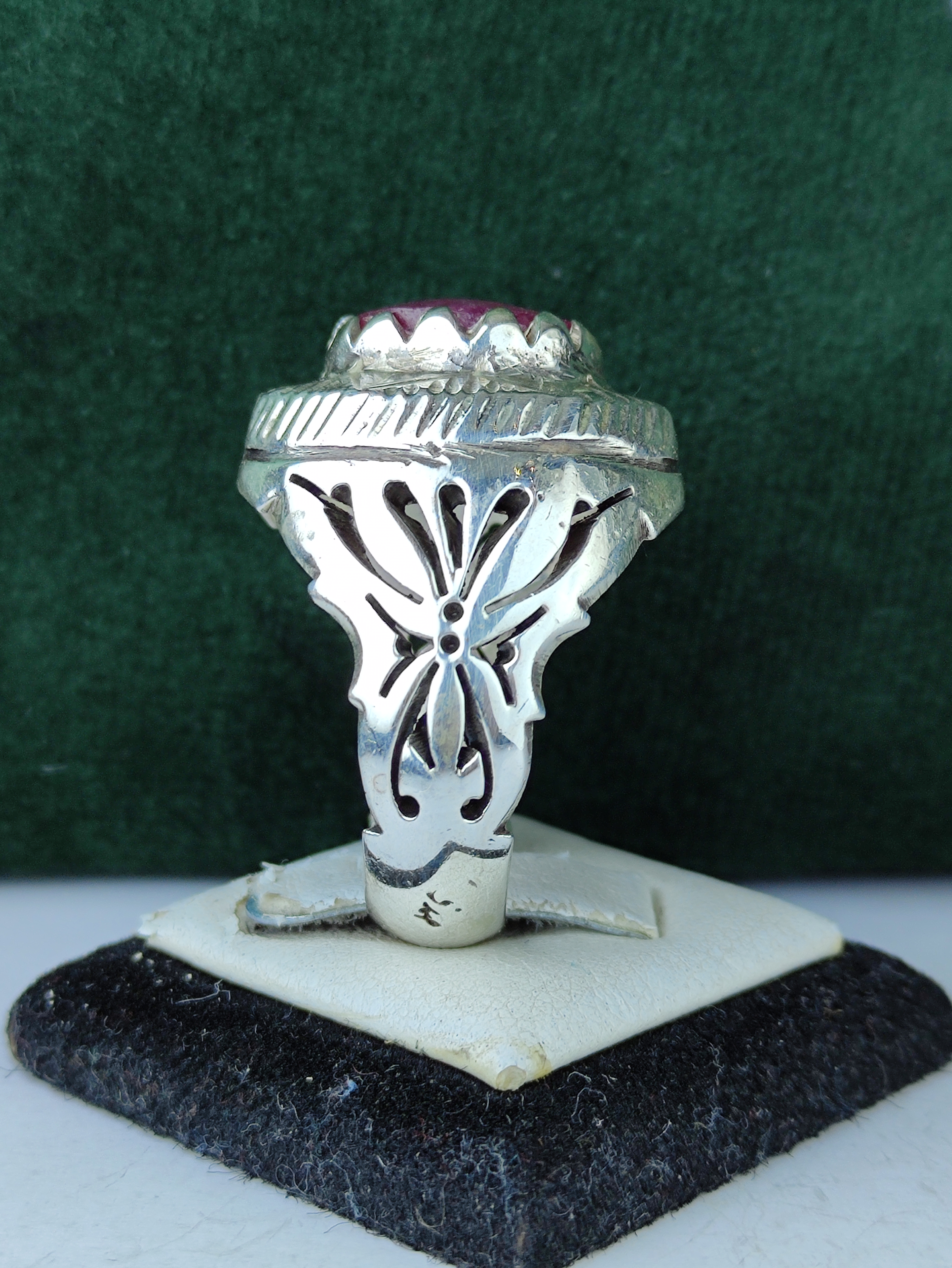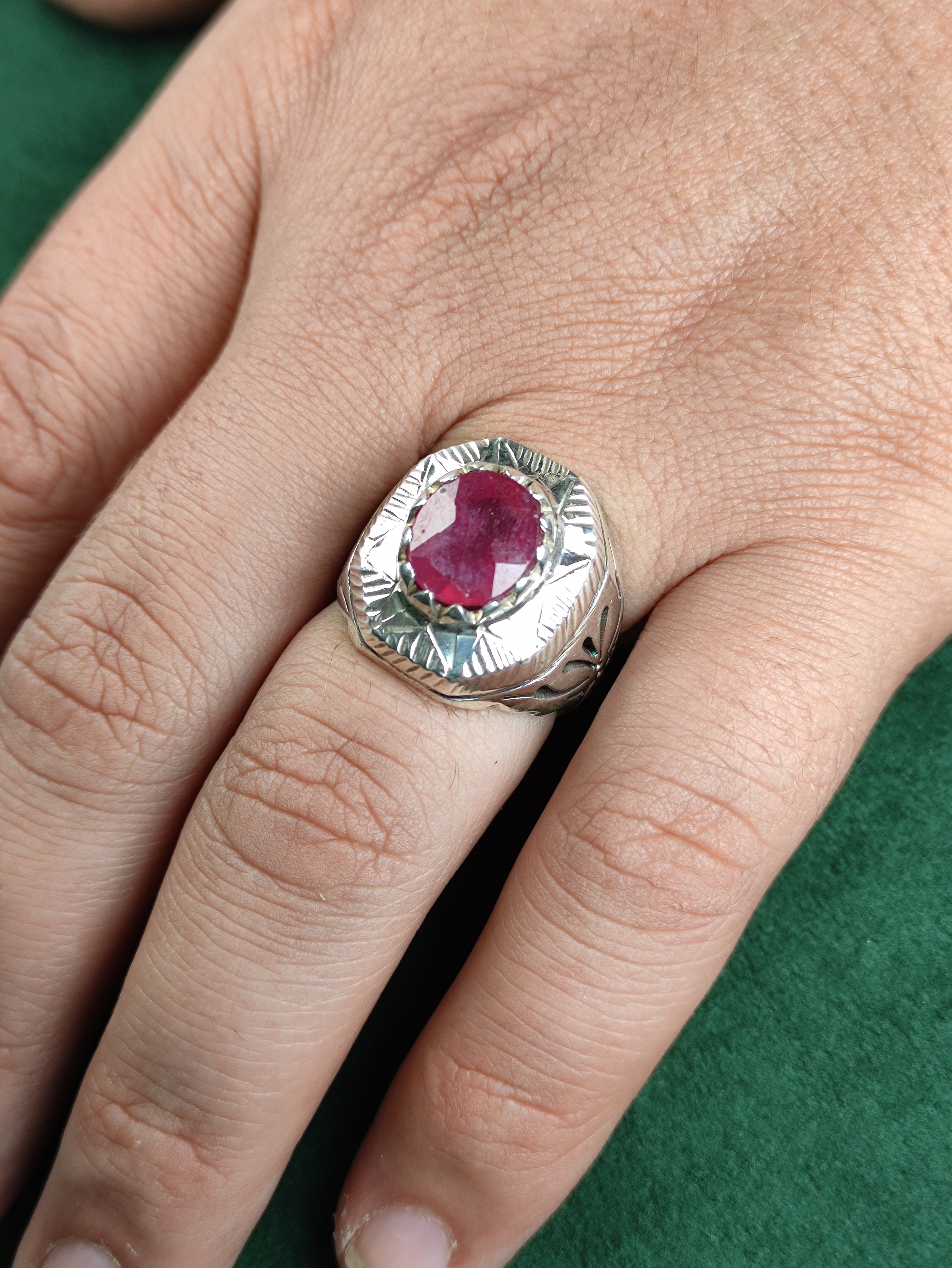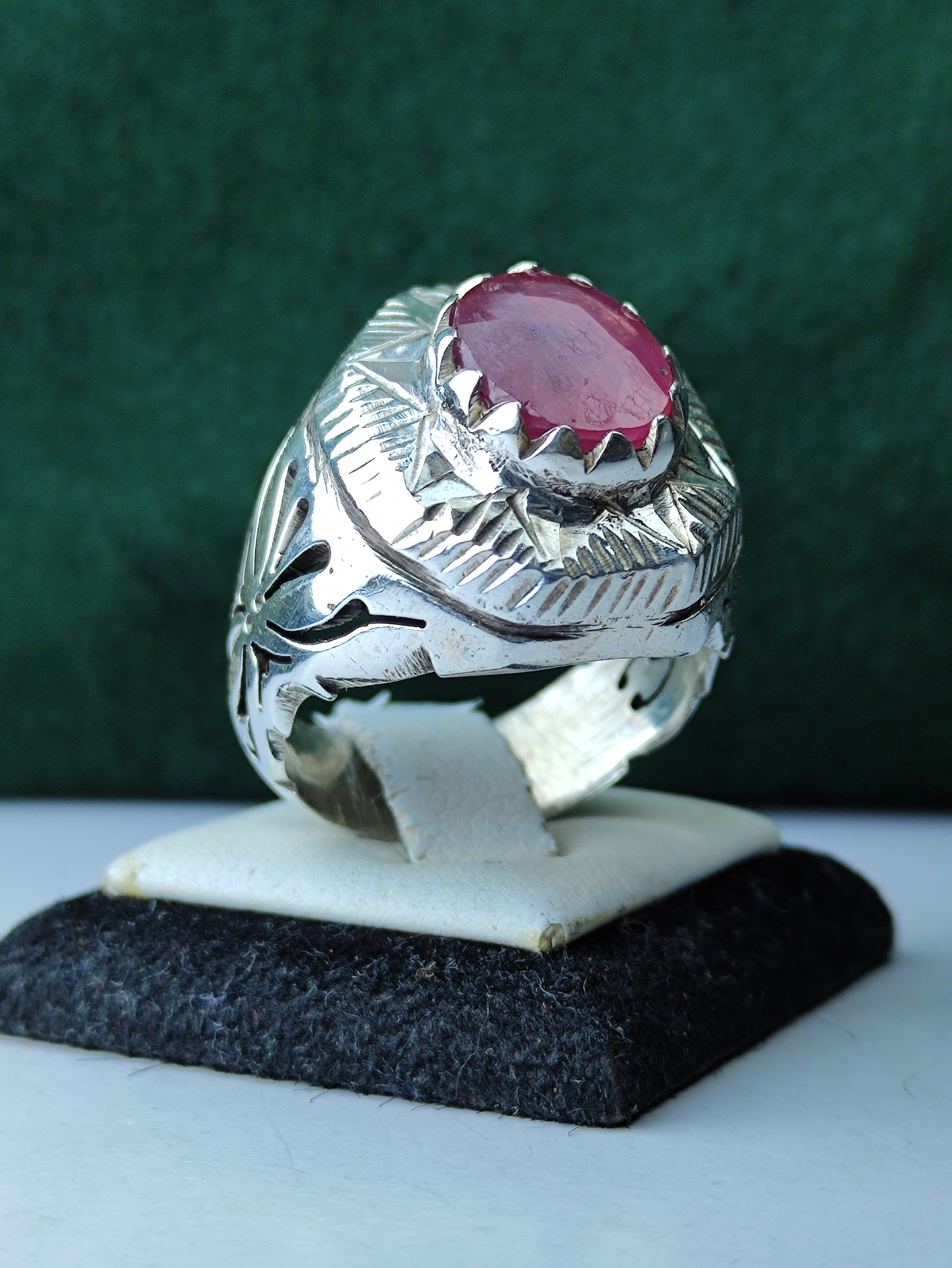 با انگشتر نقره یاقوت قرمز اصل، زیبایی و اصالت را به دستان خود بیاورید. این انگشتر با رکاب فیلی چنگی دستساز و طراحی شبکه و آینهکاری شده، جواهری منحصر به فرد است که درخشش خیرهکنندهای به استایل شما میبخشد. فرصتی استثنایی برای تجربه لمس هنری بینظیر و جلب توجه اطرافیان!