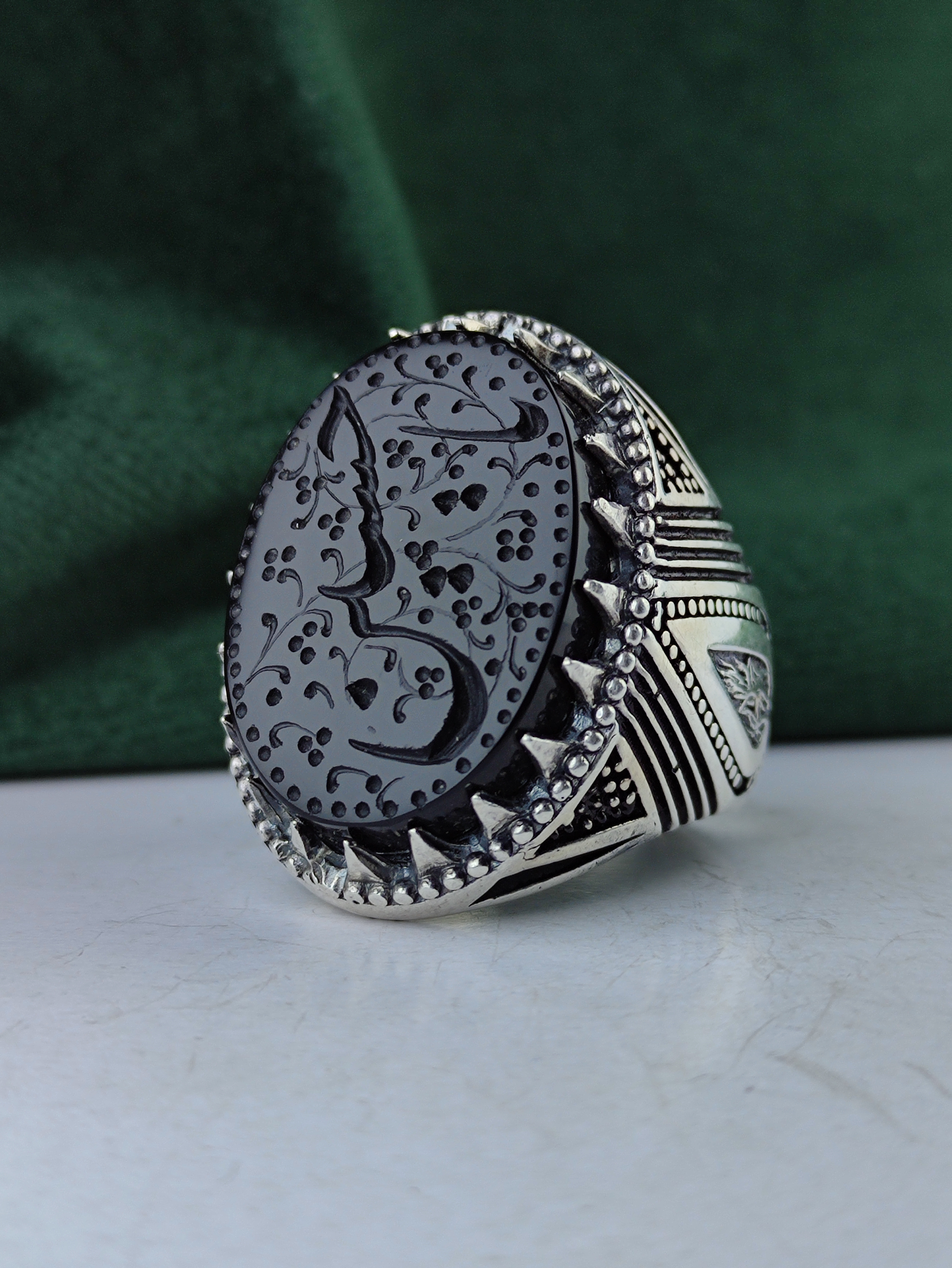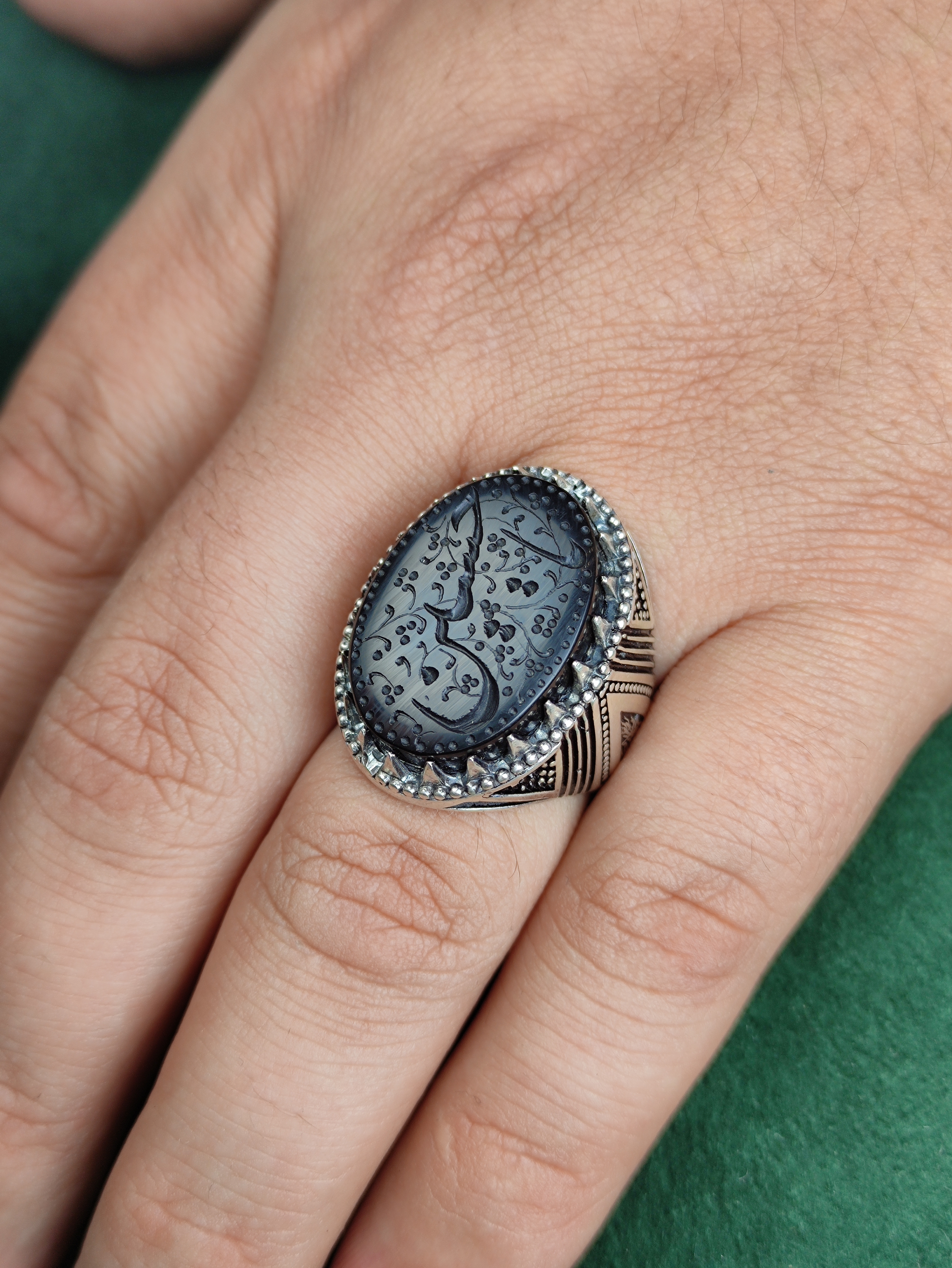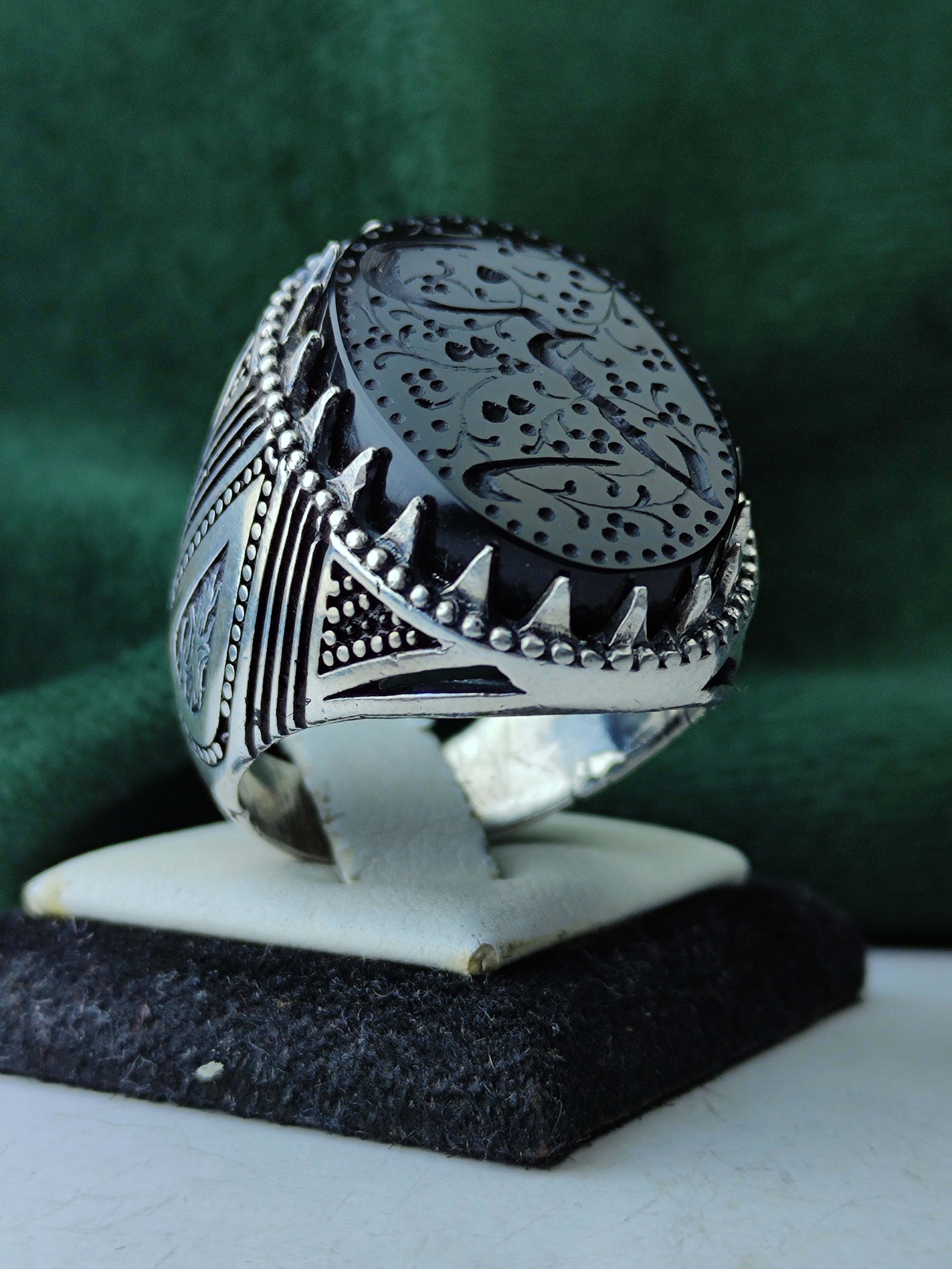 با انگشتر نقره عقیق مشکی، شکوه و معنویت را به دستان خود بیاورید. این انگشتر با حکاکی زیبای «یا حسین (ع)» بر روی عقیق مشکی، به شما احساسی از افتخار و یگانگی میبخشد. رکاب فیلی چنگی، طراحی بینظیری را ارائه میکند که هم در مراسم مذهبی و هم در مجالس رسمی، شما را متمایز میسازد. این فرصت را از دست ندهید!