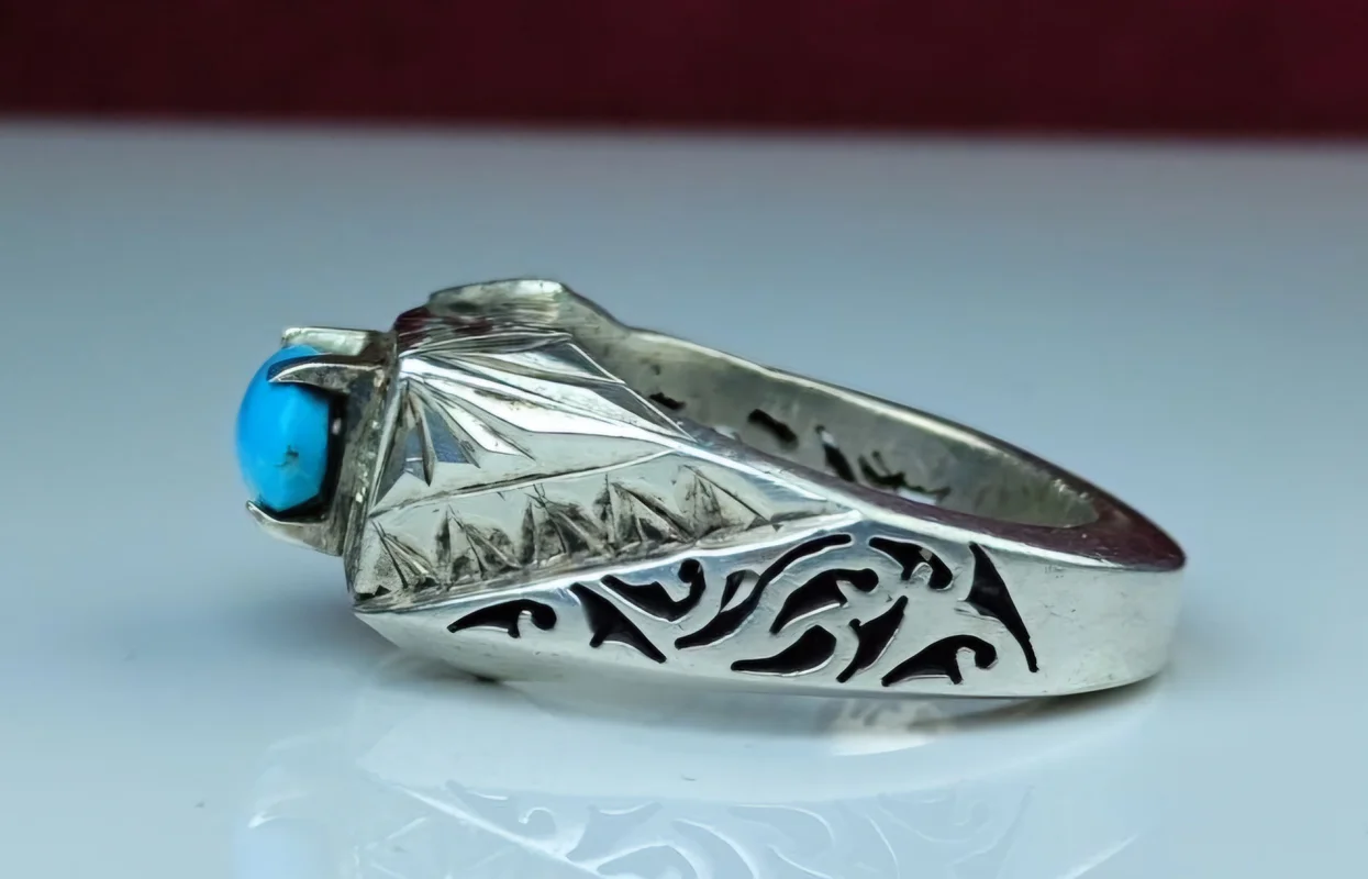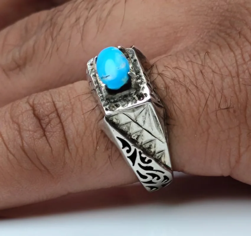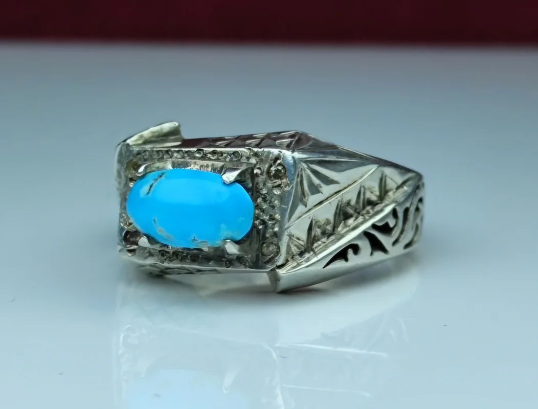 انگشتر نقره فیروزه نیشابور اصل رکاب دست ساز چهار عددمخراج برلیان