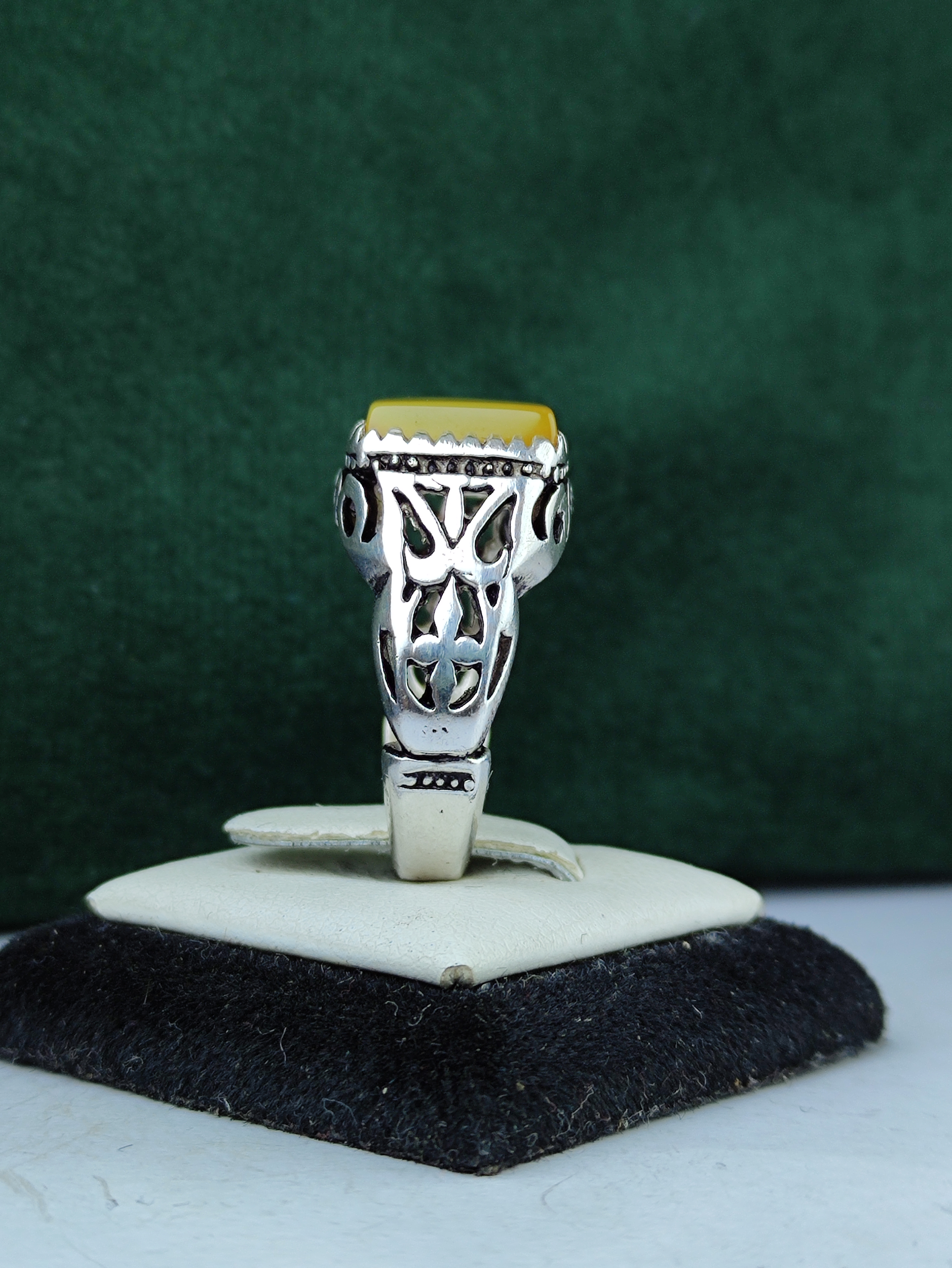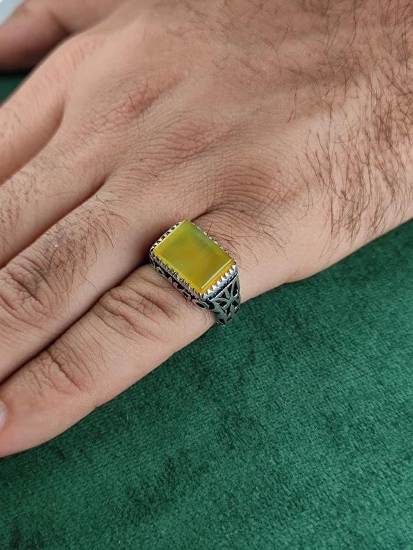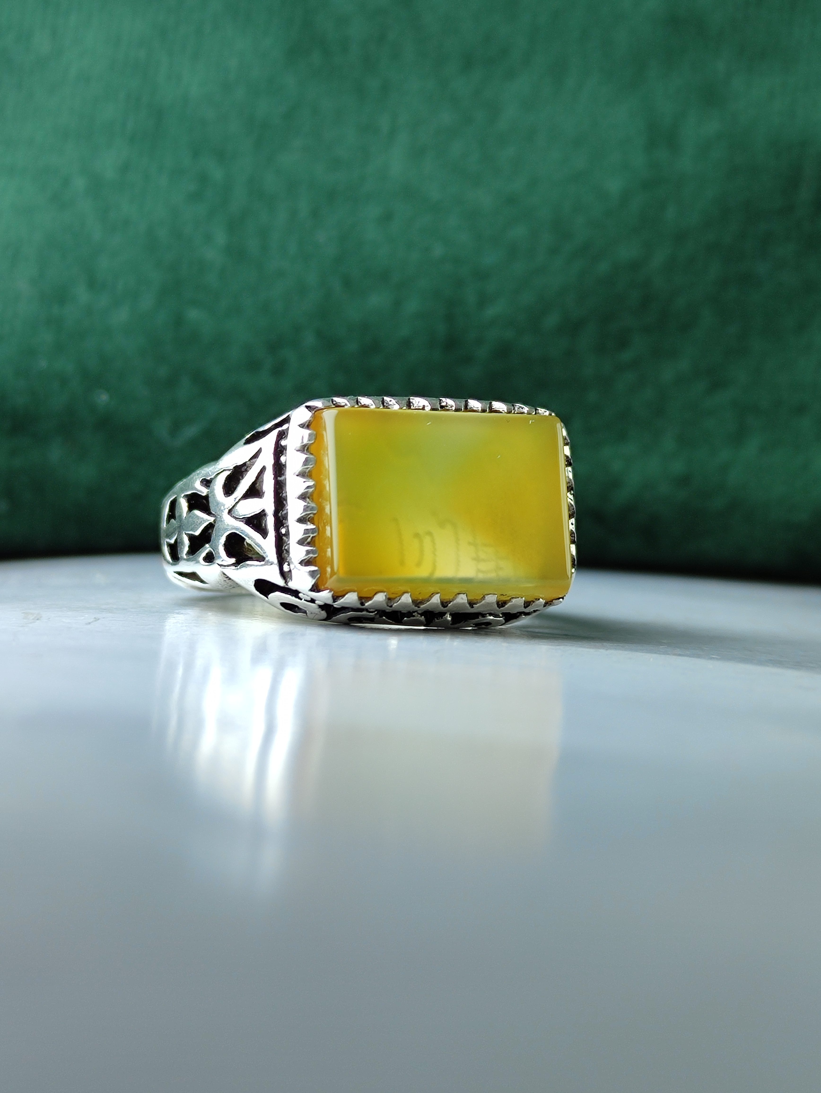 افزایش جلوه و شکوه دستانتان با انگشتر نقره عقیق زرد شرف الشمس! این شاهکار زیبا و بینظیر با طراحی چهار گوش رکاب فیلی چنگی و ساختار ماشینی، نه تنها نمادی از اصالت و دوام است، بلکه جذابیتی فوقالعاده به استایل شما میبخشد. فرصت را از دست ندهید و این محصول خاص را به مجموعهتان اضافه کنید!