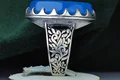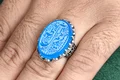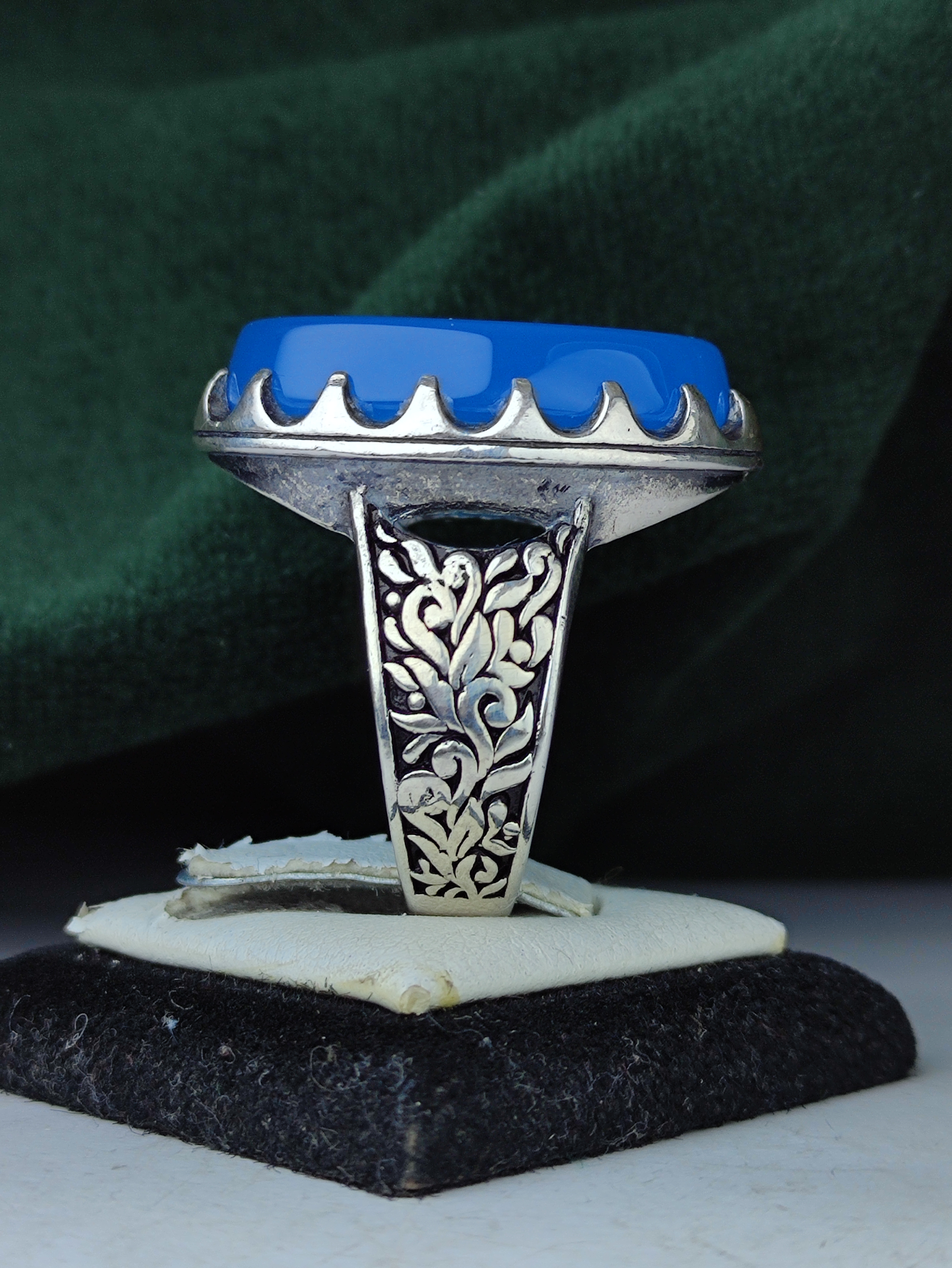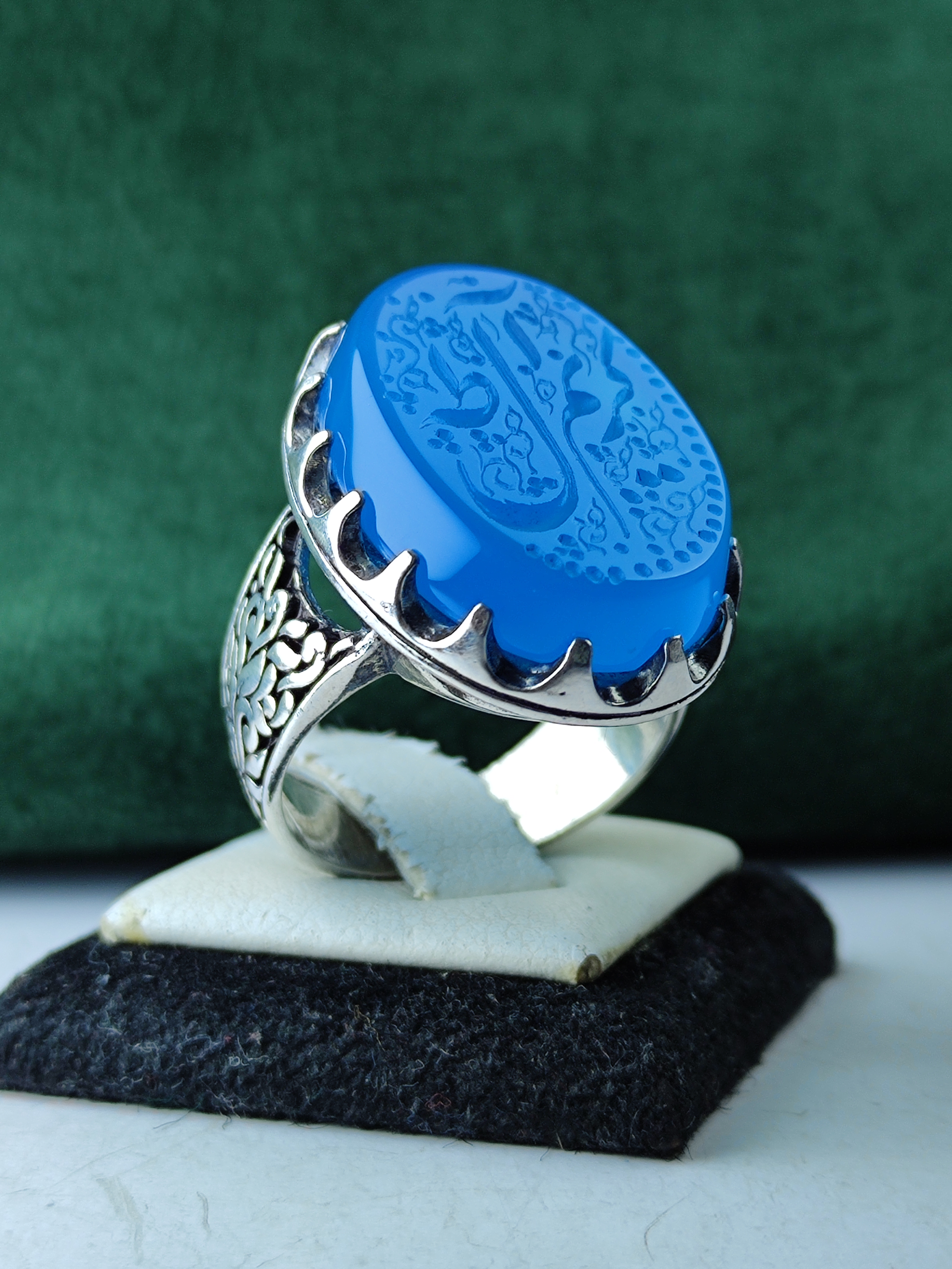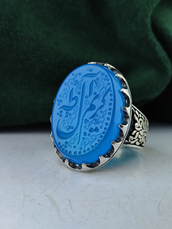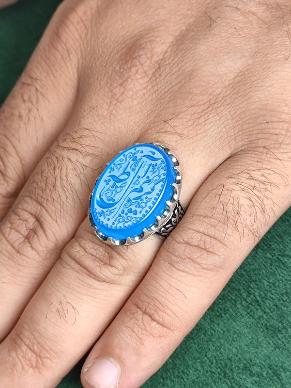 با انگشتر نقره عقیق آبی، جلوهای از اصالت و زیبایی را به دستهای خود بیفزایید! این شاهکار با حکاکی "کریم آل طه" و رکاب صفوی چنگی، از هنر ایرانی الهام گرفته است. طرح قلمزنی ماشینی آن، ترکیب بینظیری از هنر و صنعت است که هر بینندهای را مجذوب خواهد کرد. افزودهای ایدهآل برای هر مجموعه جواهرات!