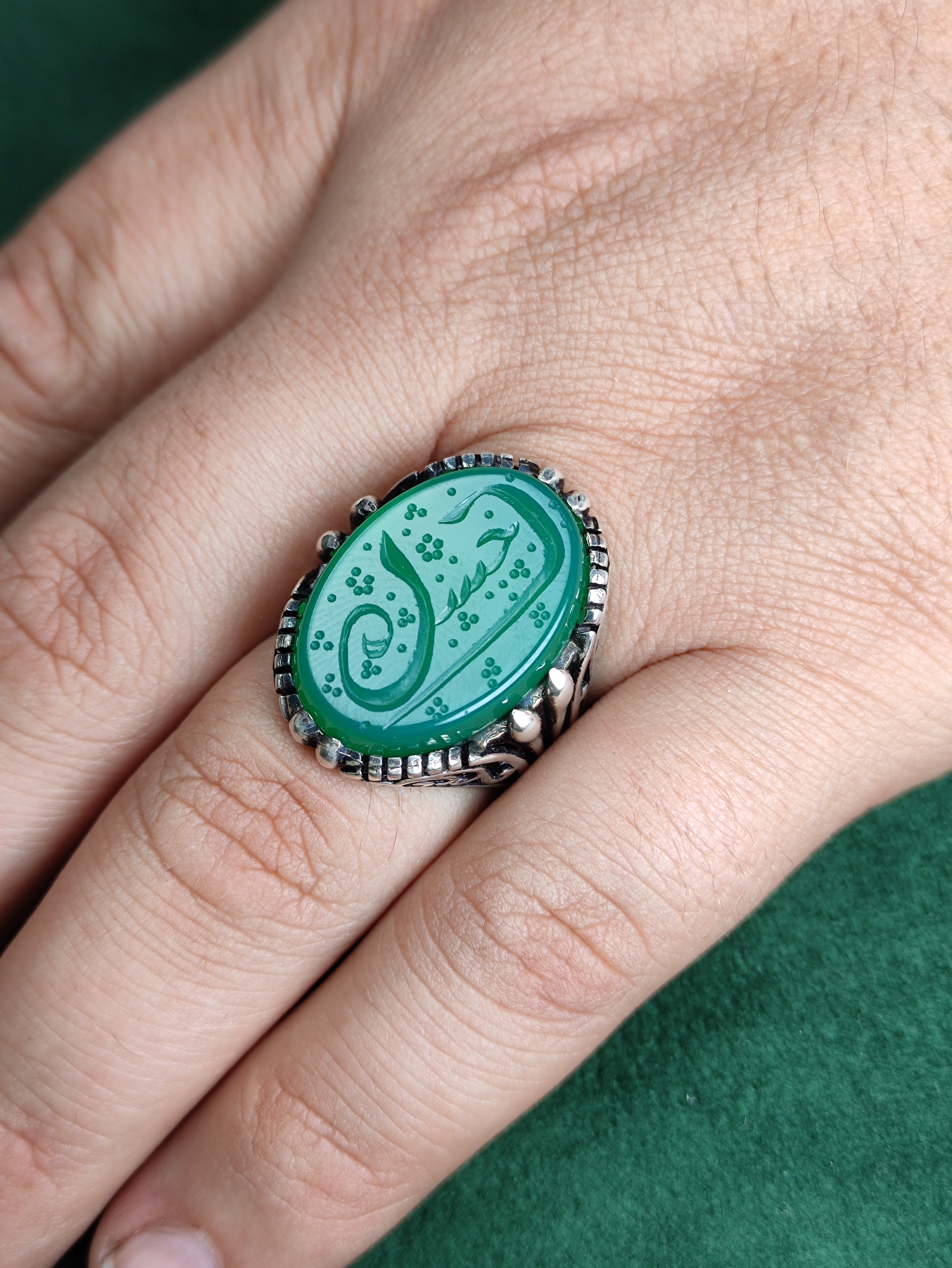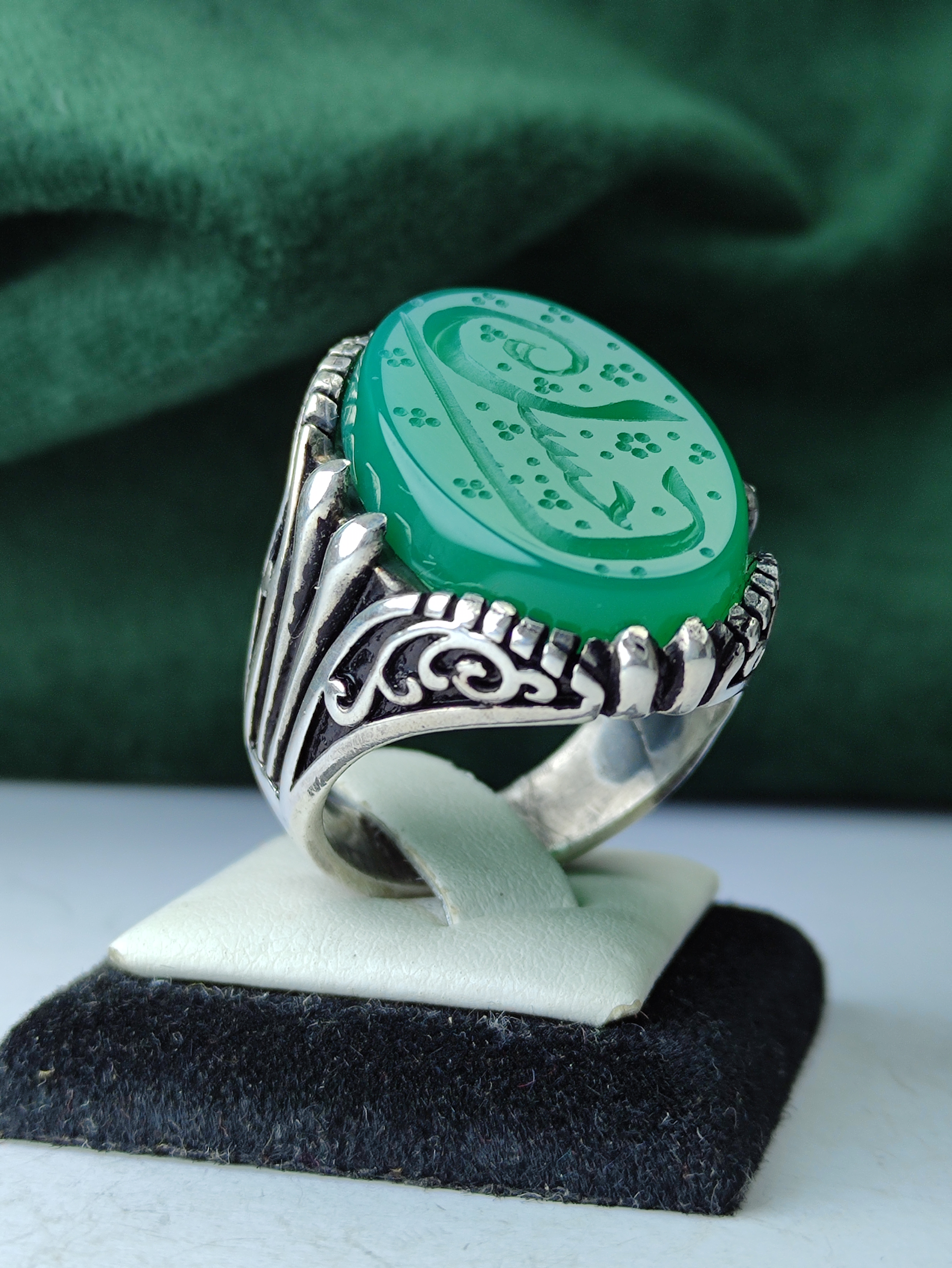تجربهای از شکوه و زیبایی با انگشتر نقره عقیق سبز و حکاکی یا حسن (ع) را تجربه کنید. این انگشتر با رکاب فیلی هشت چنگ و طرح قلمزنی ماشینی، ترکیبی از هنر و دوام است. انتخابی بینظیر برای عاشقان جواهرات نفیس که به دنبال جلوهای خاص و اصیل هستند. هماکنون خرید کنید و به دنیای زیبایی بپیوندید!