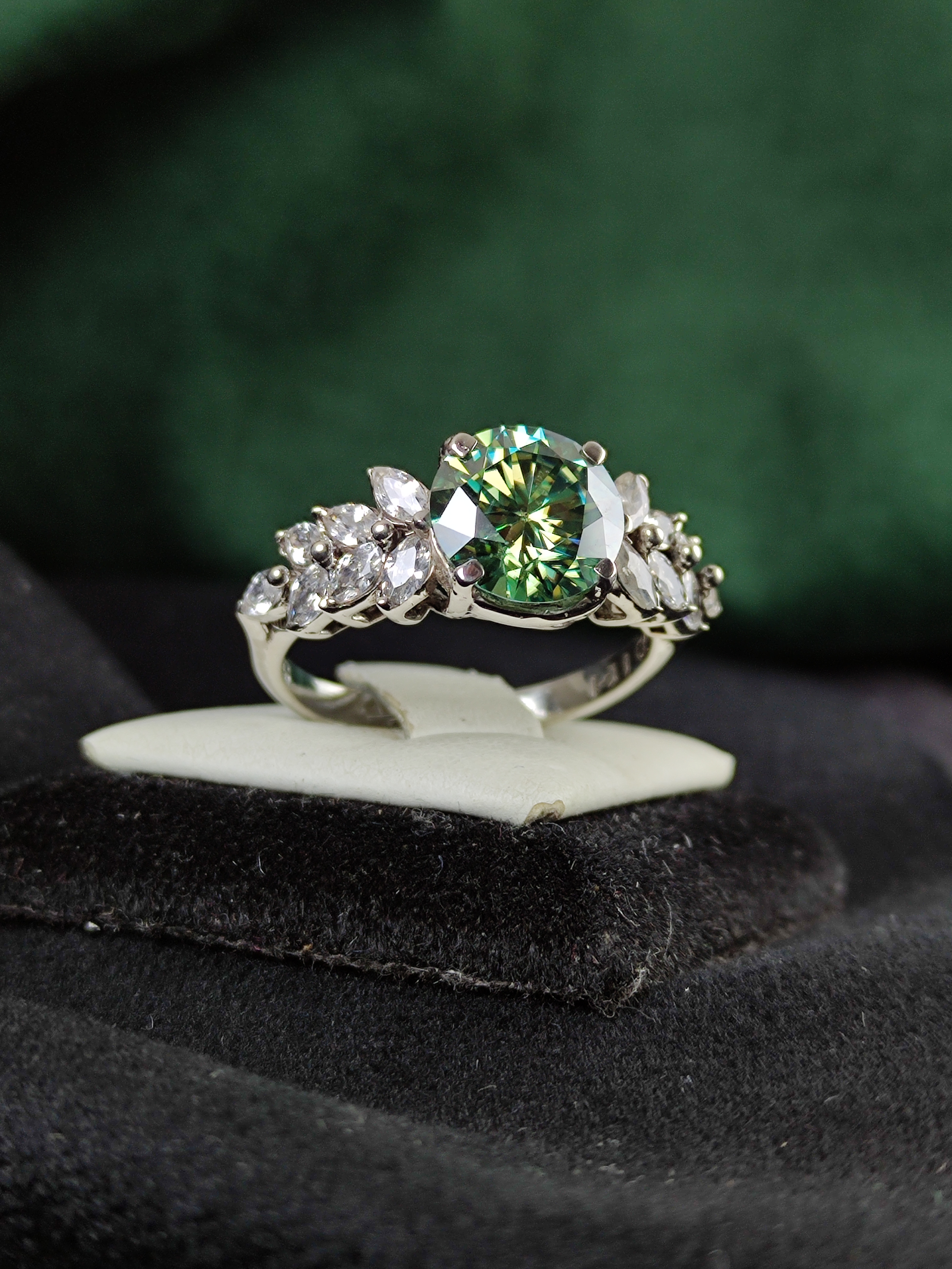 با انگشتر نقره جواهری موزانایت سبز اصل، زیبایی و جذابیت بینظیر را به دست آورید! این انگشتر زنانه با سنگ موزانایت سبز چشمنواز و طراحی خاص، جلب توجه همه را به شما تضمین میکند. مناسب برای هر مناسبت و استایلی که میخواهید به آن جلوهای خاص ببخشید. همین حالا دست به کار شوید و زیبایی را تجربه کنید!