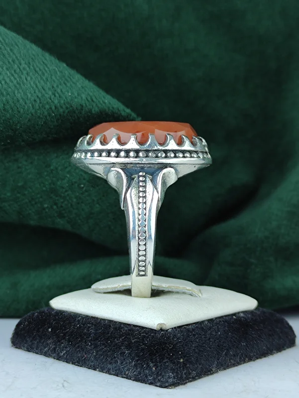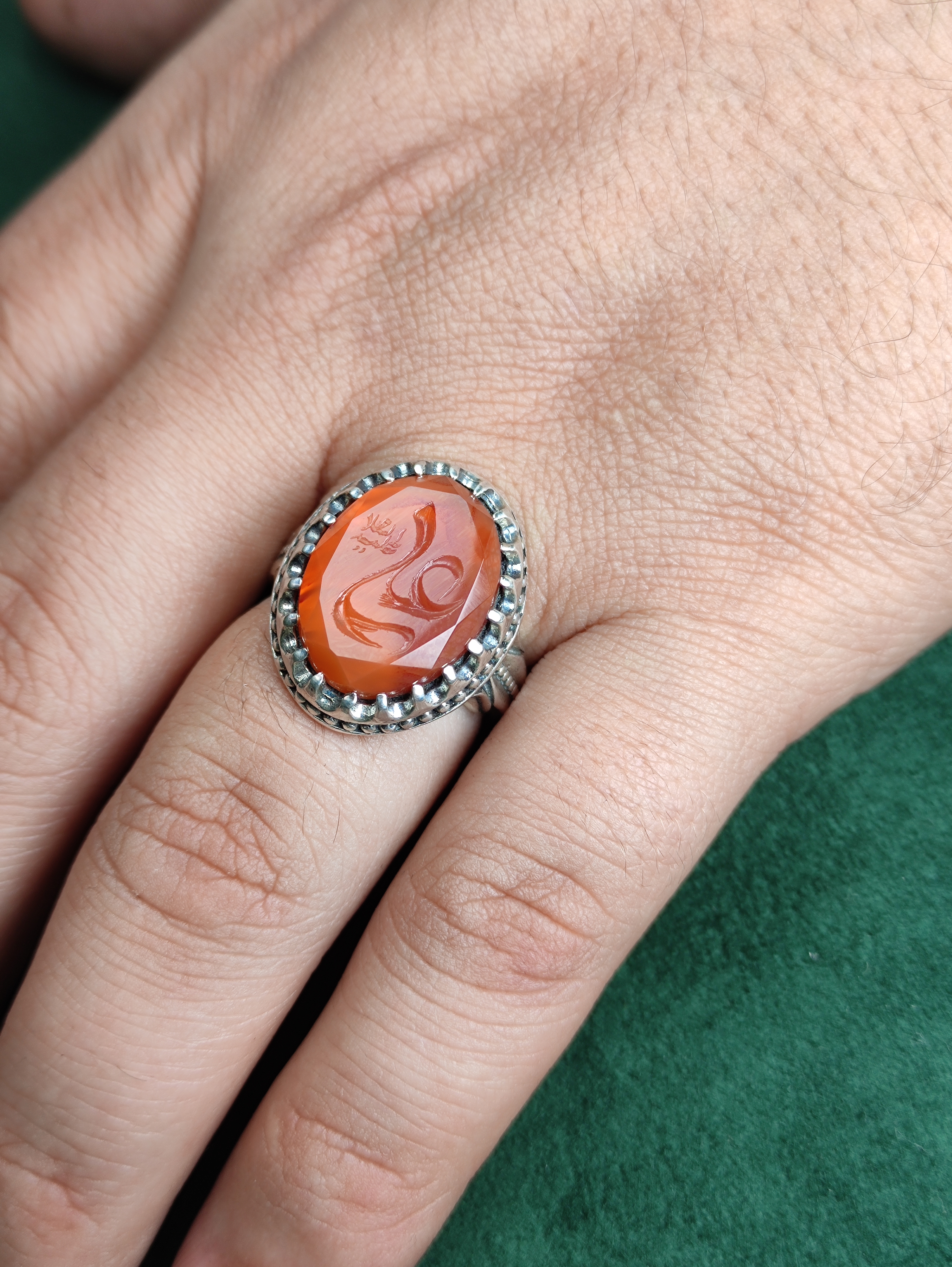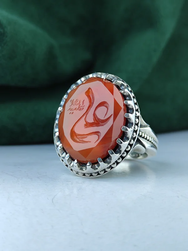 این انگشتر بینظیر نقره با عقیق یمنی اصل و حکاکی زیبای "علی (ع)" با طراحی الماس تراش و رکاب صفوی چنگی، تلفیقی از هنر و اصالت است. انتخابی ماندگار و شگفتانگیز که جذابیت را به دستان شما میبخشد. فرصت را از دست ندهید و این جواهر ویژه را به مجموعه خود اضافه کنید.