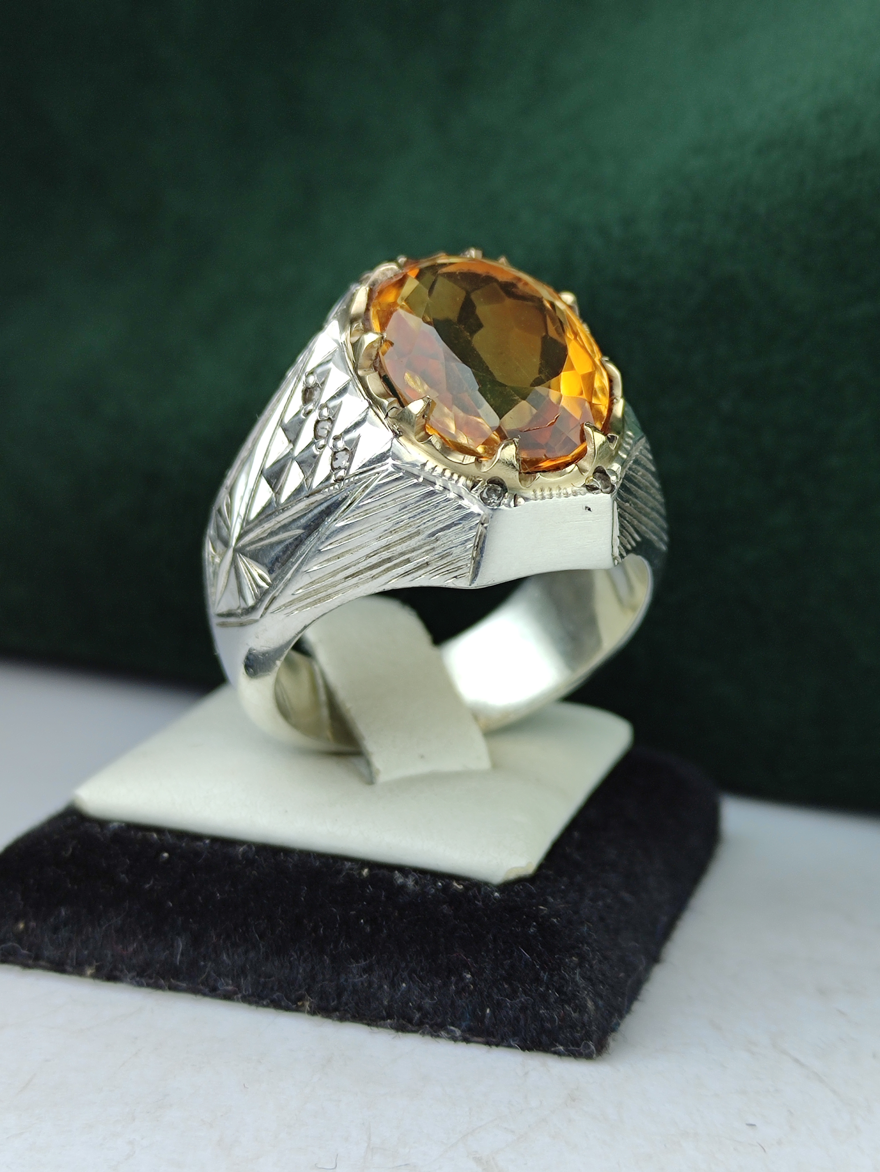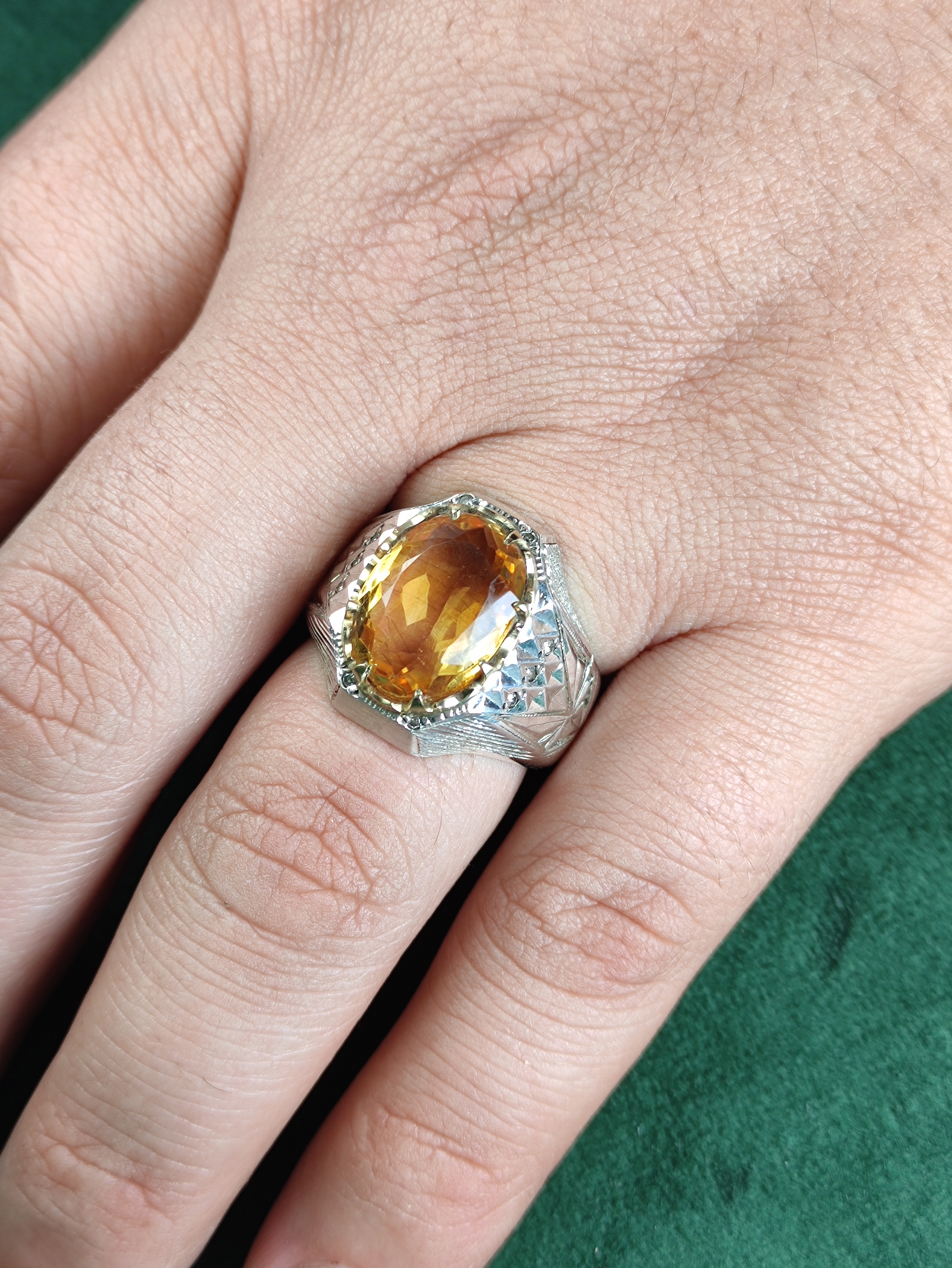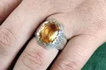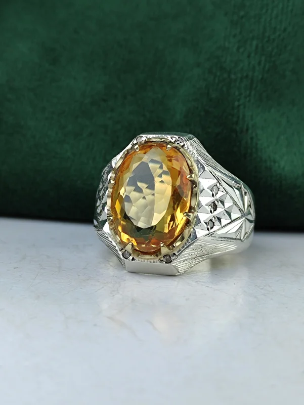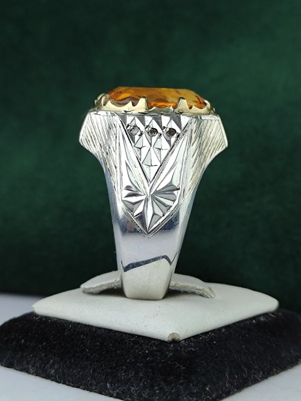 با این انگشتر نقره سیترین طلایی اصل، زیبایی و اصالت را به دست آورید! طراحی دستساز با رکاب فیلی چنگی و مخراج ده قطعه برلیان خالص، جلوهای بینظیر به دستان شما میبخشد. آینهکاری درخشان، این انگشتر را به انتخابی لوکس برای هر مناسبت تبدیل میکند. همین حالا خرید کنید و درخشش را تجربه کنید!