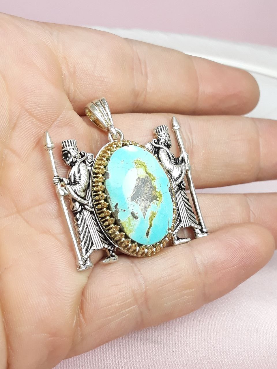 با مدال فیروزه نیشابوری اصل، زیبایی و اصالت را به گردن خود بیاویزید. این جواهر با طرح هخامنشی و چنگ برنجی، نمادی از هنر و فرهنگ باستانی ایران است که به شما شکوه و اصالت میبخشد. جلوهگری بینظیر و ارزش تاریخی این مدال، هر نگاه را مجذوب خود میکند. زیبایی را با ما تجربه کنید!