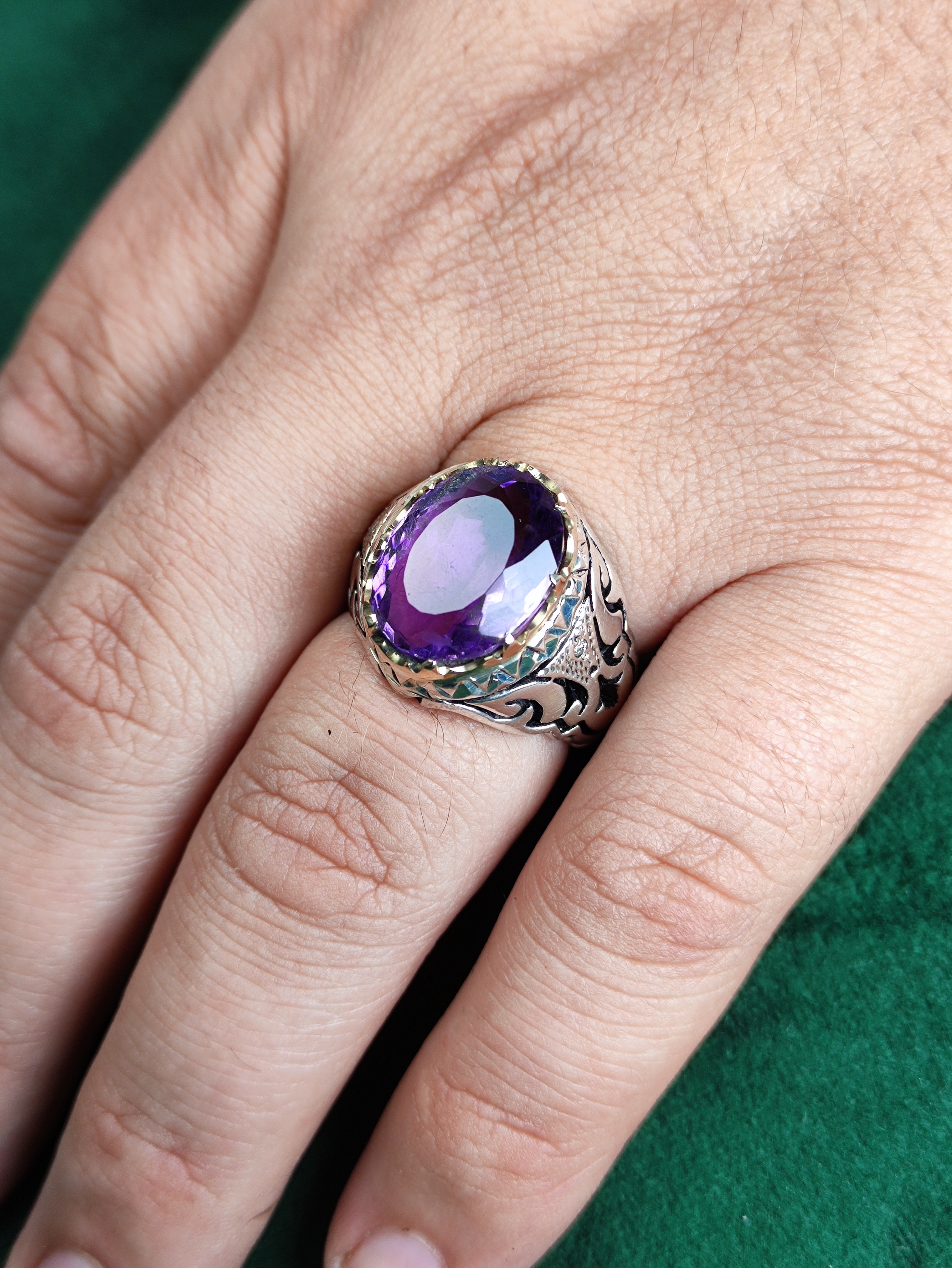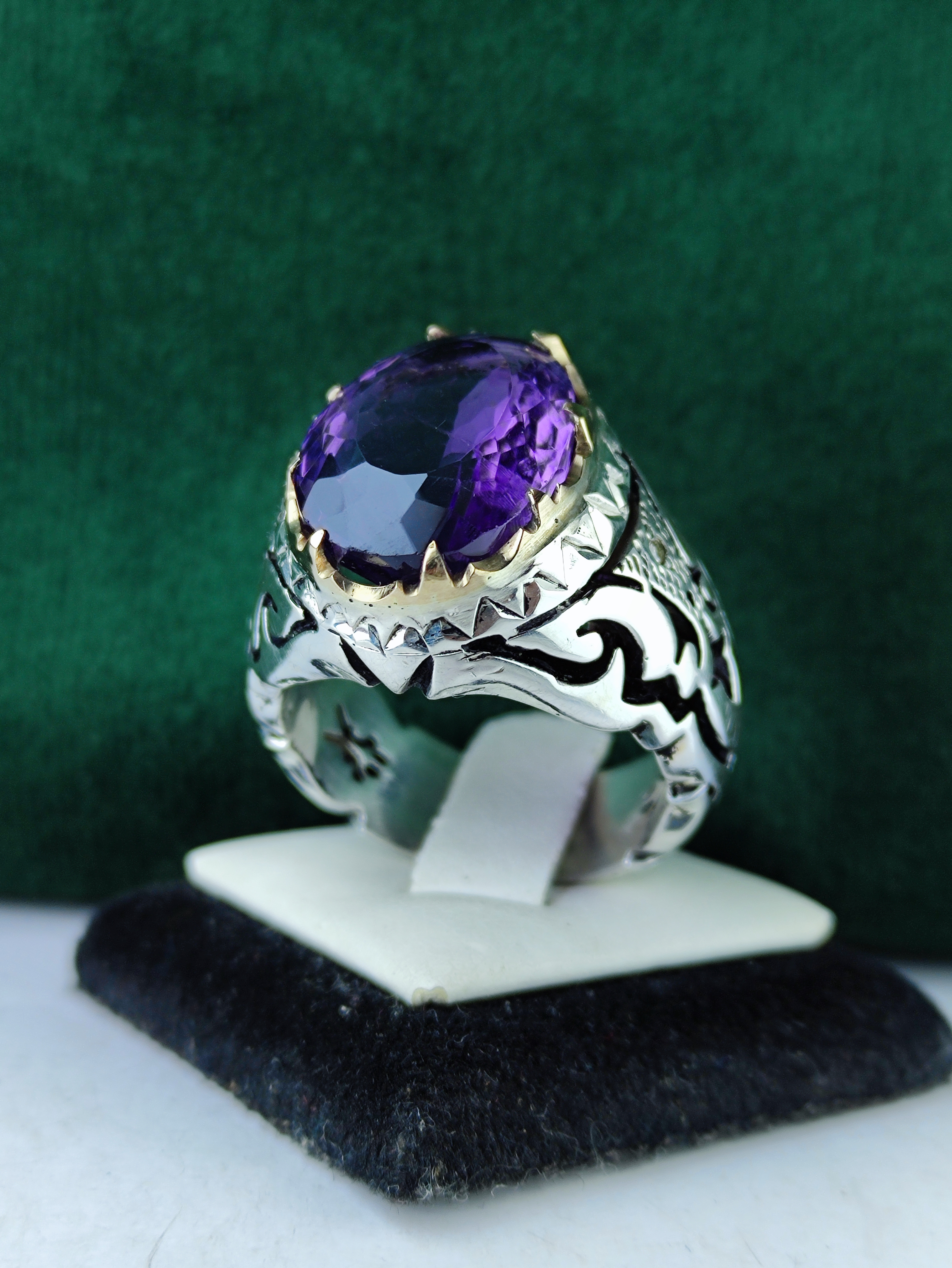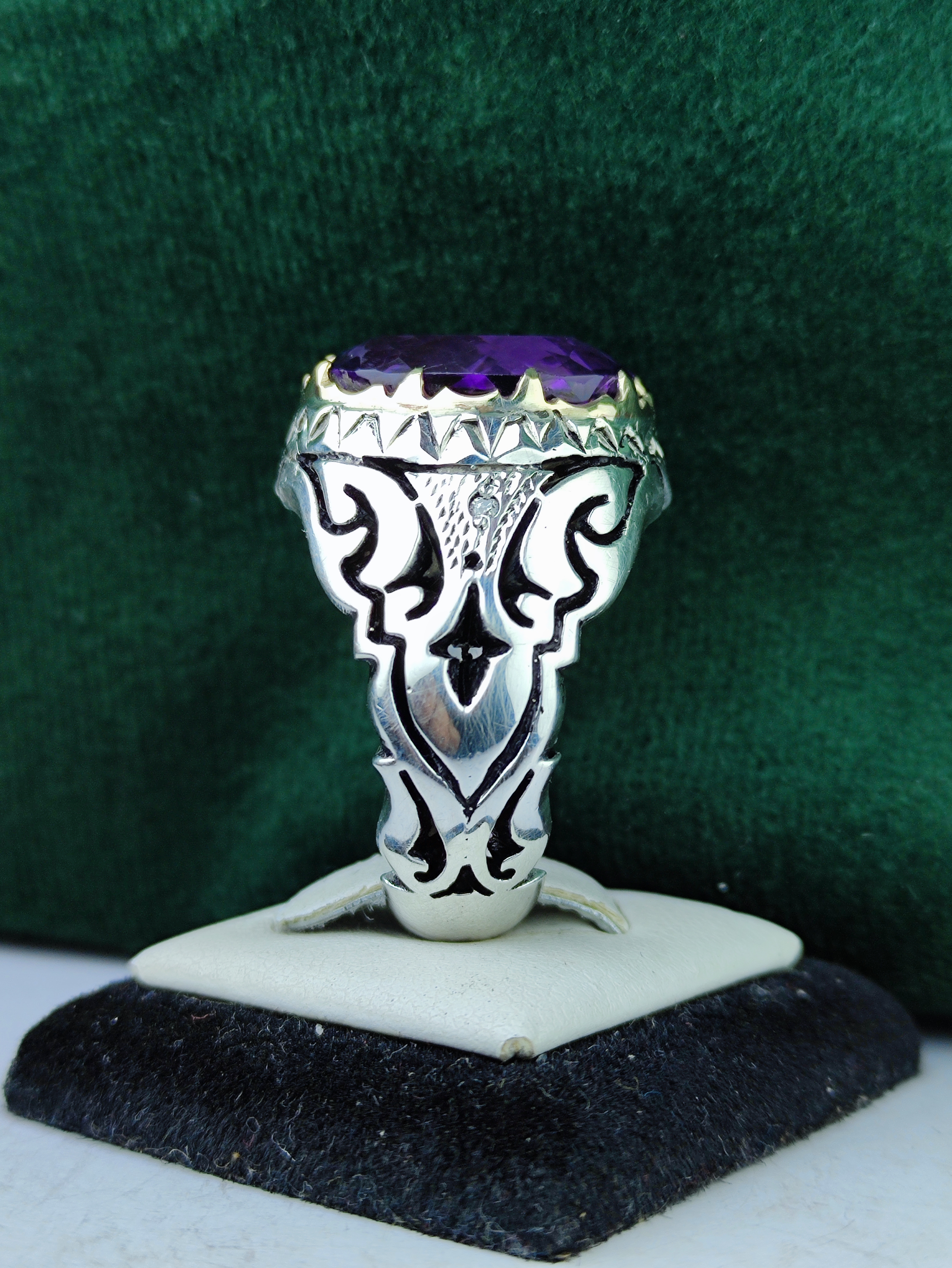 با این انگشتر نقره آماتیس اصل، زیبایی و اصالت را به دستان خود هدیه دهید! مخراجی دوتکه برلیان اصل و رکاب فیلی چنگی دستساز با آینه کاری خیرهکننده، این انگشتر را به انتخابی بینظیر برای خاصپسندان تبدیل کرده است. خرید این جواهر، سرمایهگذاری در جذابیت و شیکپوشی شماست.
