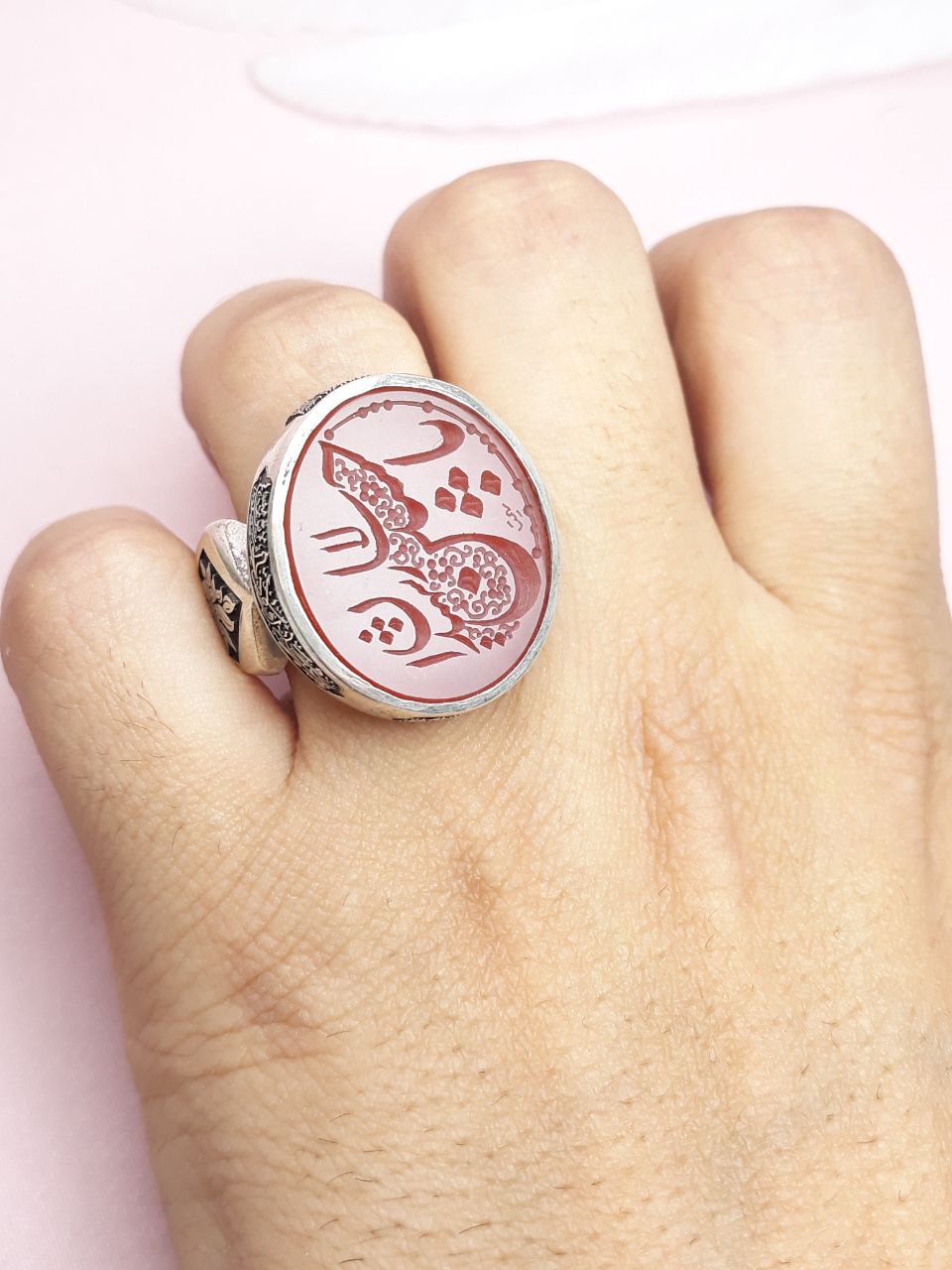 با انگشتر نقره سرخ حکاکی "یا حسین، سالار شهیدان"، جلوهای از عشق و ایمان را به انگشتان خود بیاورید. این انگشتر بینظیر، ترکیبی از هنر دست و معنویت است که با طراحی منحصر به فرد خود، هر نگاهی را جذب میکند. اکنون خرید کنید و حال و هوای روحانی را به استایل خود اضافه کنید.