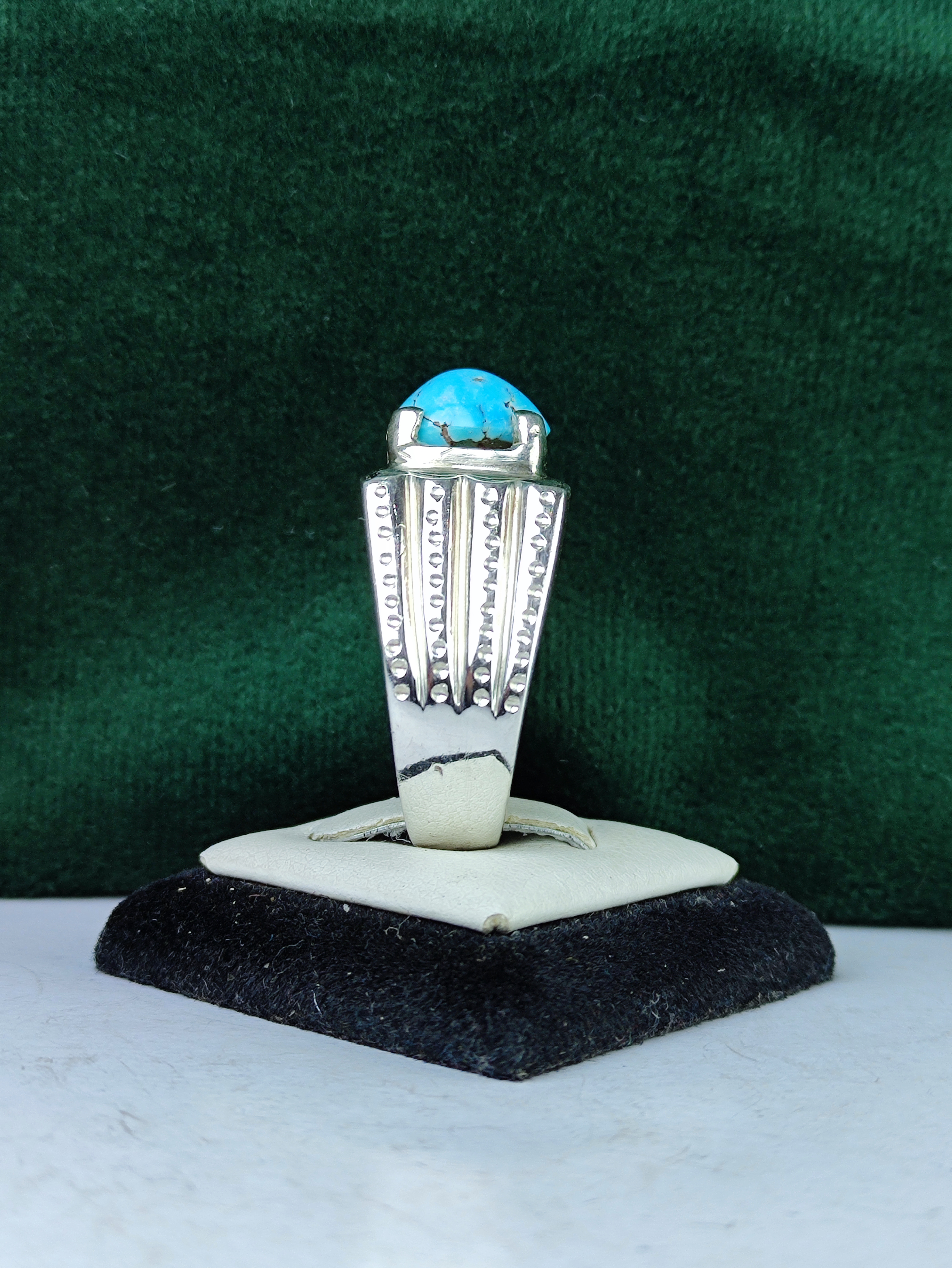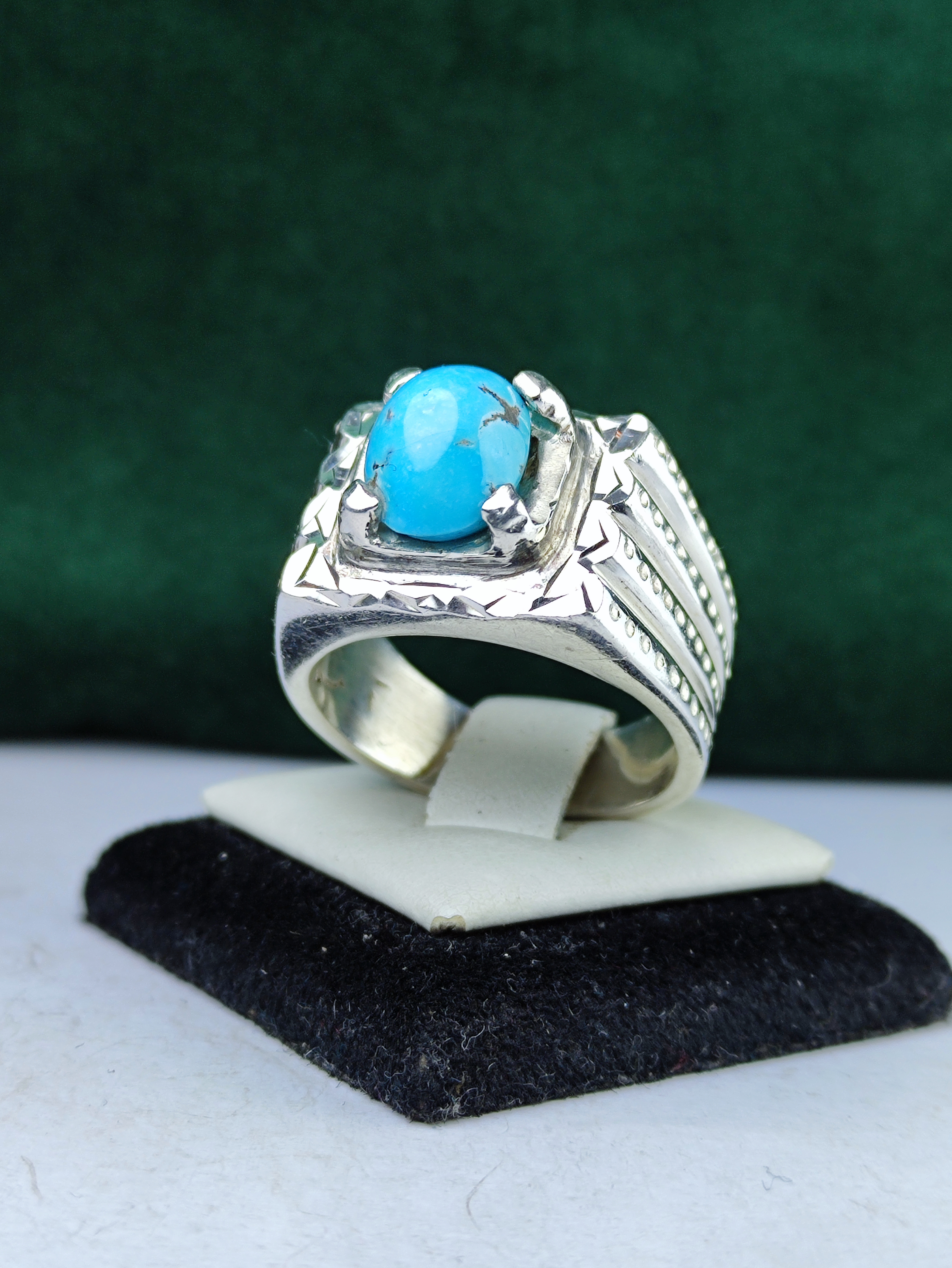 این انگشتر نقره فیروزه نیشابوری اصل با رکاب چهار چنگ دست ساز، تلفیقی از زیبایی و هنر ایرانی است. سنگ فیروزه با رنگ آبی خاص خود، نماد آرامش و آگاهی است و به استایل شما جذابیتی بینظیر میبخشد. با خرید این اثر هنری، احساس خاص بودن را در هر لحظه تجربه کنید!