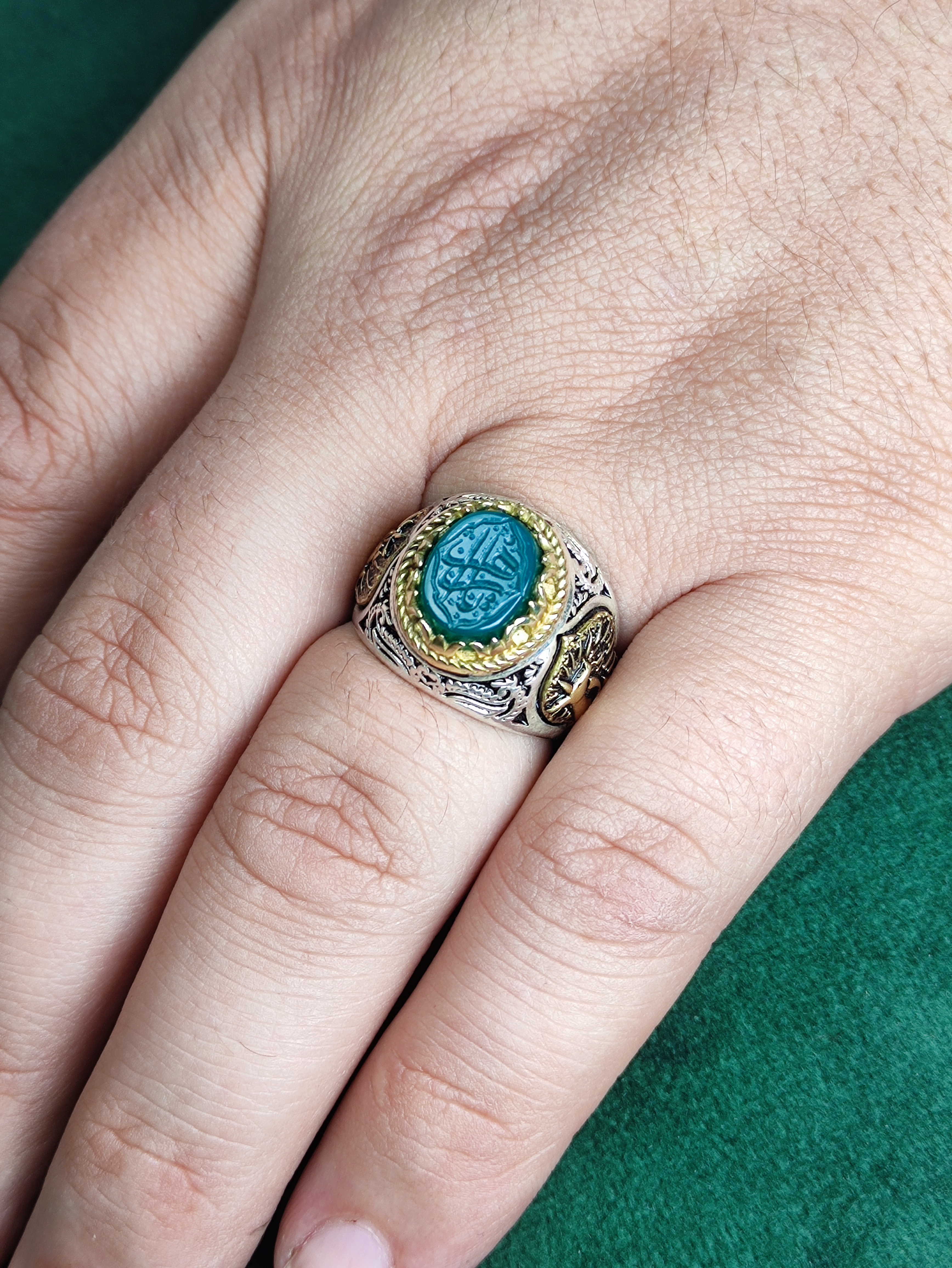 با انگشتر نقره عقیق سبز با حکاکی زیبا "یا زهرا (س)"، به جلوهای از اصالت و هنر دستساز دست یابید. این انگشتر با رکاب فیلی چنگی و طرح قلمزنی ماشینی، ترکیبی از سنت و مدرنیته را ارائه میدهد. بهترین انتخاب برای افرادی که به دنبال اصالت و زیبایی خاص هستند. همین حالا خرید کنید و متمایز باشید!