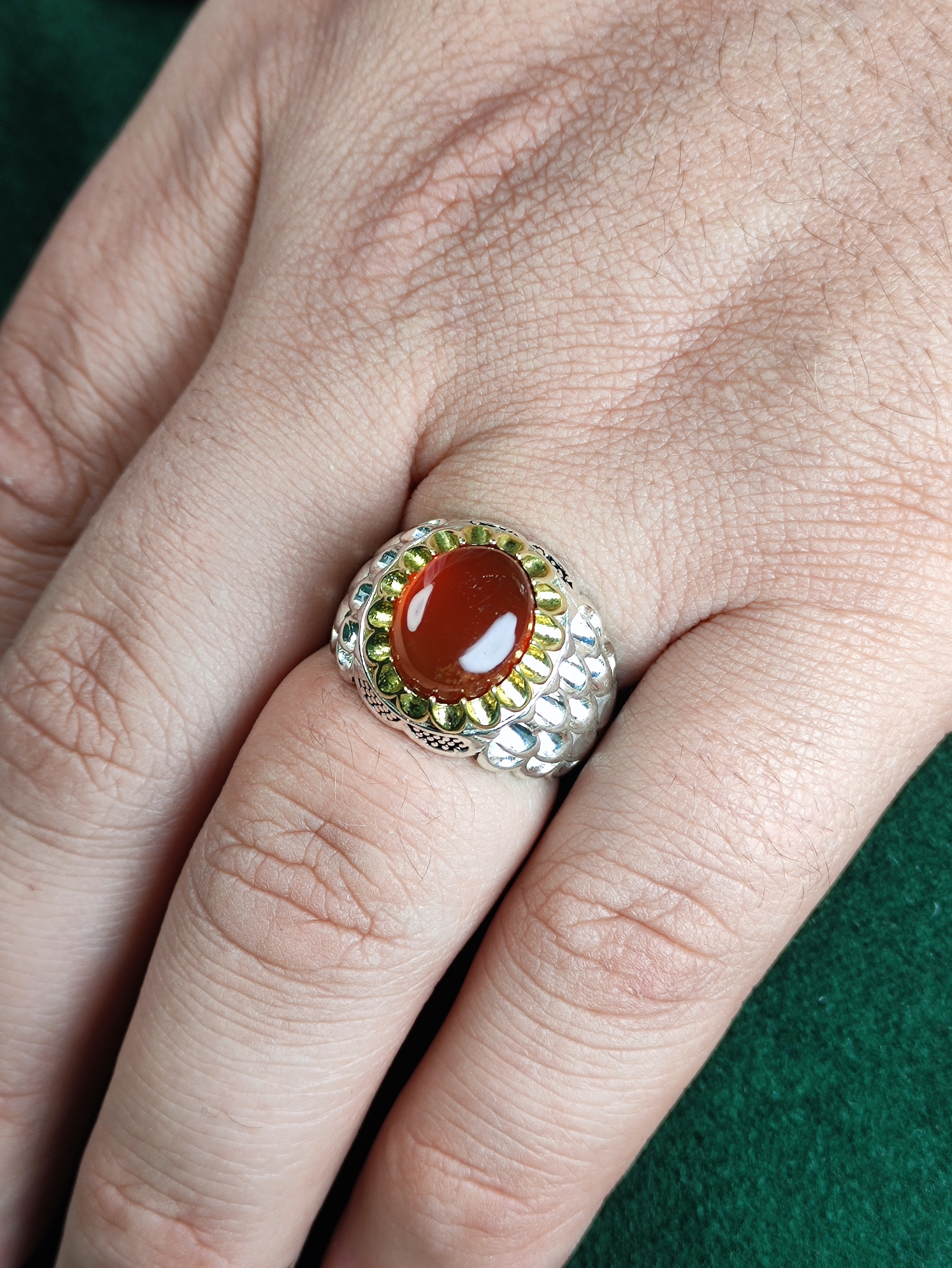 افزایش جذابیت و شیکپوشی با انگشتر نقره عقیق یمنی اصل! این انگشتر با رکاب فیلی چنگی و طرح پولکی، جلوهای لوکس و خاص به دستان شما میبخشد. طراحی ماشینی ماهرانهی آن، انتخابی ایدهآل برای مناسبتهای ویژه و استفاده روزمره. همین امروز این اثر هنری را به مجموعه خود اضافه کنید و بدرخشید!