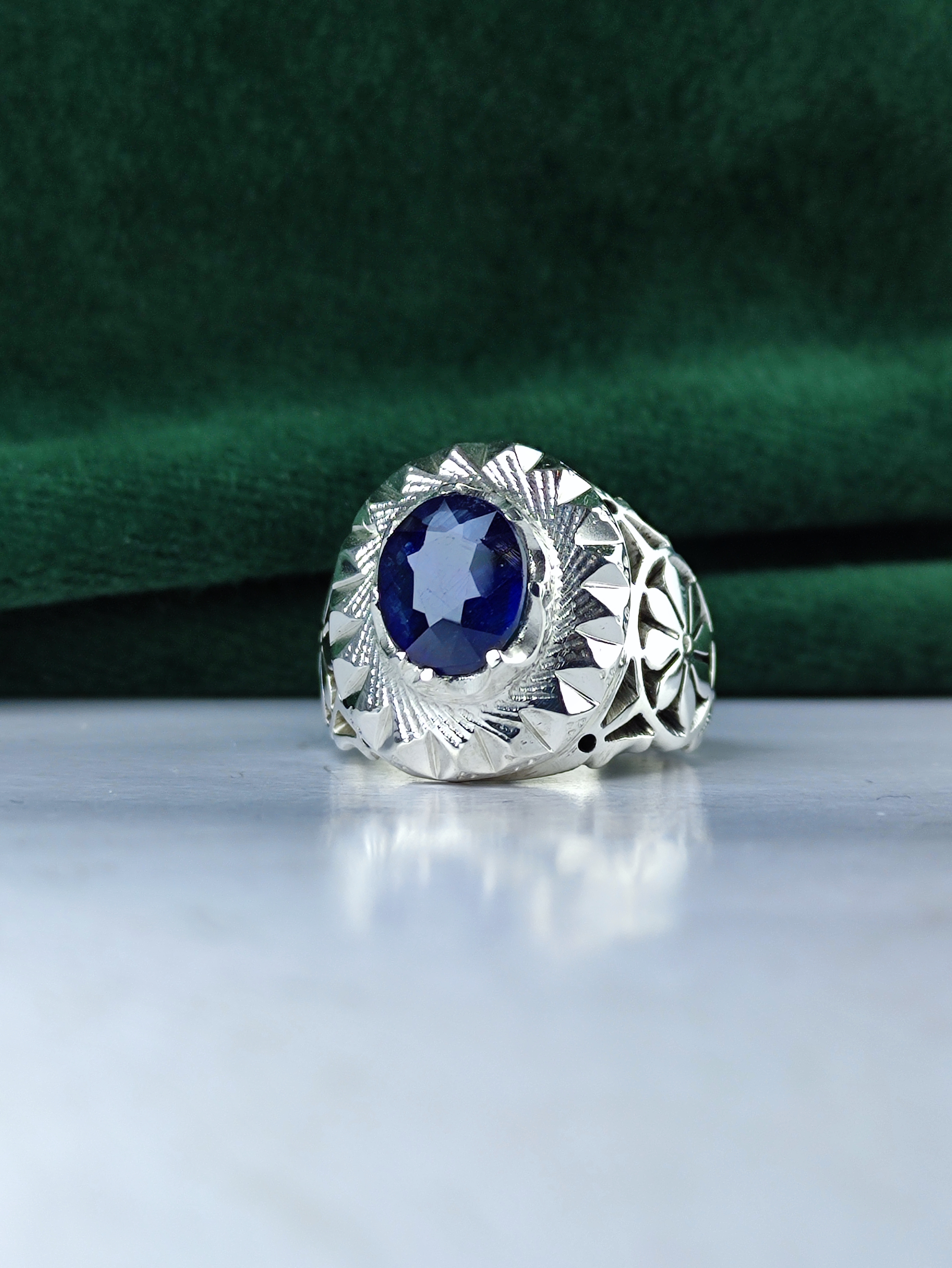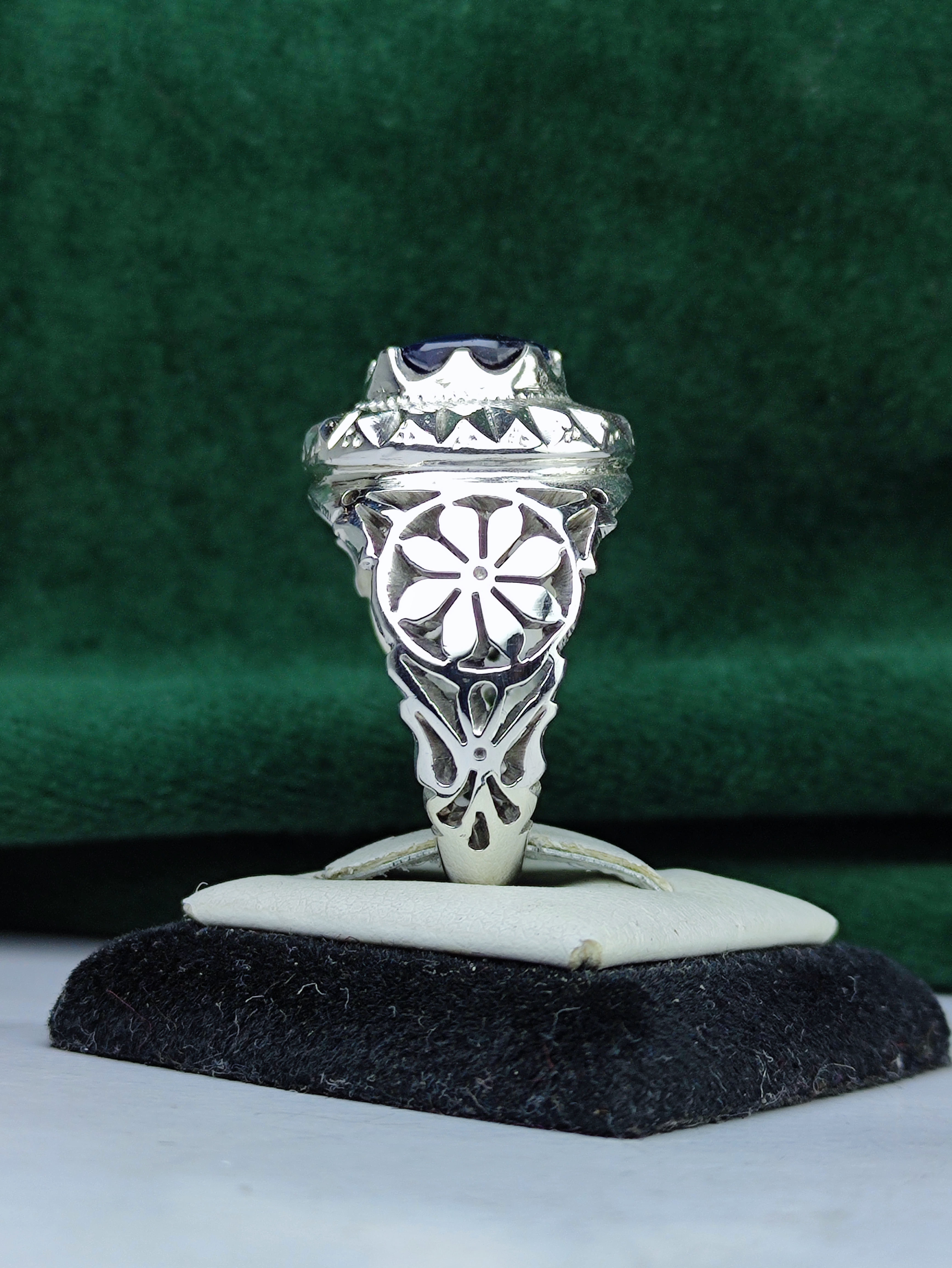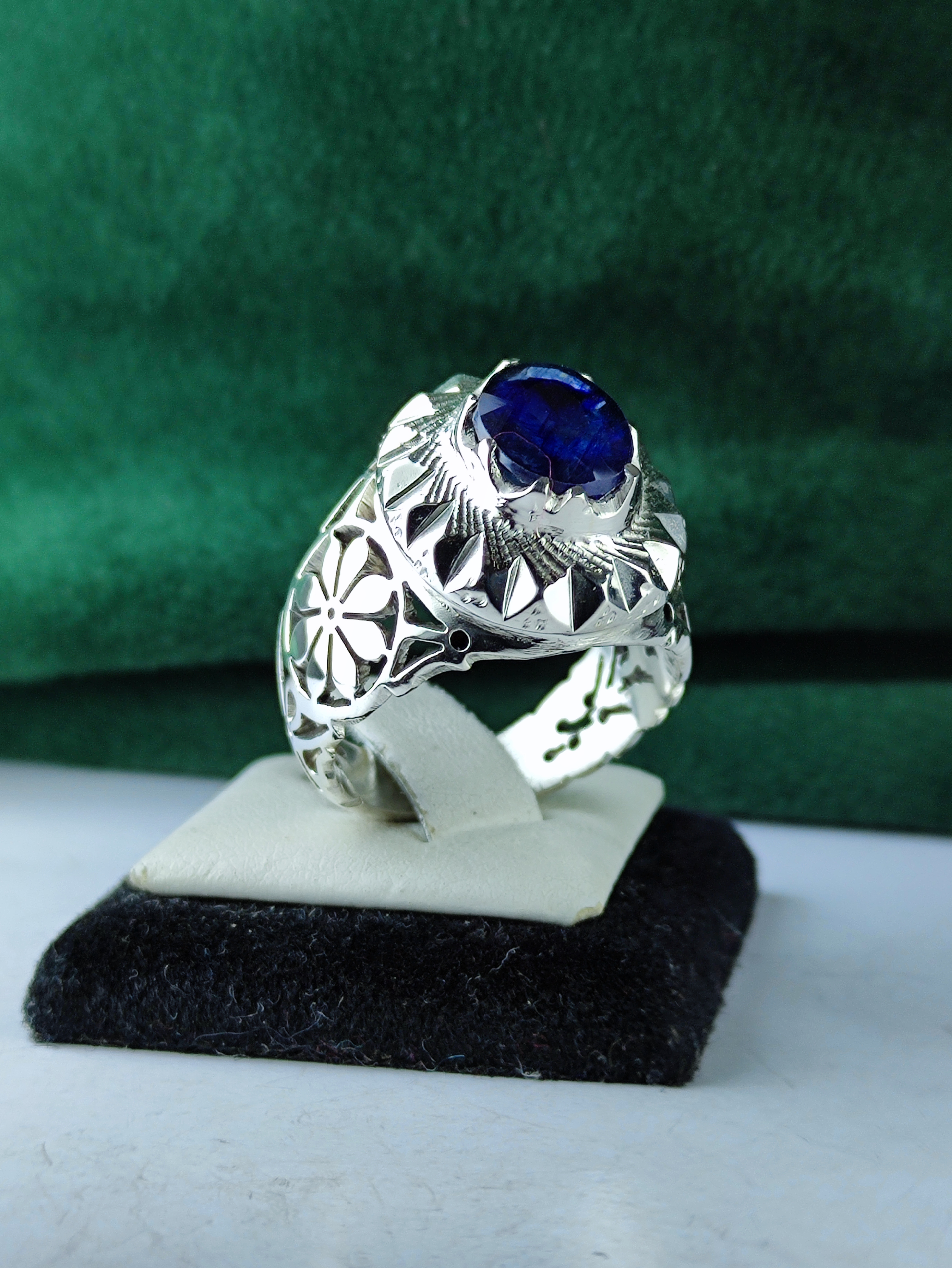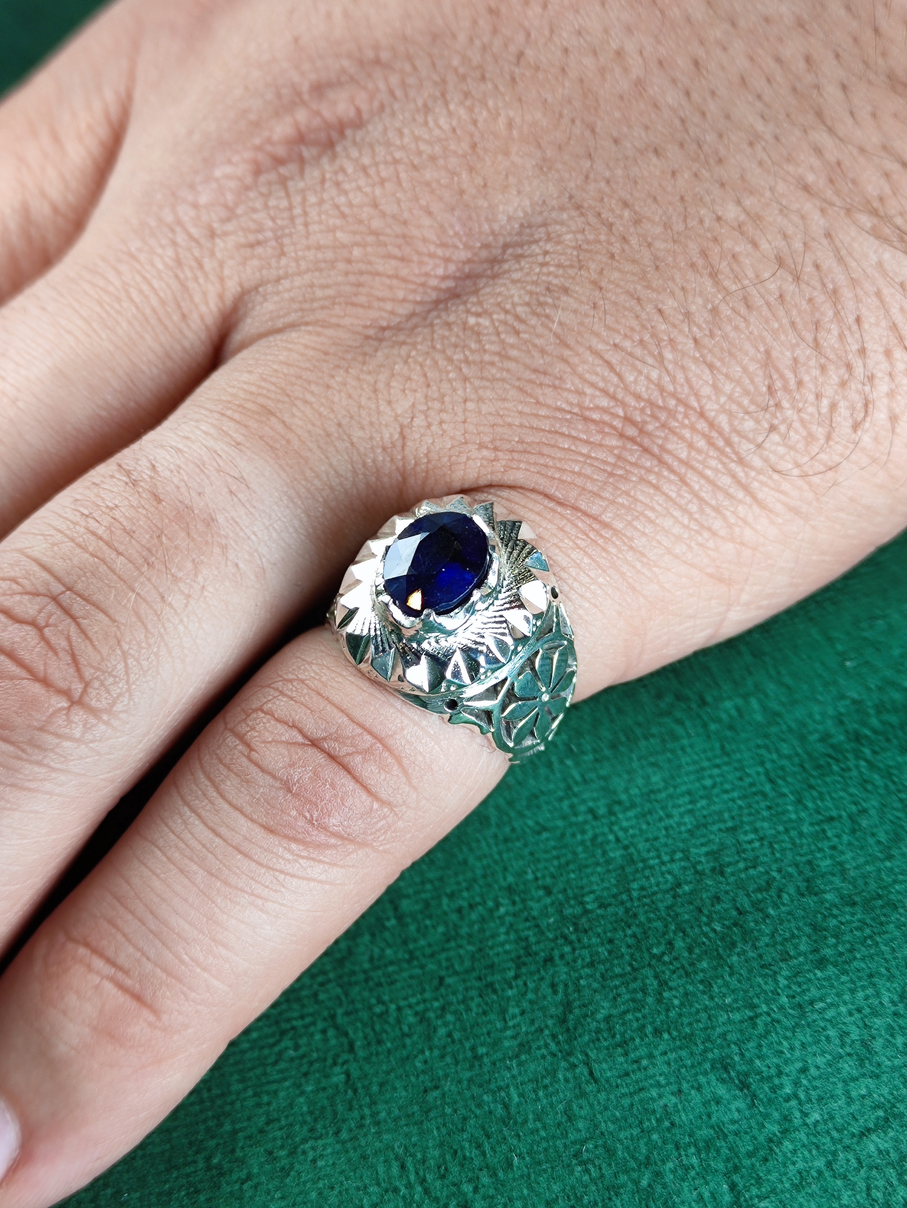 این انگشتر نقره با یاقوت کبود اصل، زیبایی و اصالت را به انگشتان شما میآورد. رکاب فیلی چنگی دستساز با شبکه و آینهکاری بینظیر، این جواهر را به یک انتخاب استثنایی تبدیل کرده است. فرصت را از دست ندهید و این اثر هنری منحصر به فرد را به مجموعه خود اضافه کنید. زیبایی بیپایان در انتظار شماست!