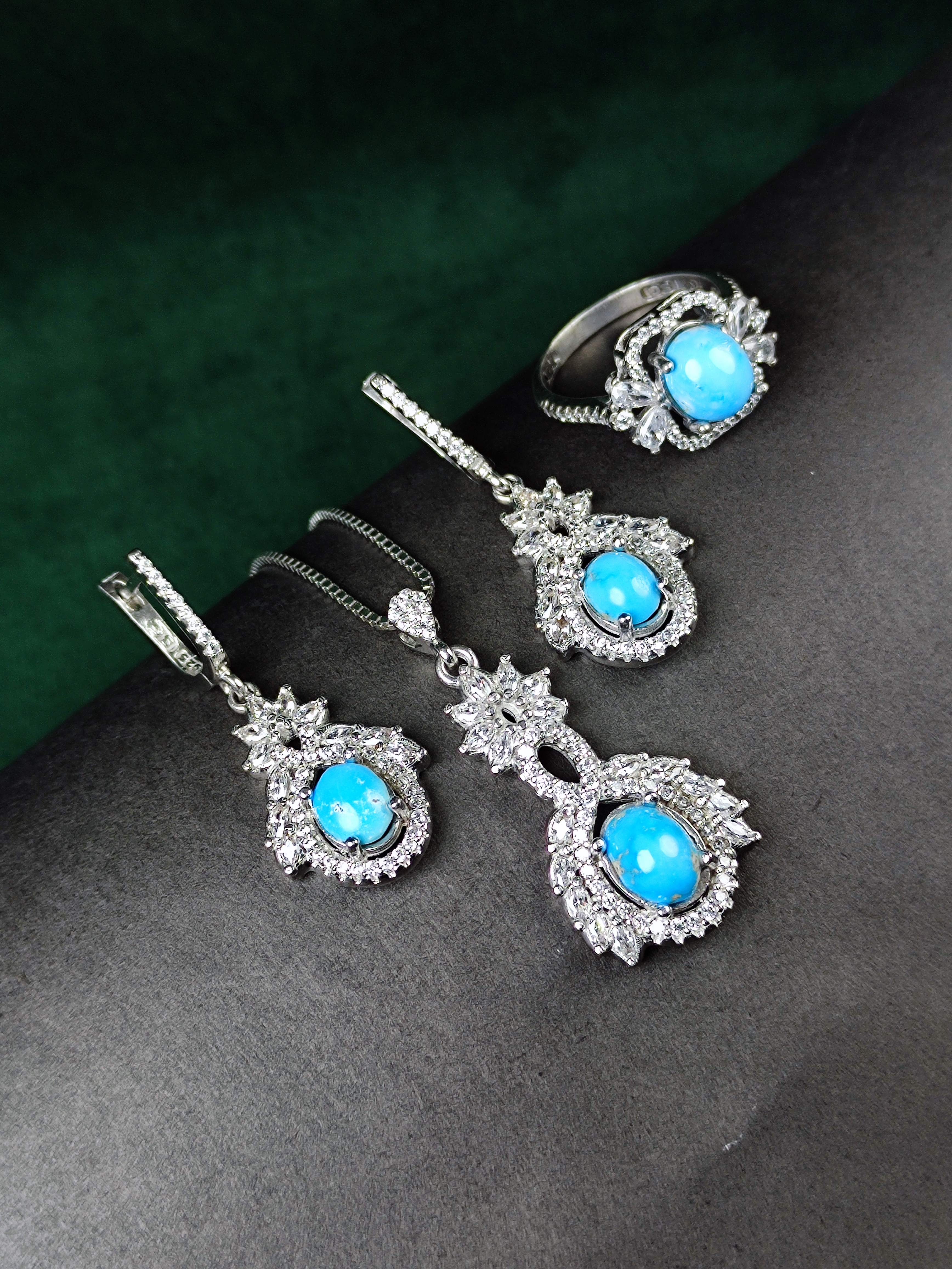 با نیم ست نقره جواهری فیروزه نیشابوری اصل، زیبایی بینظیر و شکوه اصالت را تجربه کنید! این گوهر ارزنده و درخشان، بازتابی از هنر دست و طبیعت ناب است که شما را در مرکز توجه قرار میدهد. انتخابی عالی برای افزایش جذابیت و تکمیل استایل شما. همین حالا سفارش دهید و بدرخشید!