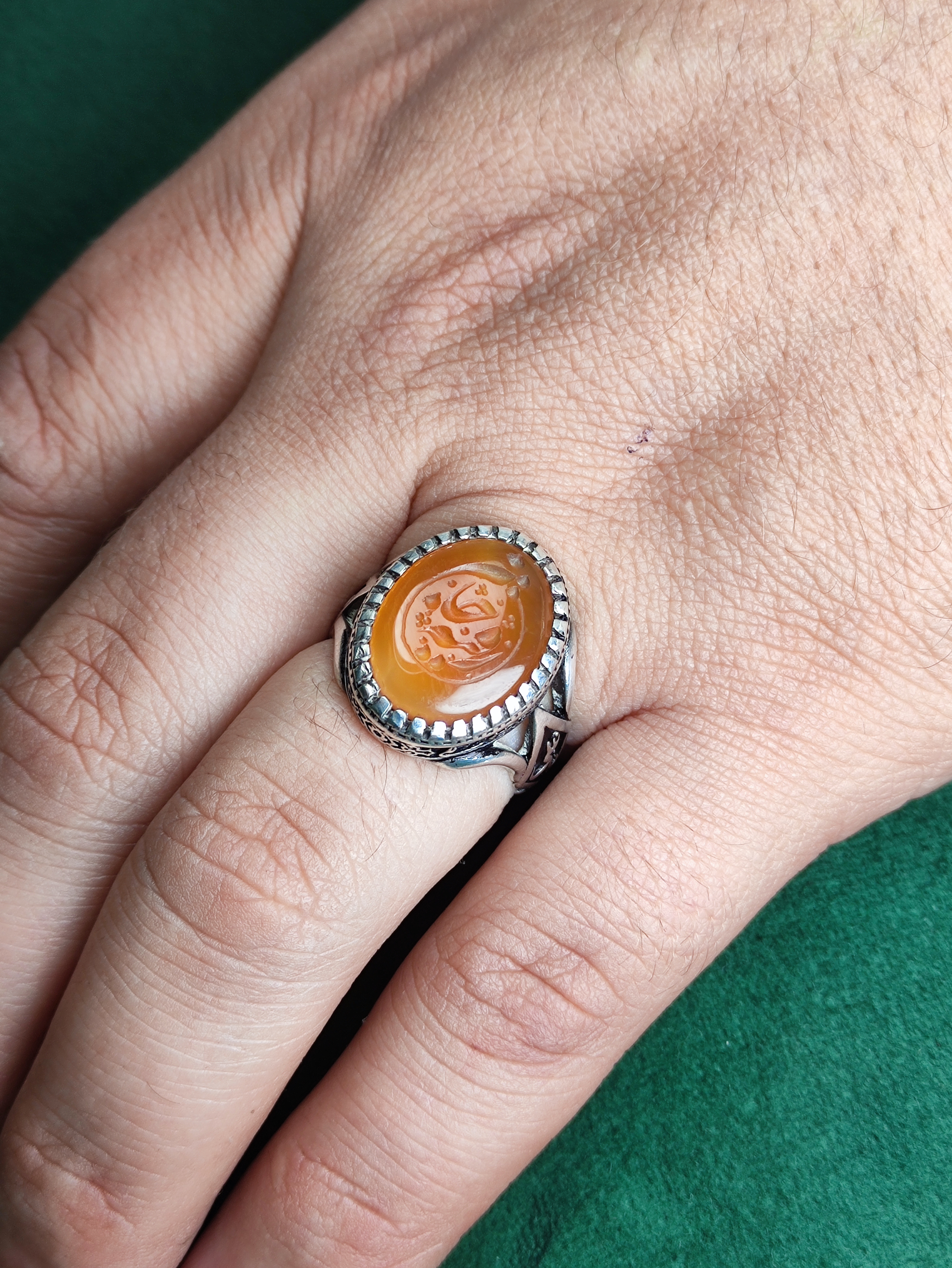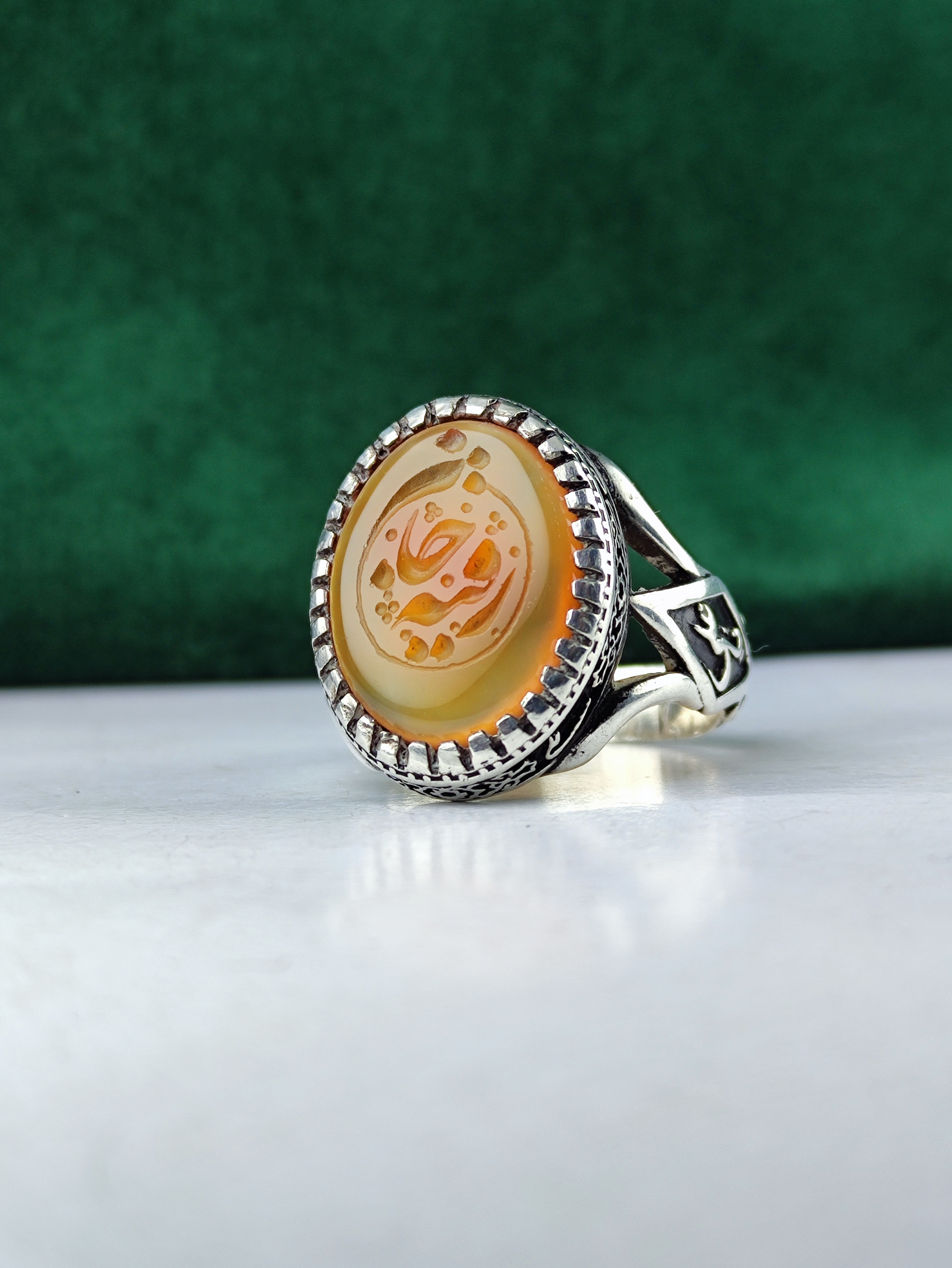با انگشتر نقره عقیق یمنی اصل، شکوه و اصالت را به دستان خود بیاورید. این قطعه هنری با حکاکی زیبای "رقیه جان (س)" و رکاب صفوی چنگی، ترکیبی از هنر و تاریخ است. طرح قلمزنی ماشینی آن، جلوهای بینظیر به ظرافت و استایل شما میبخشد. هدیهای متفاوت و بیهمتا برای کسانی که به دنبال زیبایی و ارزش هستند!