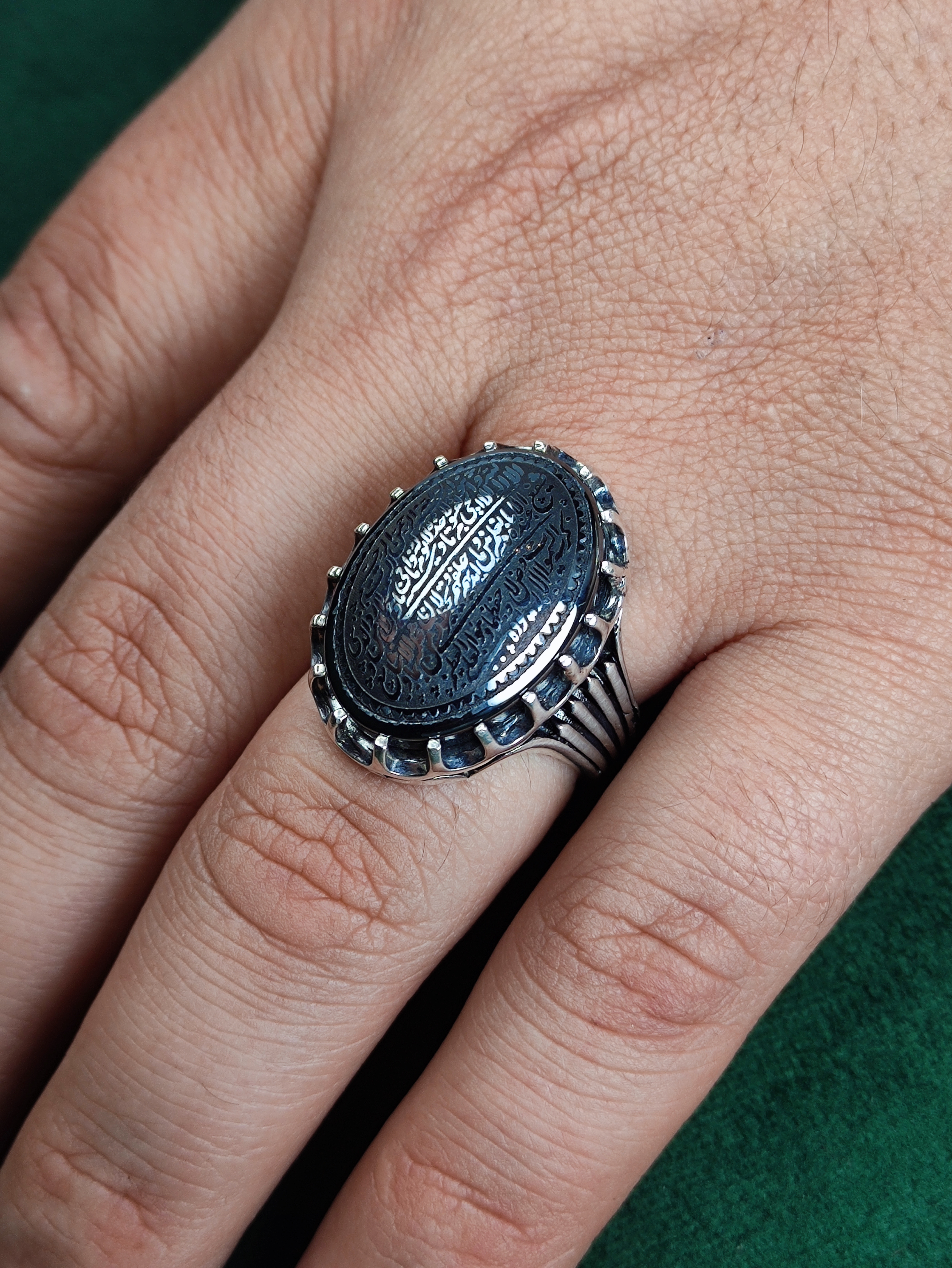با انگشتر نقره حدید اصل، جلوهای از هنر و معنویت را به دستهایتان بیاورید. این انگشتر بینظیر با حکاکی آیةالکرسی و رکاب صفوی چنگی، ترکیبی از زیبایی و اصالت ایرانی است. ساخت با دقت ماشینی، کیفیت و دوام را تضمین میکند. بهترین انتخاب برای دوستداران هنر و فرهنگ ایرانی!