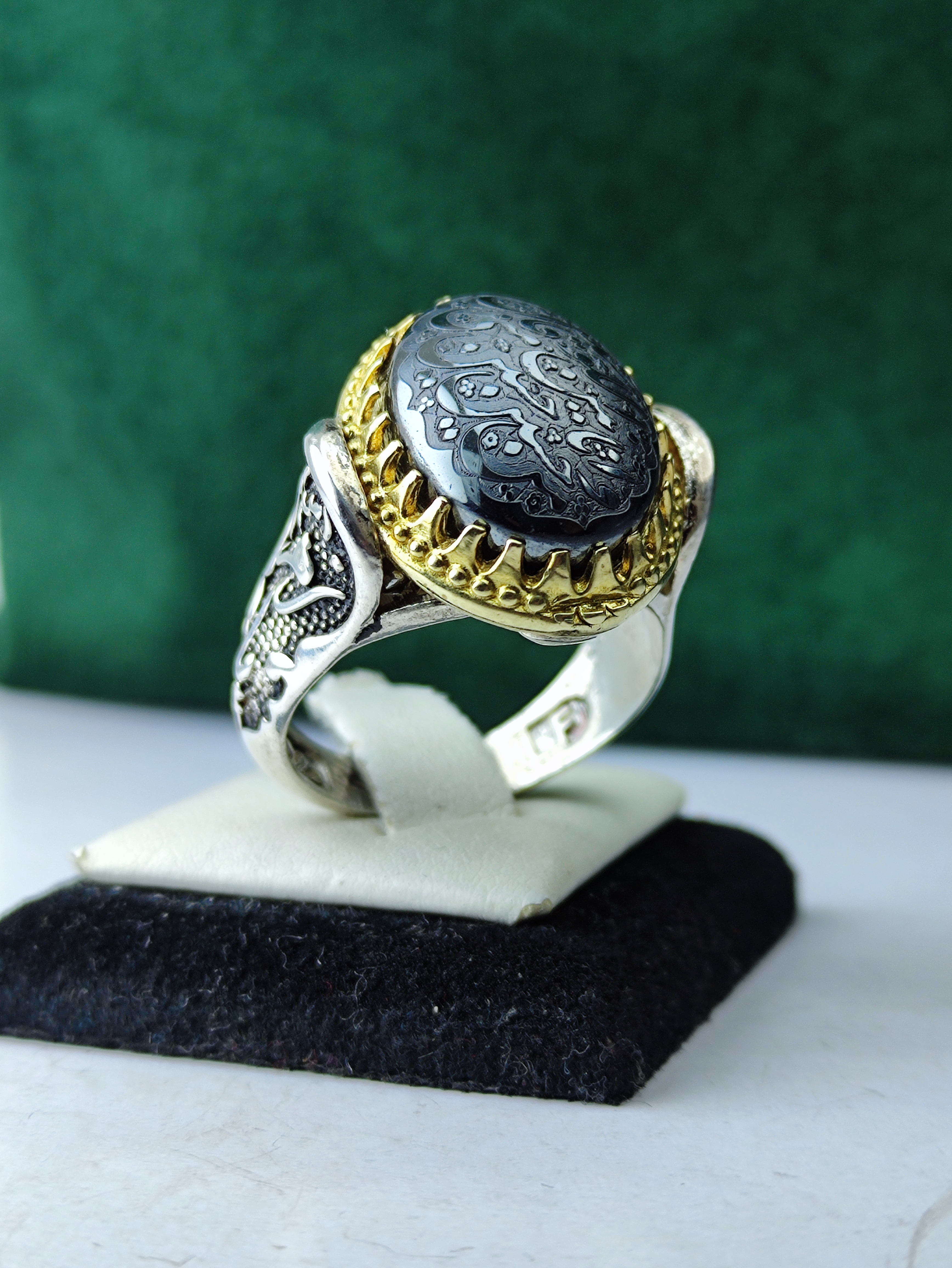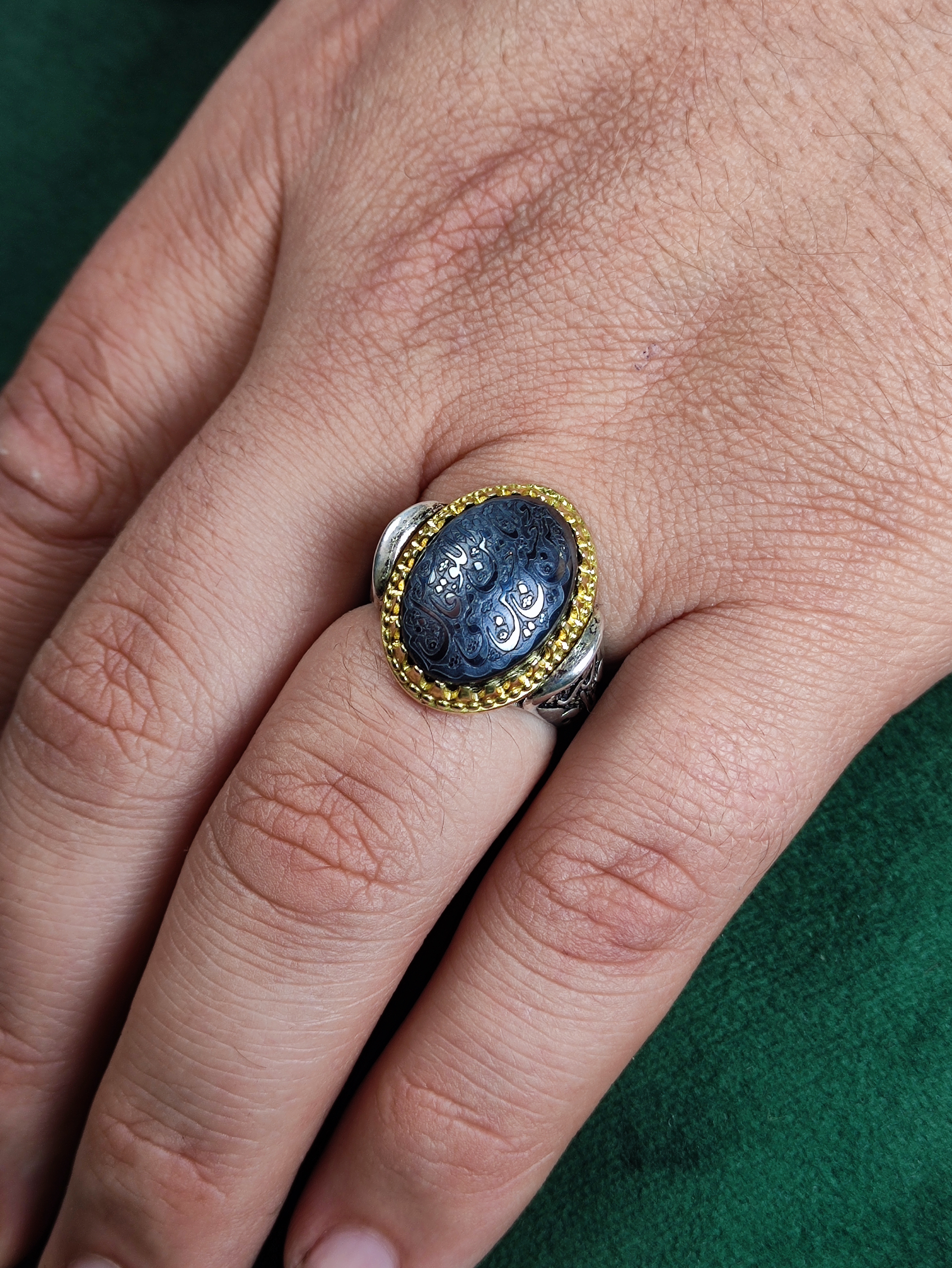 درخشش معنویت را با انگشتر نقره حدید اصل تجربه کنید. این جواهر نفیس با حکاکی "قال سید الکونین حسین منی و انا من حسین(ع)" جلوهای از ارادت و زیبایی را به دستان شما میبخشد. انتخابی خاص برای عاشقان اهل بیت که به سبک و سلیقهای بینظیر میاندیشند. هماکنون خرید کنید و جاذبهای معنوی و شیک به استایل خود ببخشید!