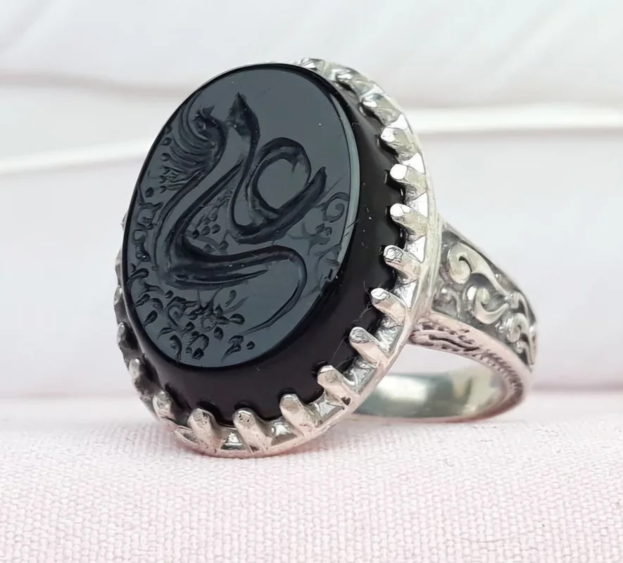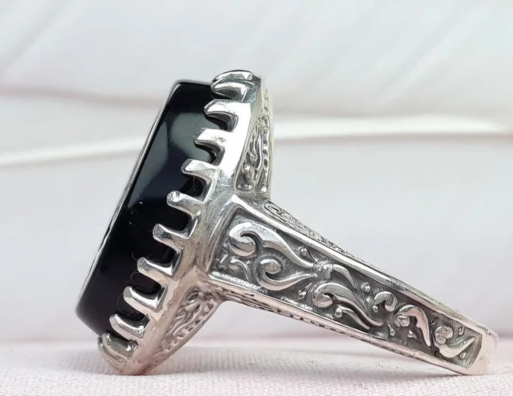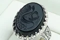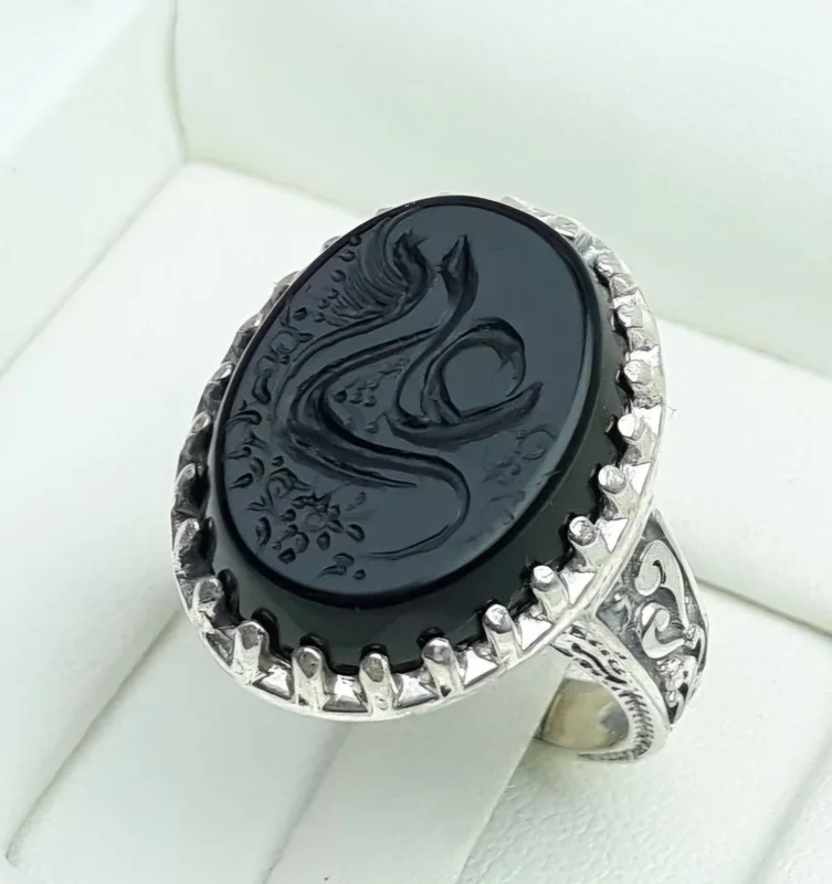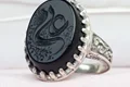 انگشترنقره عقیق مشکی خطی حکاکی علی (ع)