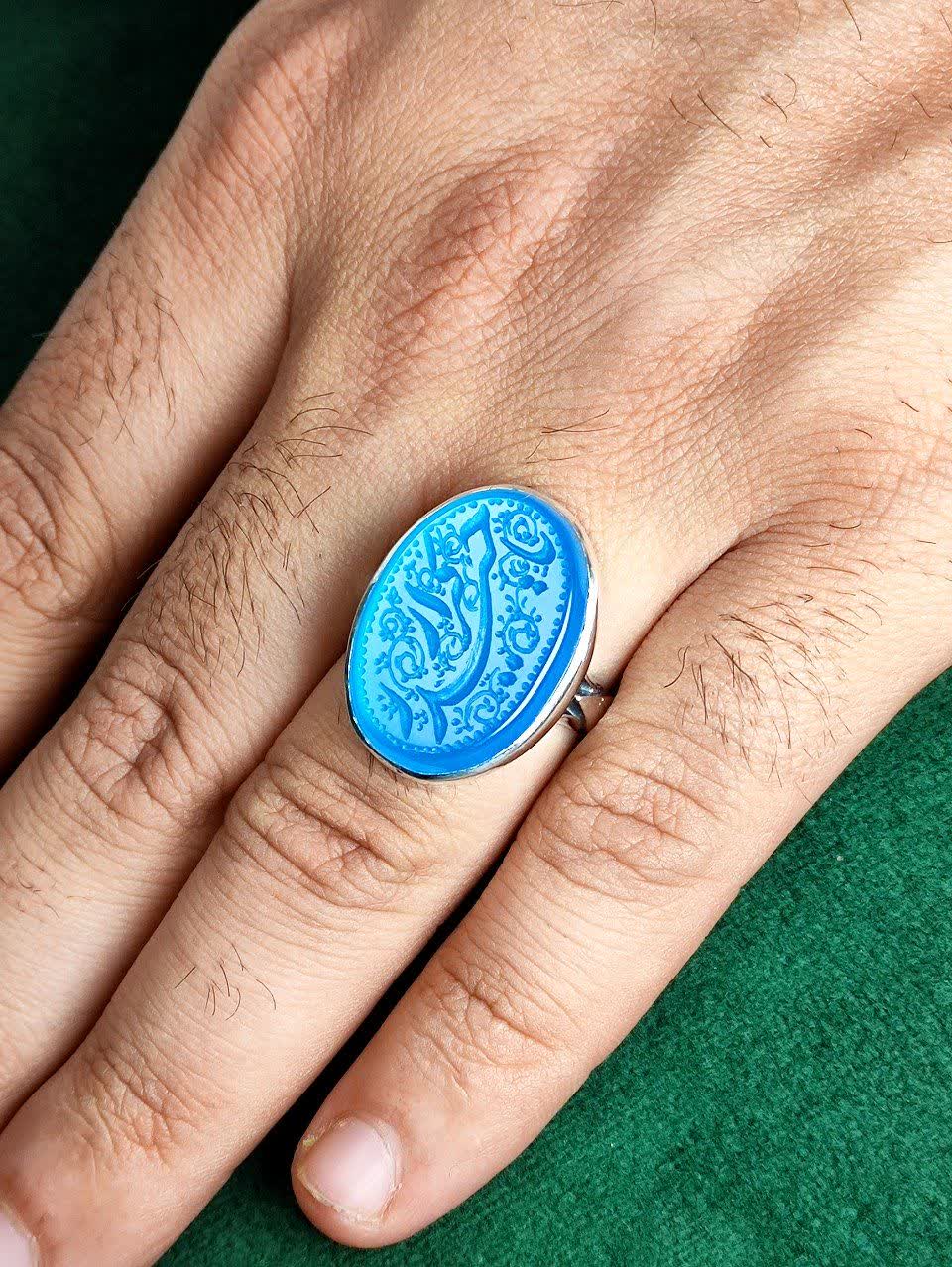 با این انگشتر نقره عقیق آبی، نمادی از اصالت و قدرت را به دستان خود بیاورید. حکاکی زیبای "یا حیدر کرار (ع)" روی این رکاب صفوی ماشینی، معنای عمیقی به حلقه شما میبخشد. این جواهر منحصر به فرد، انتخابی ایدهآل برای کسانی است که به دنبال زیبایی و ارزش معنوی همزمان هستند. همین امروز جلوهای جذاب به استایل خود ببخشید!