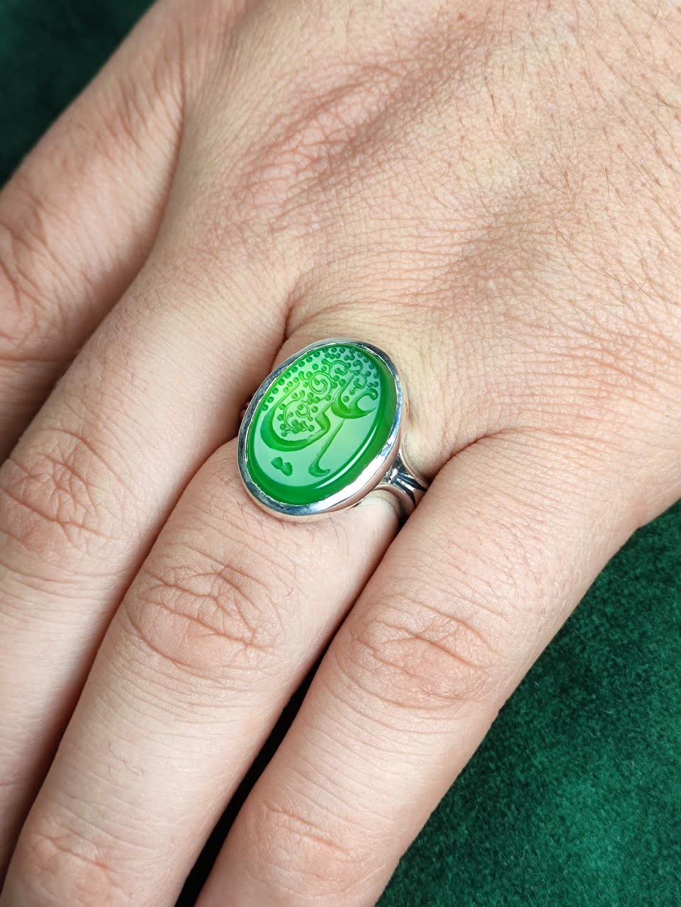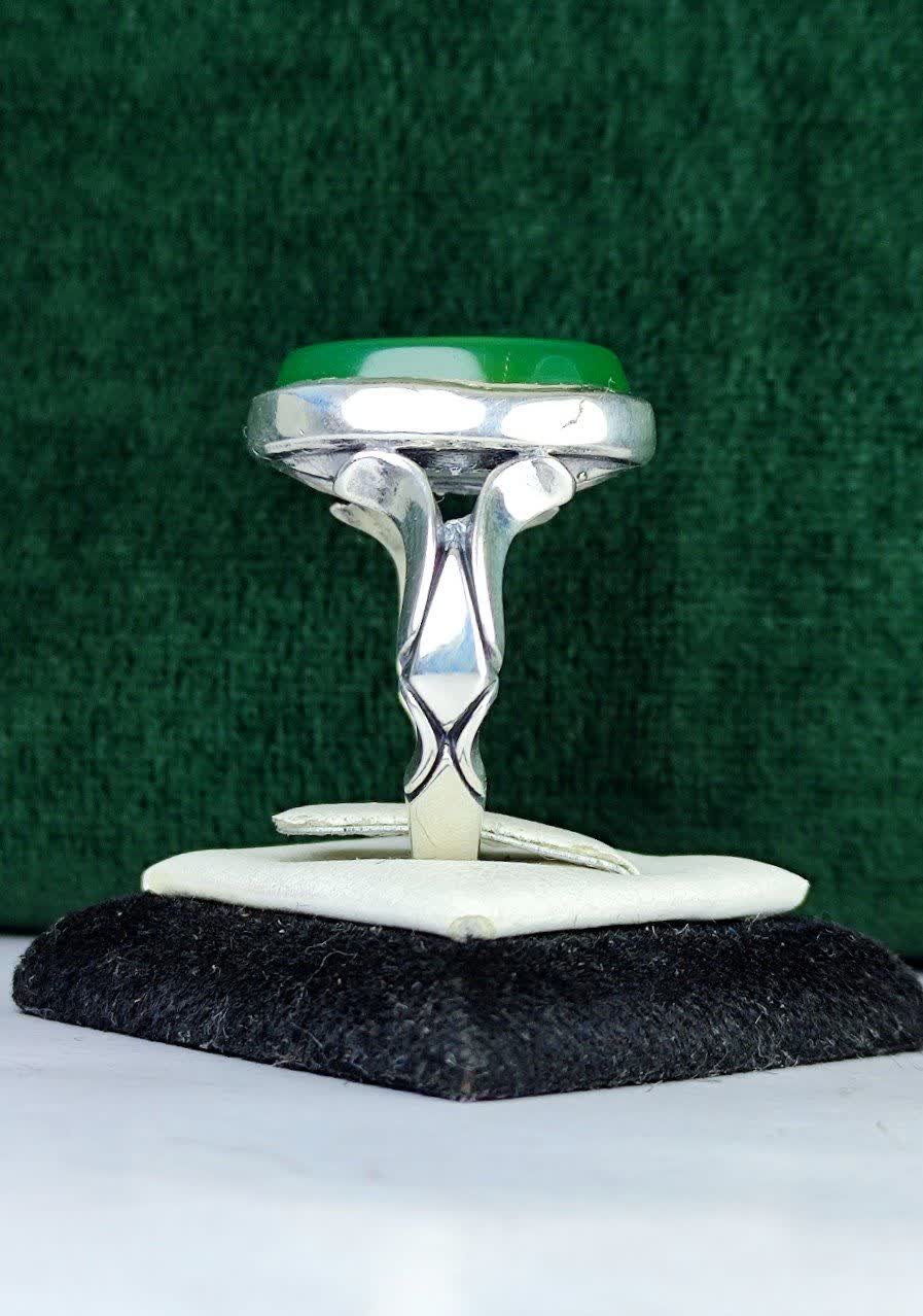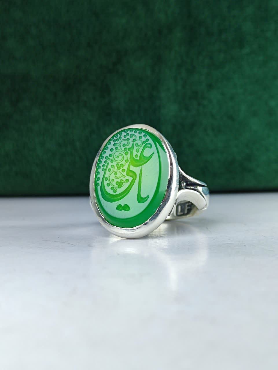 انگشتر نقره عقیق سبز، اثری بینظیر از هنر و معنویت! این انگشتر با حکاکی یا علی (ع) و رکاب صفوی ماشینی، ترکیبی از زیبایی و قدرت است. جلوهی خاص رنگ عقیق سبز، نمادی از آرامش و عشق به اهل بیت، شما را به دنیایی از معنویت و احساسات ناب میبرد. یک انتخاب خاص و ماندگار برای شما!
