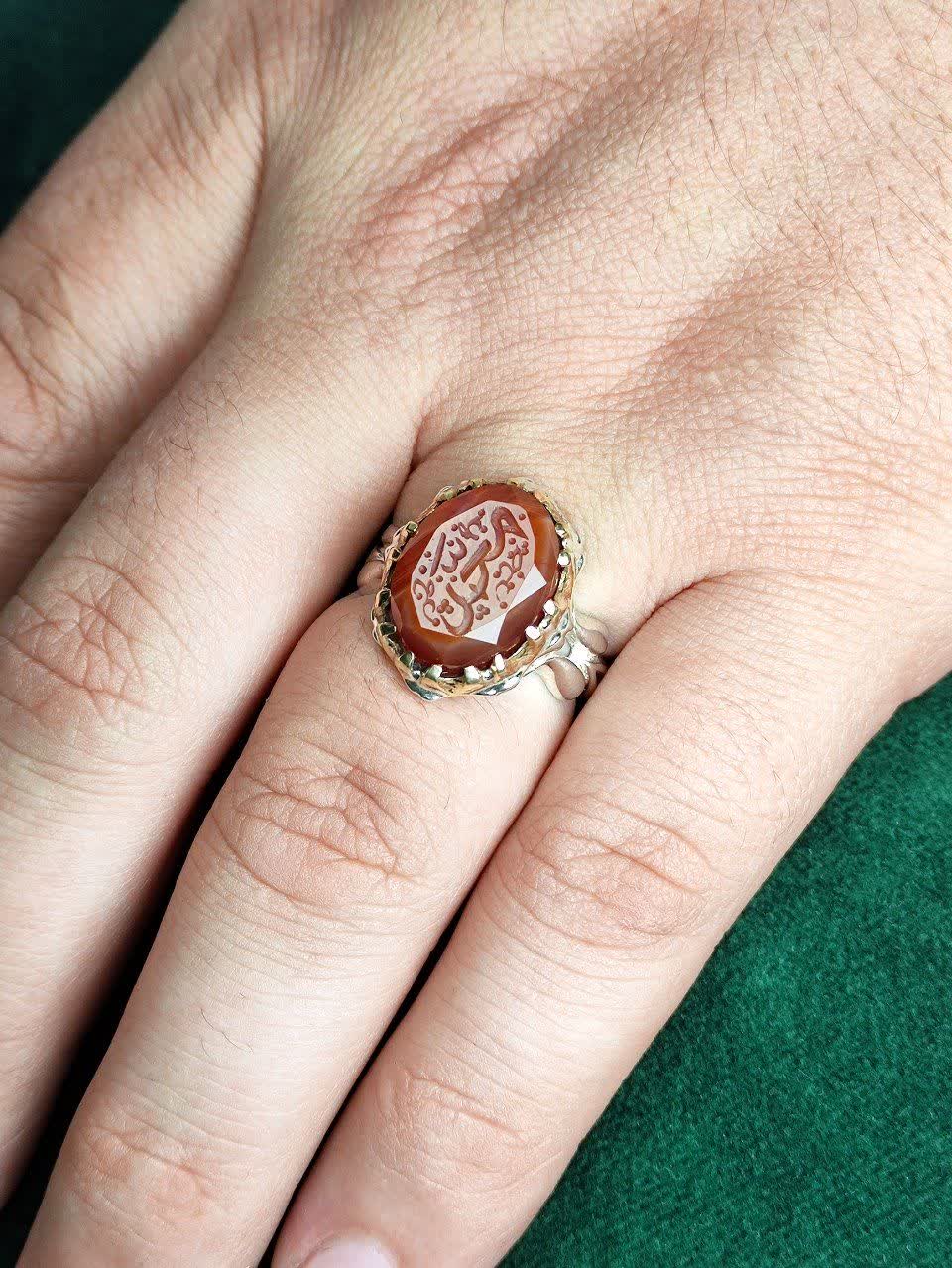 با افتخار معرفی میکنیم: انگشتر نقره عقیق یمنی اصل با الماس تراش و حکاکی نفیس نام مبارک محمد (ص)، رکاب صفوی چنگی، دستساز استادکاران ماهر. این شاهکار هنری نه تنها جلوهای بینظیر به دستان شما میبخشد، بلکه نمادی از اصالت و شکوه است. فرصتی برای درخشش و افتخار. خرید کنید و متمایز باشید!