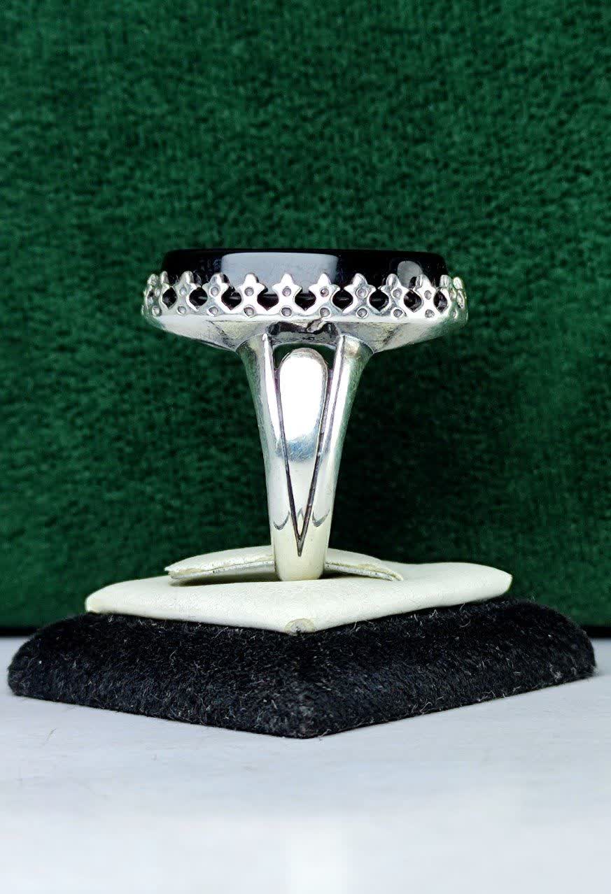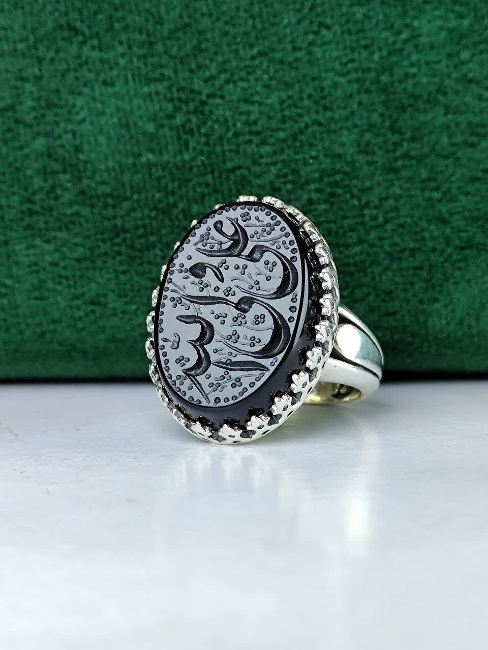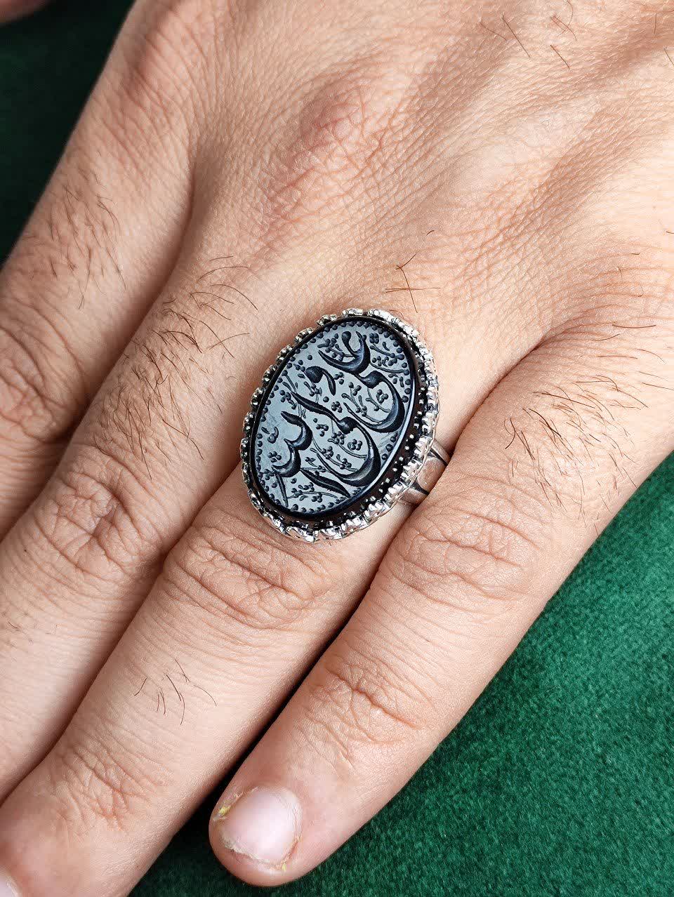 با انگشتر نقره عقیق مشکی، شکوه و معنویت را در دستان خود احساس کنید. حکاکی "علی ولی الله" بر روی نگین با رکاب صفوی چنگی، این جواهر را به یک اثر هنری بیهمتا تبدیل کرده است. ماشینکاری دقیق، زیبایی و کیفیتی بینظیر را برای شما به ارمغان میآورد. جذابیت و افتخار را تجربه کنید!