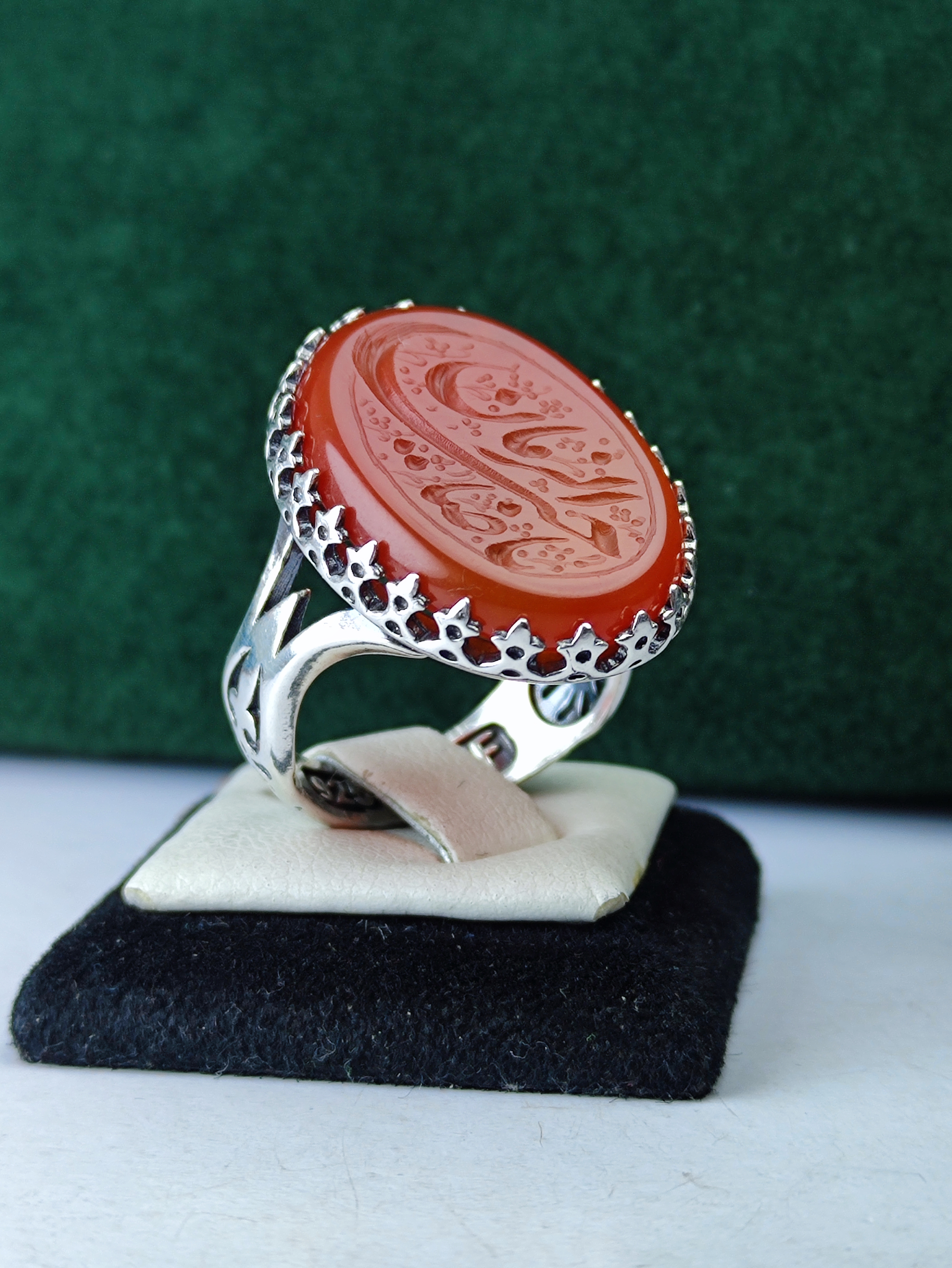 انگشتر نقره عقیق قرمز با رکاب صفوی و حکاکی بینظیر "یا صاحب الزمان" انتخابی شایسته برای علاقهمندان به هنر و اصالت ایرانی است. این انگشتر با طراحی چنگی خاص و سنگ عقیق قرمز جذابیت خیرهکنندهای به دستان شما میبخشد. اکنون با خرید این اثر هنری، به جمع دارندگان زیبایی و معنویت بپیوندید!
